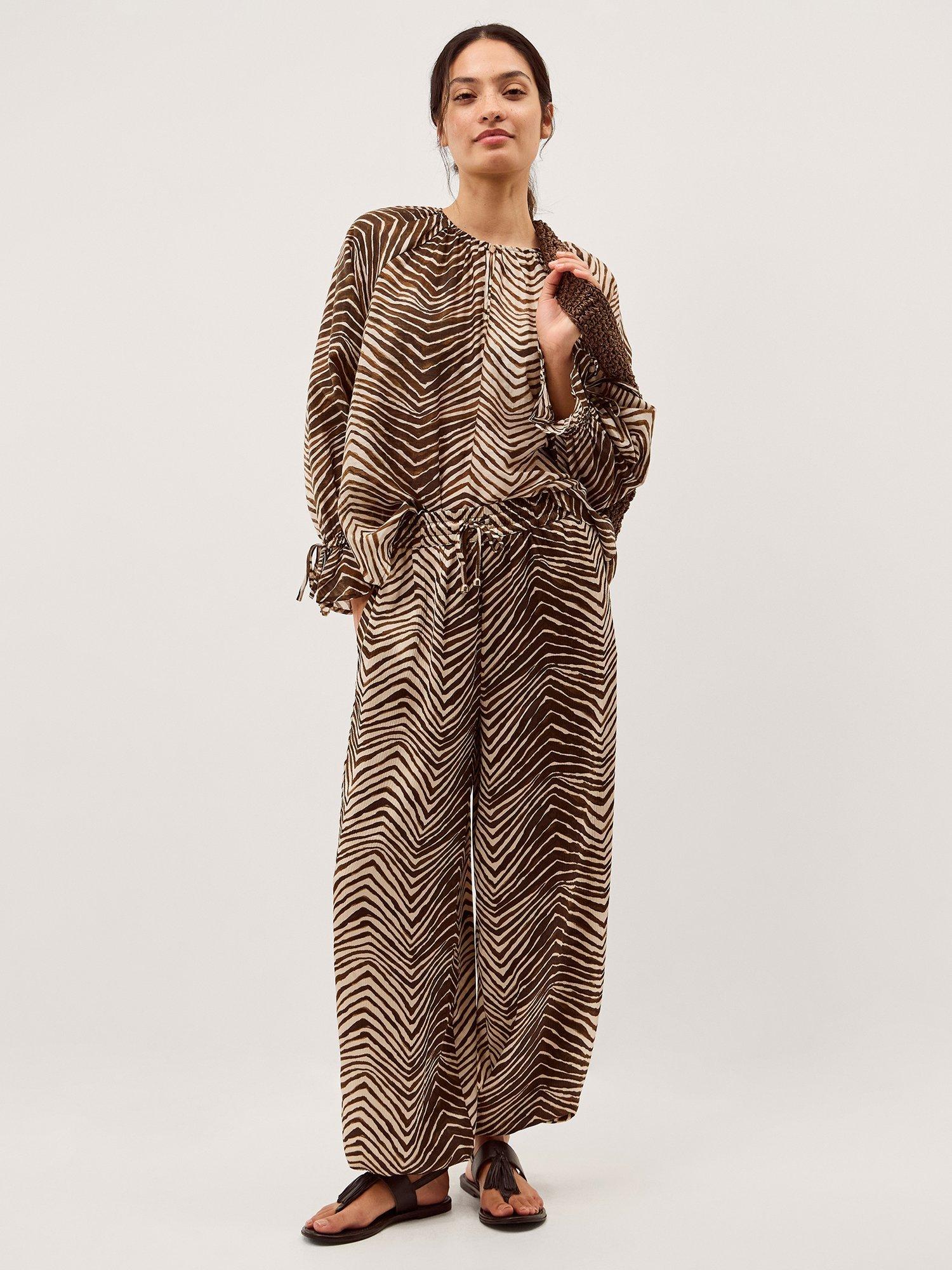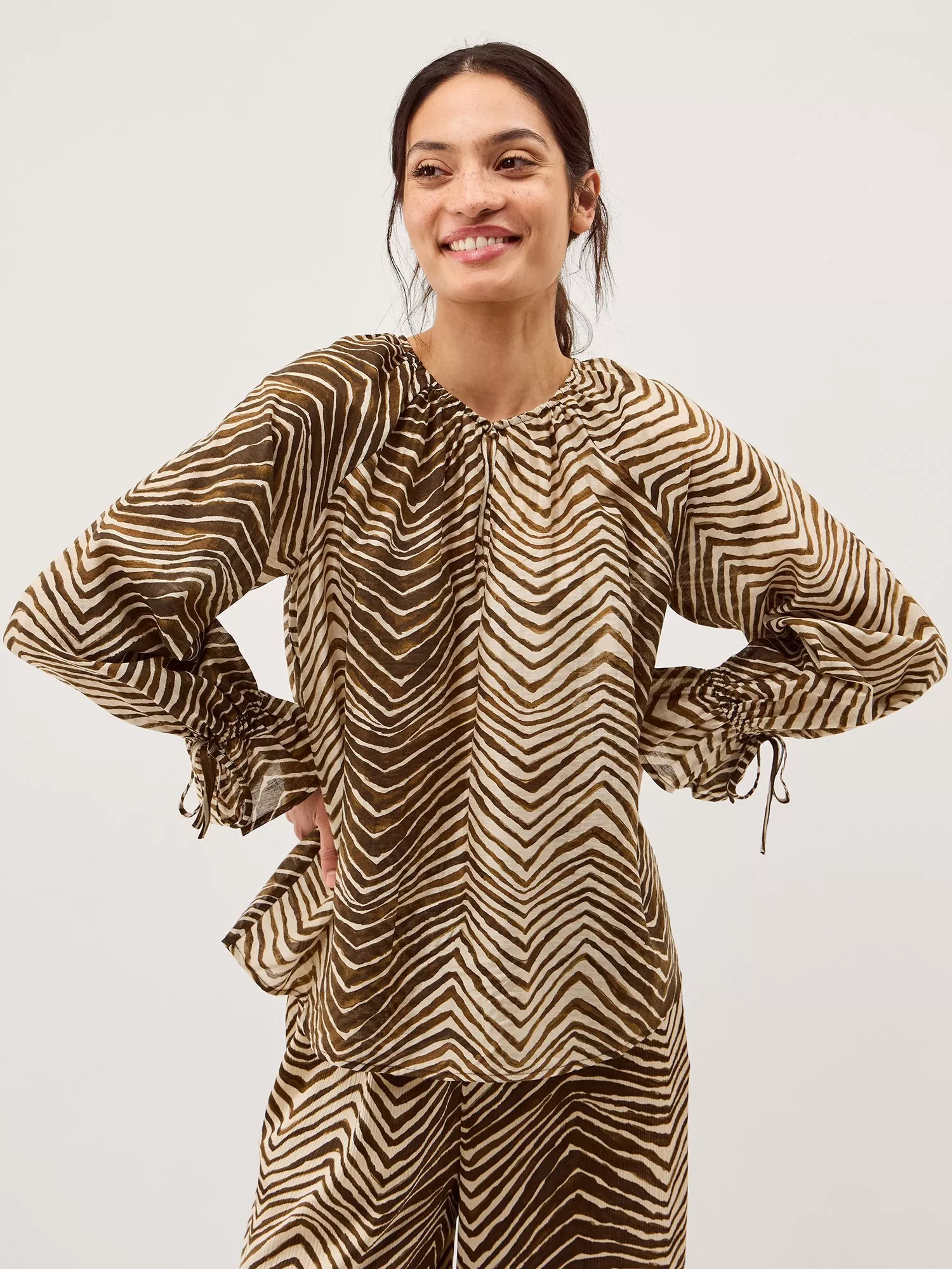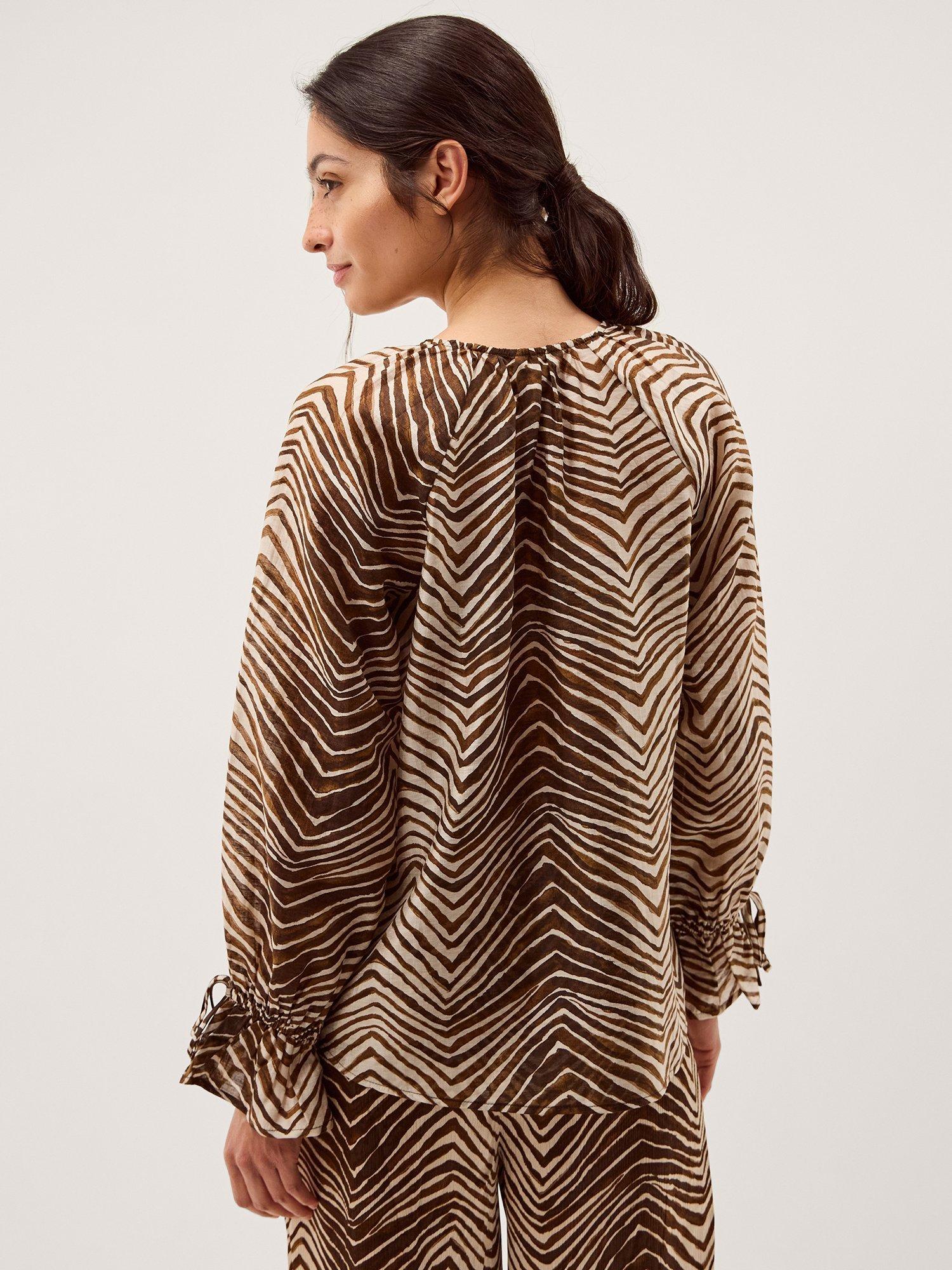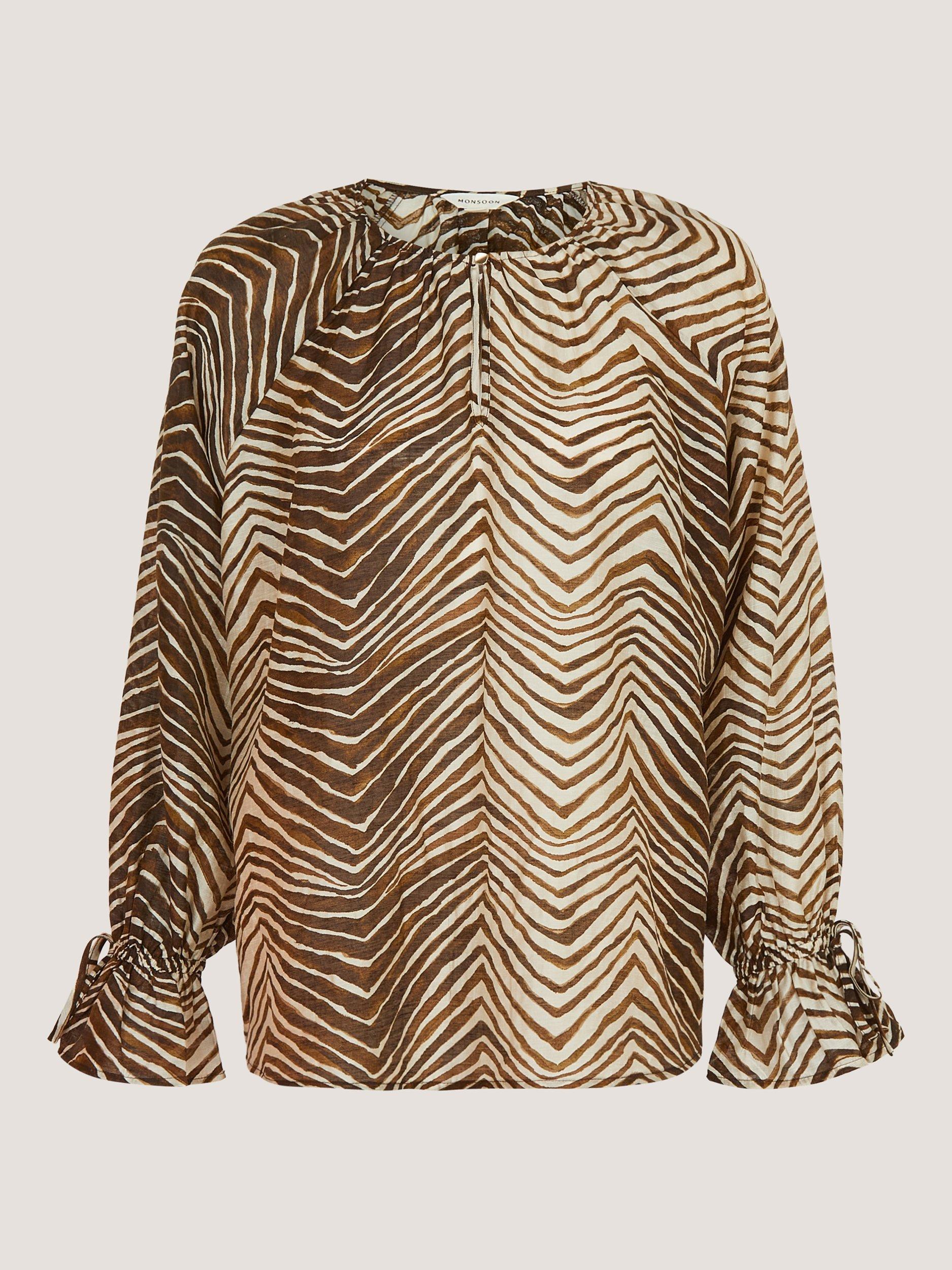 An effortless blouse from Monsoon, made from light and drapey lyocell. With a round neck and long sleeves, it comes in an animal print design.