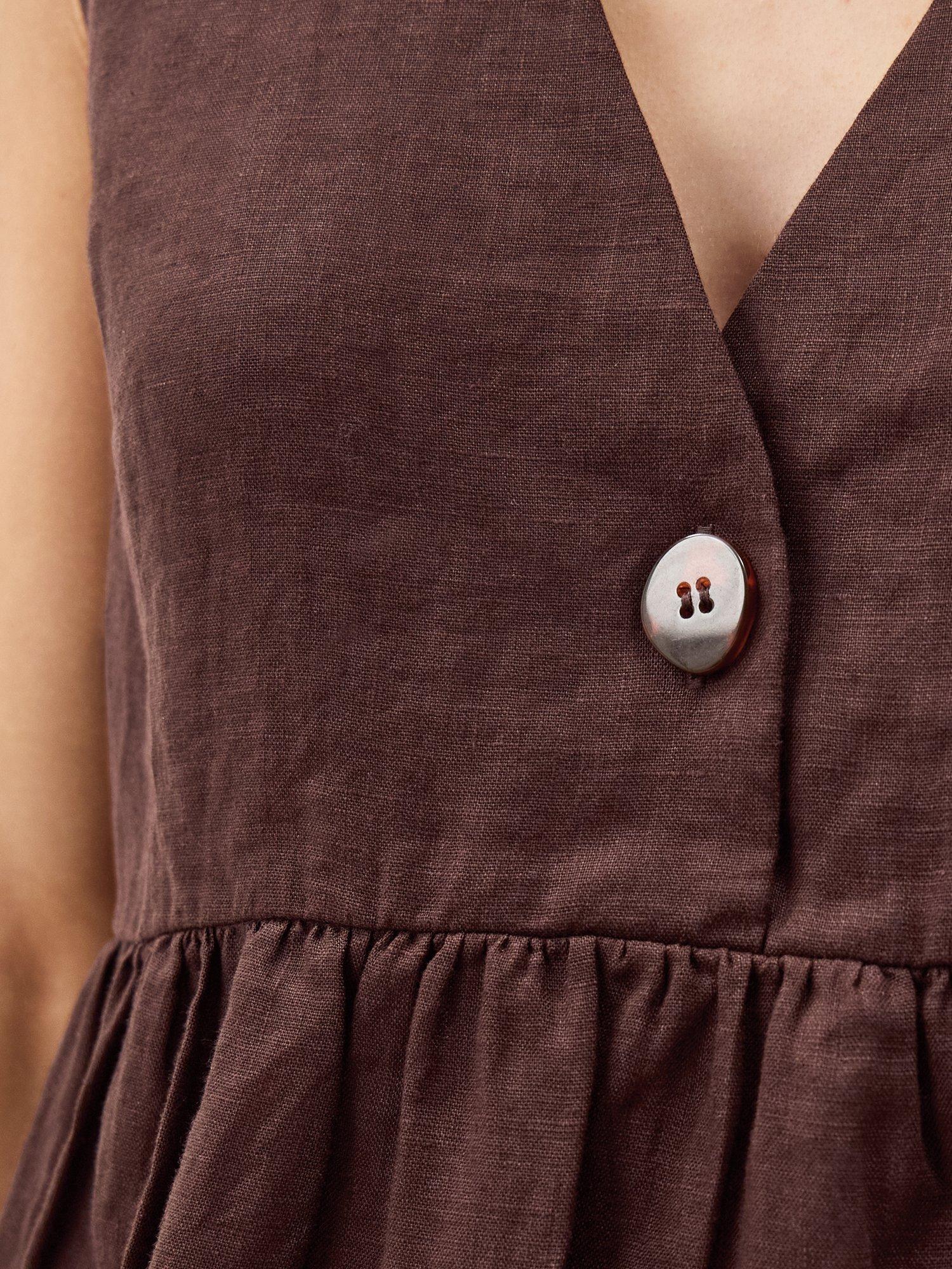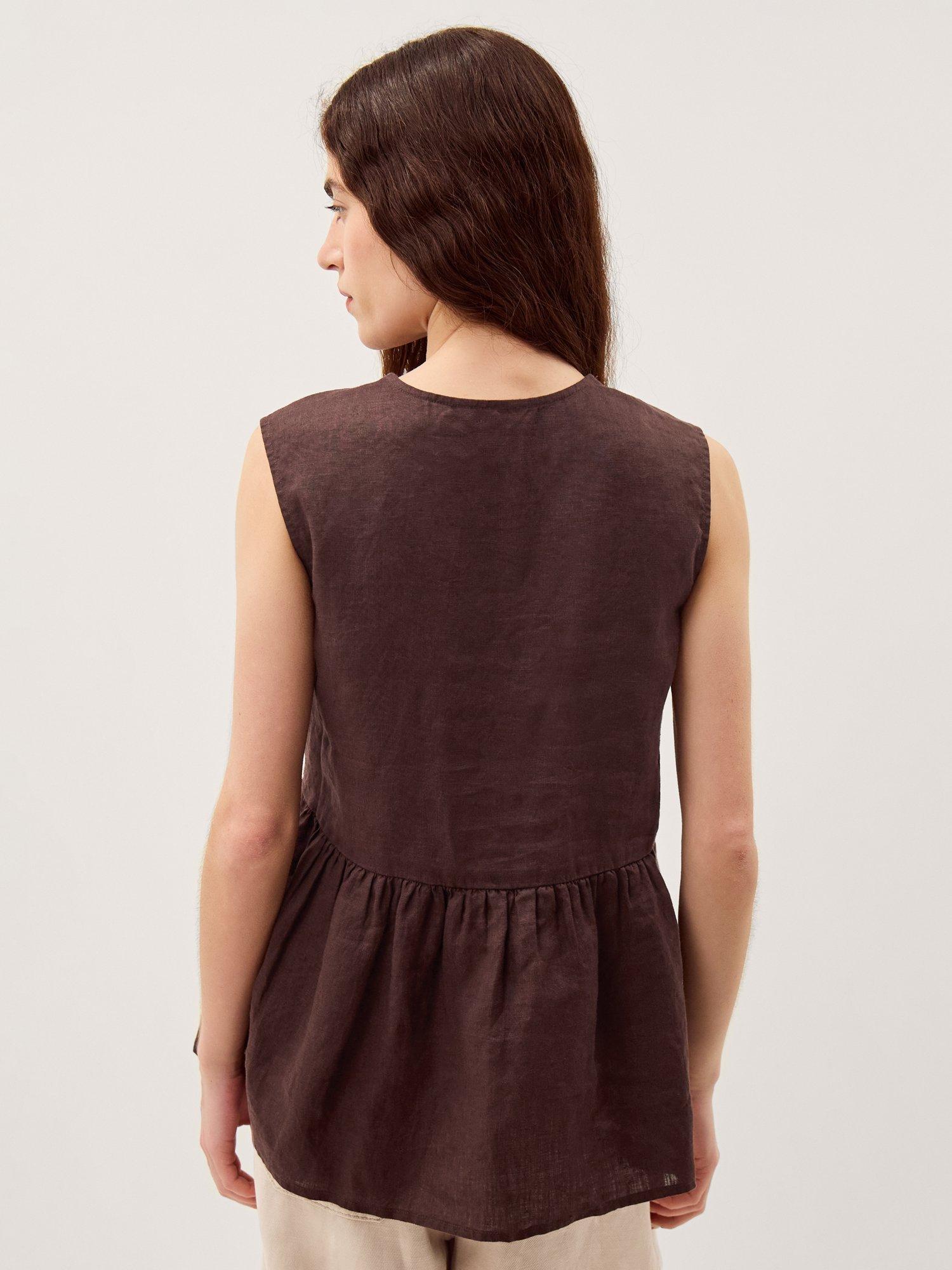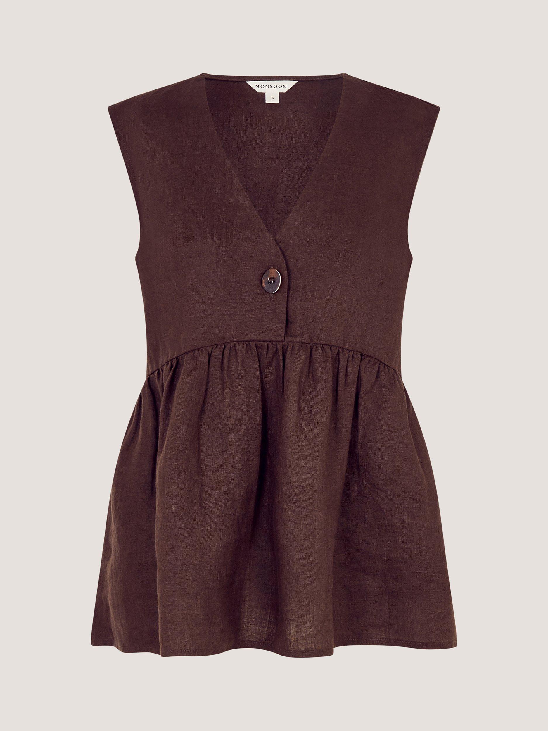 Linen for summer? Always. Crafted for years of use, this sleeveless top is soaked in a versatile tone and designed with a singular tort button under the v-neckline. Whether you double up with linen trousers or style with denim, it'll be a killer combo every time.