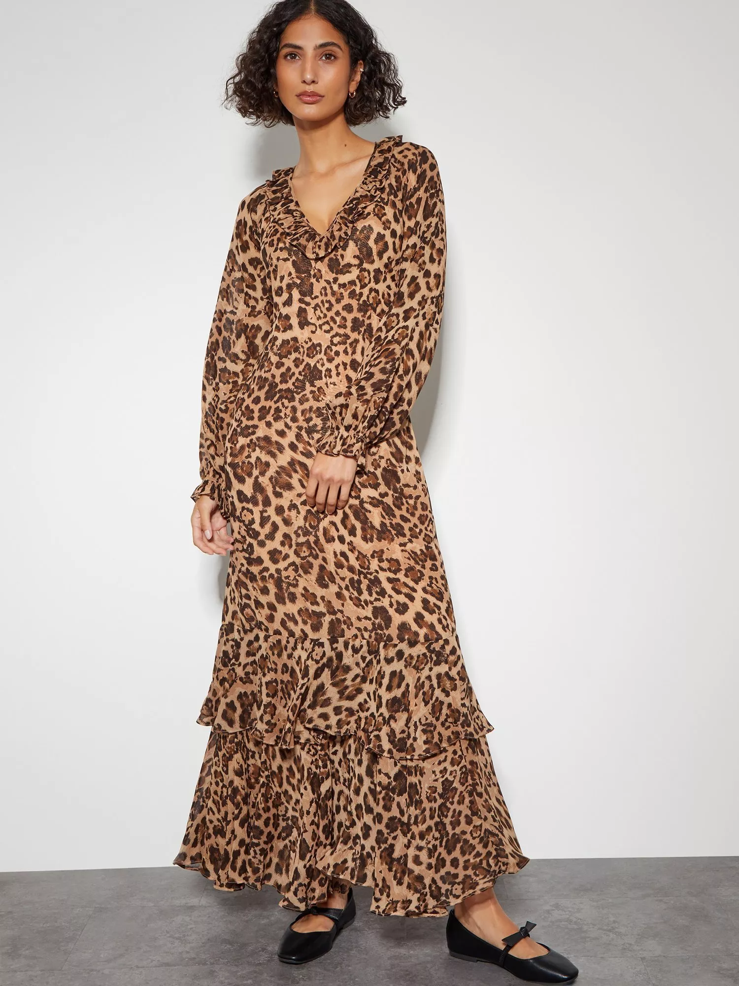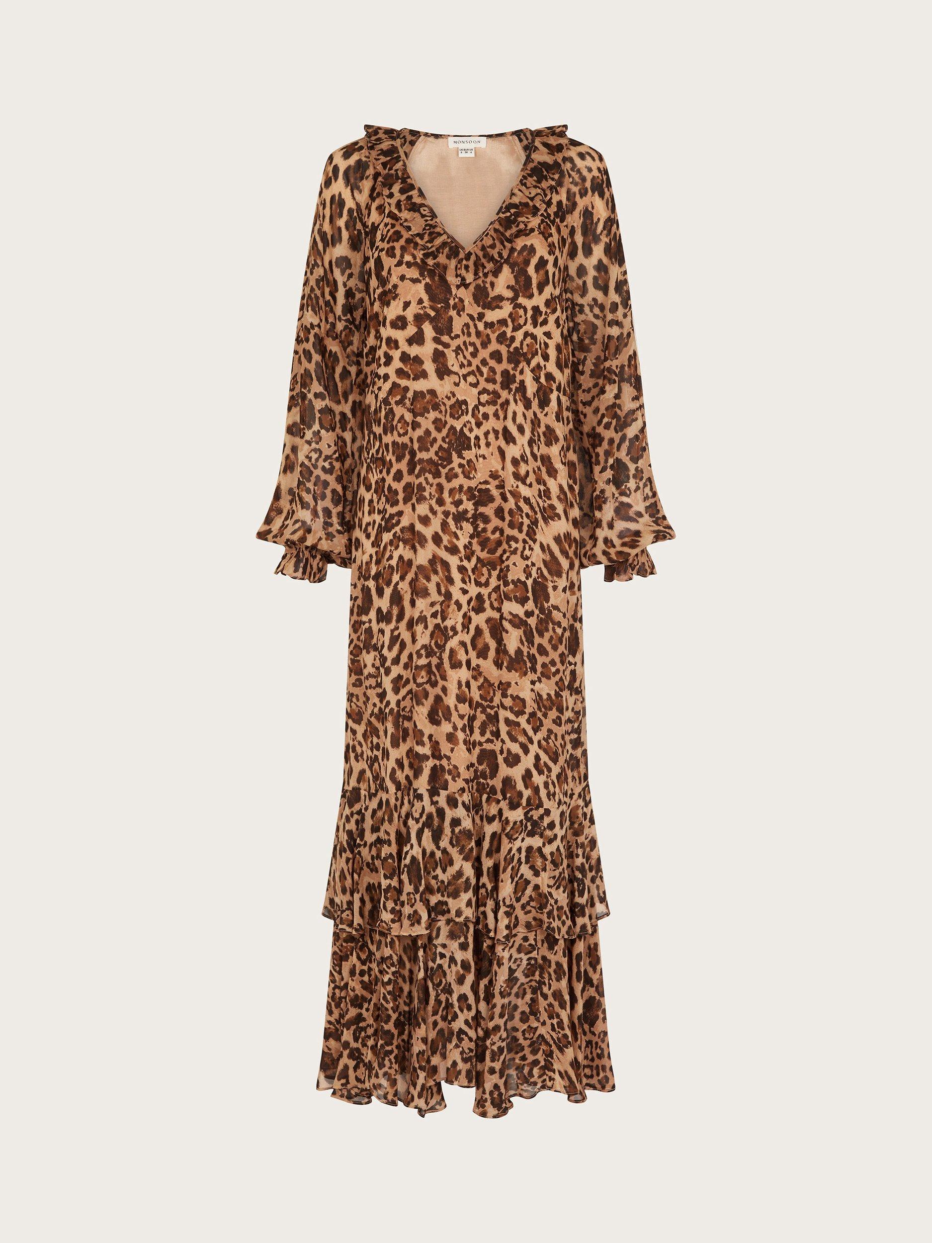 A tried-and-true favourite, this maxi dress from Monsoon is crafted from an airy viscose fabric. With a fuss-free but smart v-neckline and full-length sleeves, this style is infused with a hint of the jungle in the form of animal print.