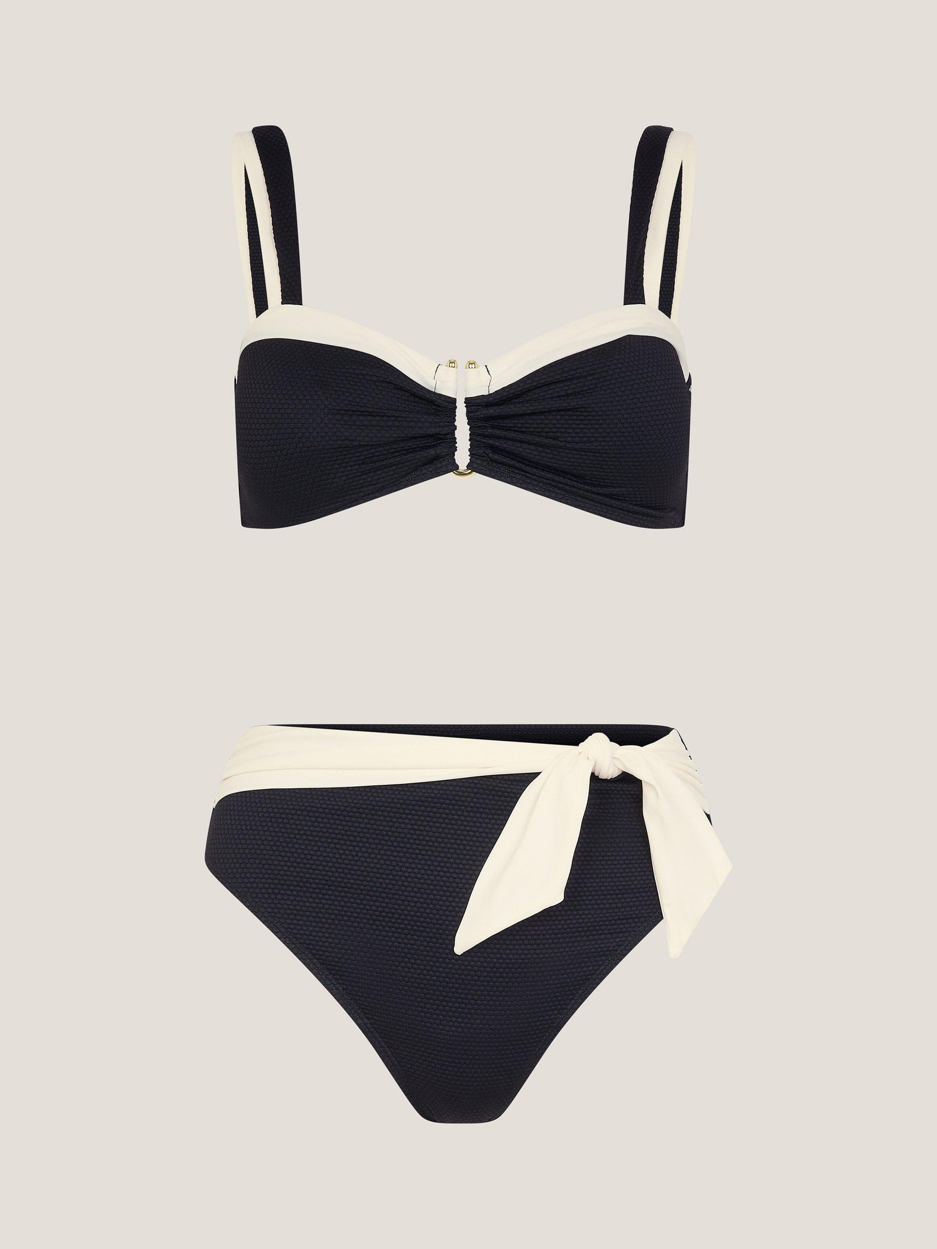 Today's agenda: Salty swims. Designed in a bandeau style with thick straps and a U-shape bar at the front, this bikini top boasts a two tone finish. And the best part? The tie up strap at the back, offering a comfortable fit.