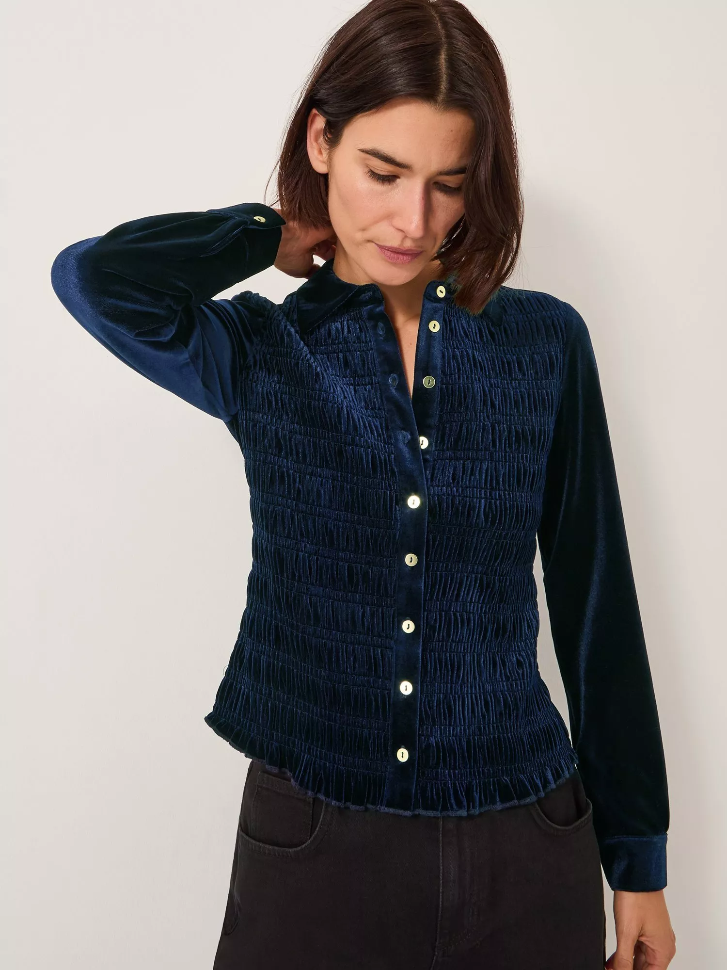 A shirt by Monsoon. With a collar neck and long sleeves, the plain design means it goes with everything. A wear-everywhere essential.