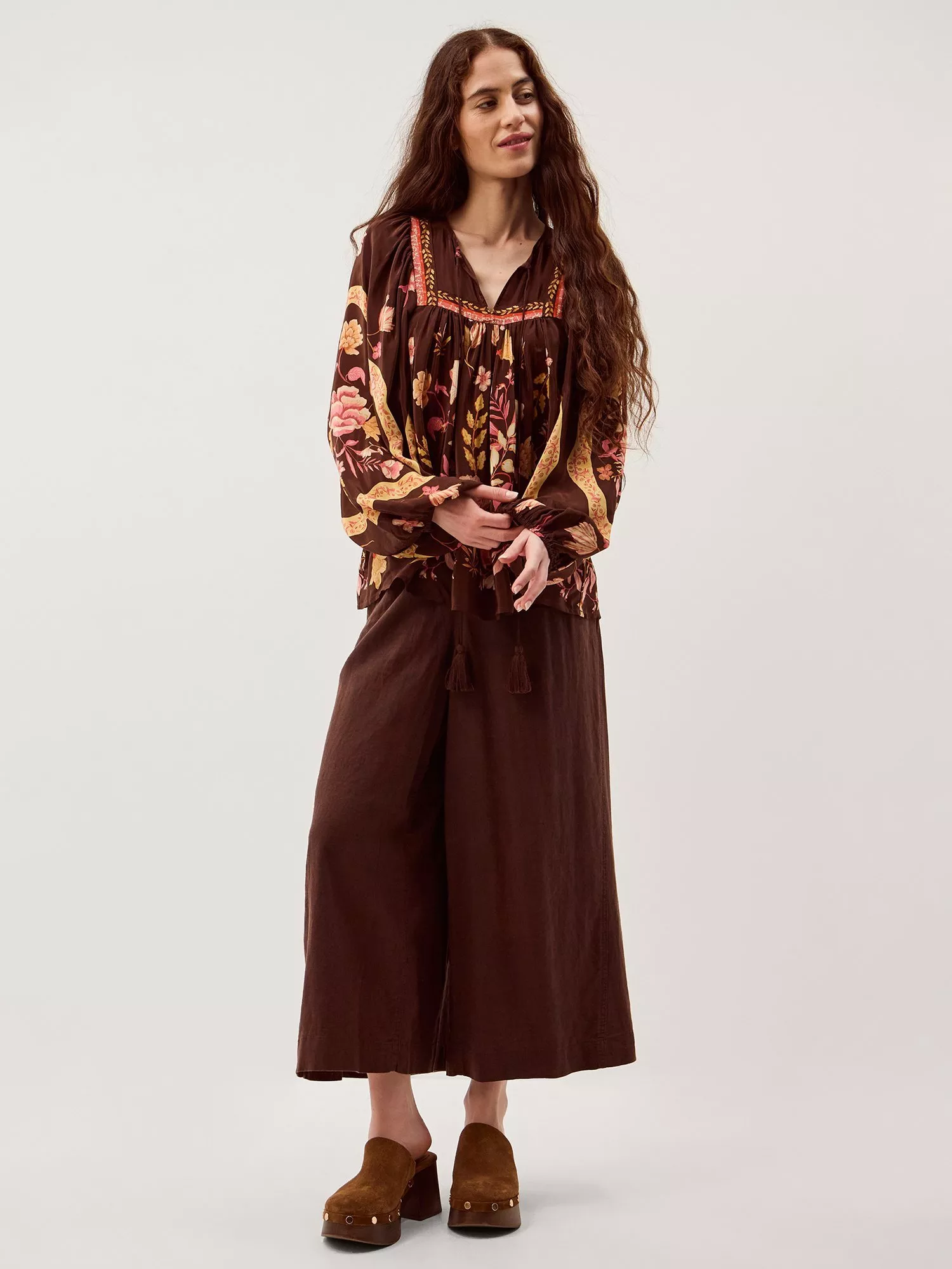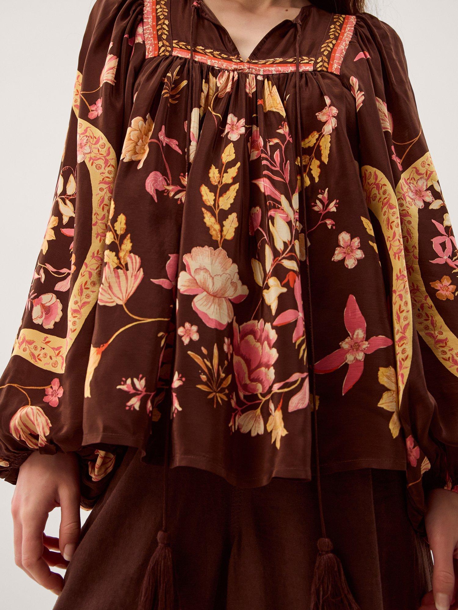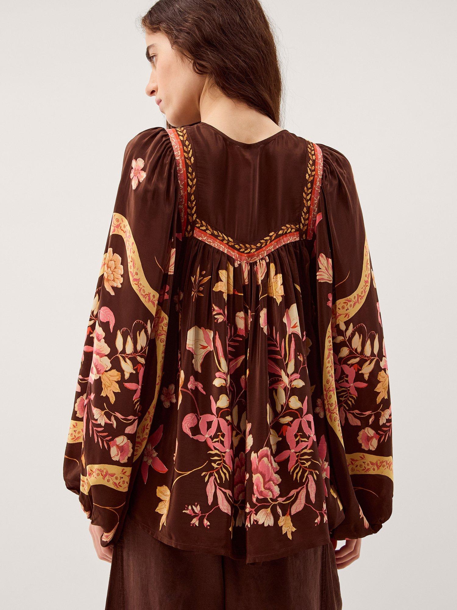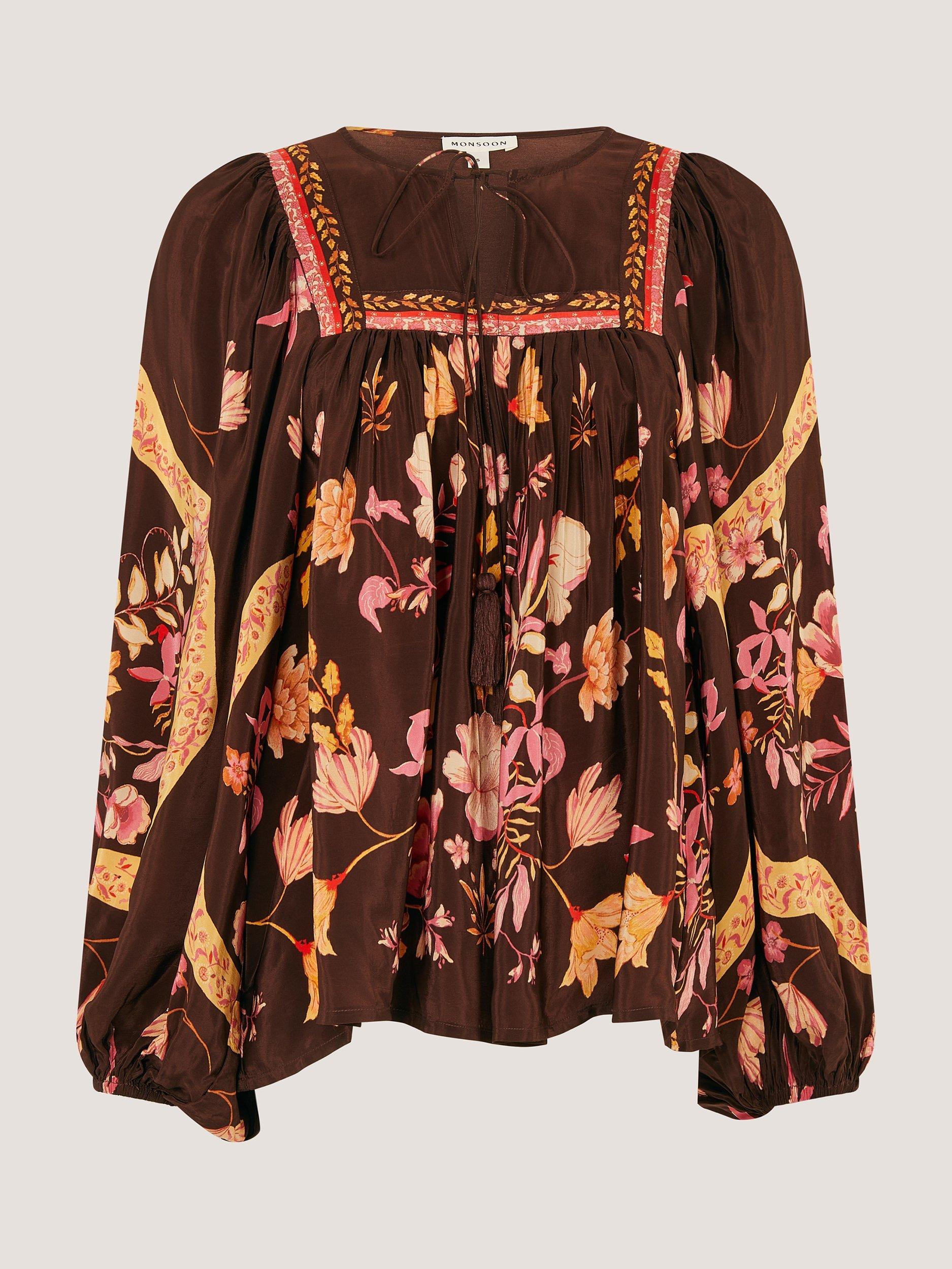 An effortless blouse from Monsoon, made from light viscose. With an easy open neck and long sleeves, its printed with florals. Casual, comfortable, and effortlessly chic.