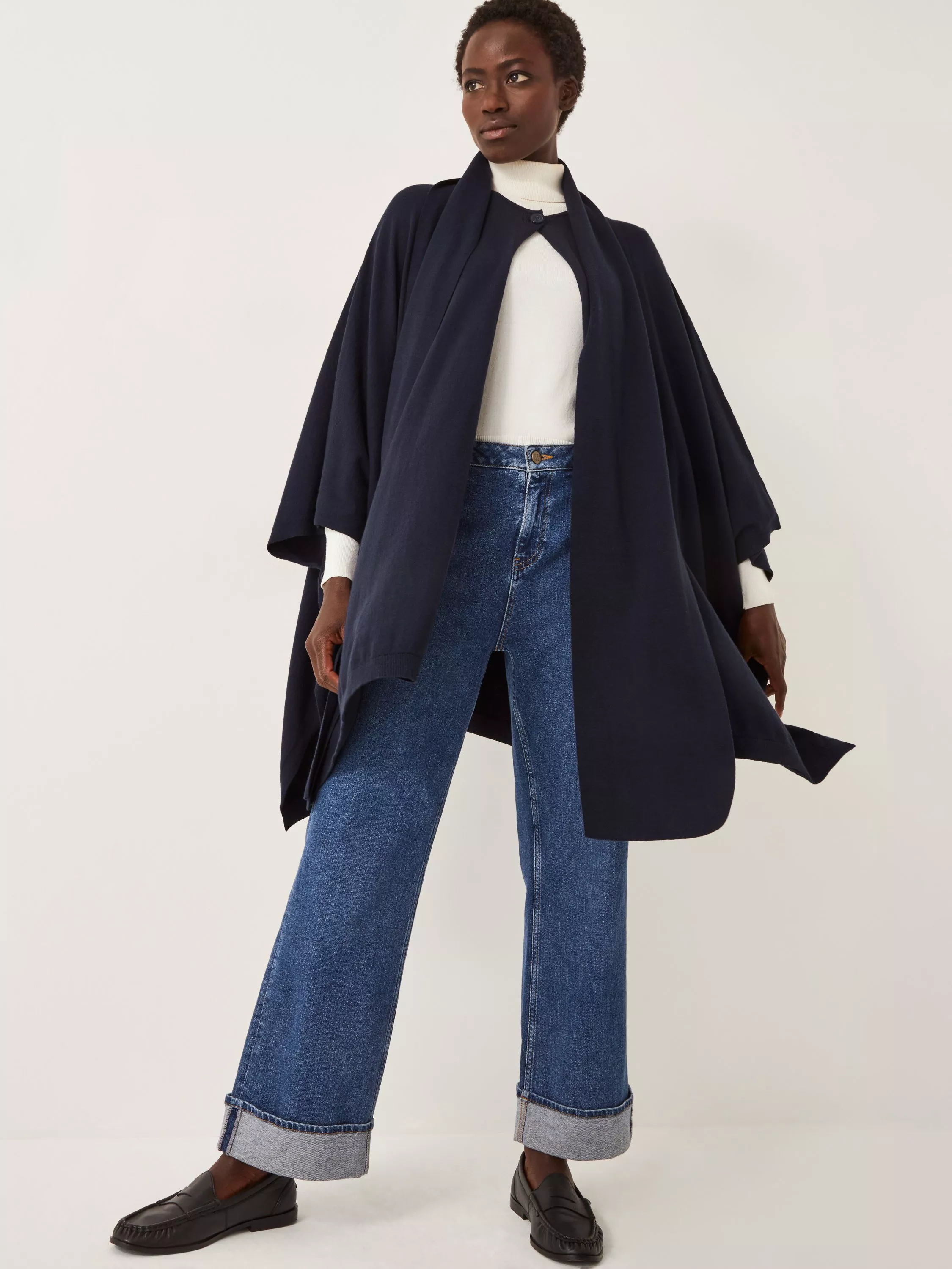 Wrap yourself in cosy warmth with this wool-blend poncho. Its mid-length cut and crew neck let you move easily through your day, whether you are heading out or relaxing inside. An effortless layer for any occasion.