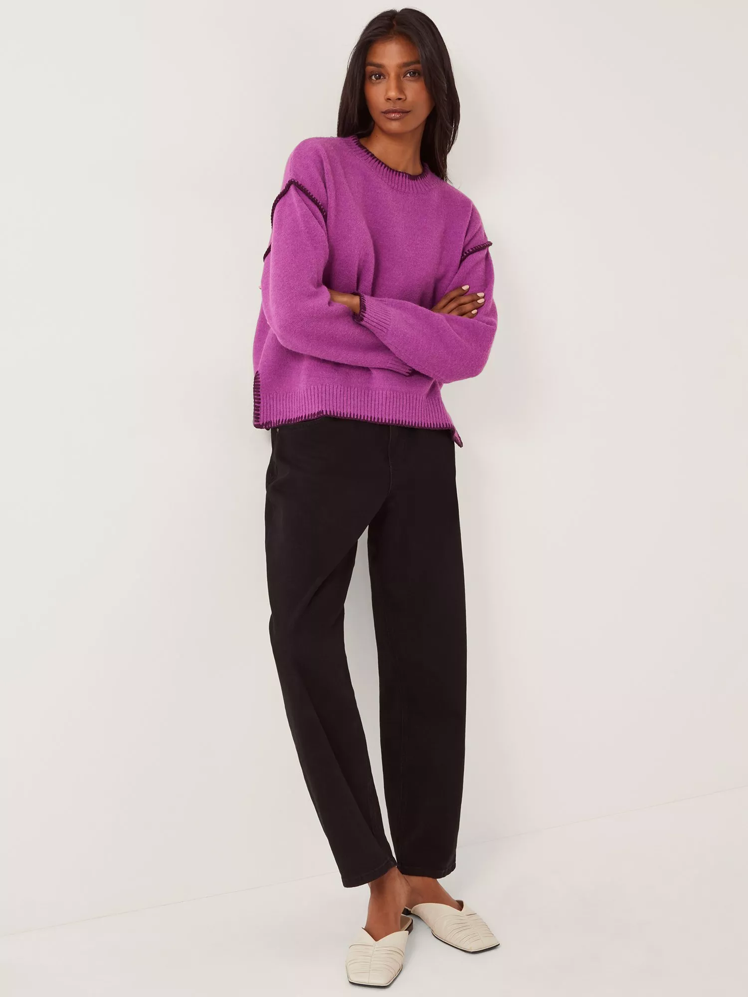 Designed in a classic crew neck style with side slits at the hem, this jumper is knitted with contrast stitching for a subtle two-tone finish. Adding a pop of colour to your beat-the-cold looks, it's a style you can rely on year after year.