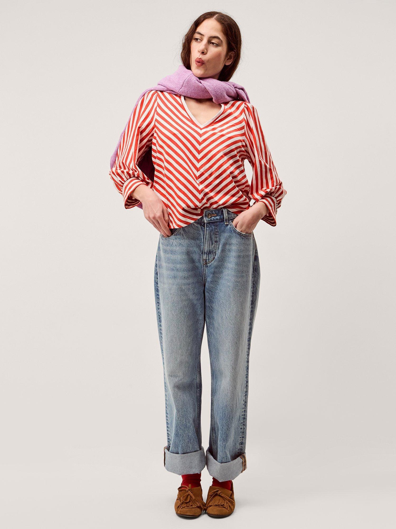 An essential jersey top by Monsoon, made from cotton for comfortable wear. Featuring a V-neck and long sleeves, it's designed with neat stripes. A great piece for everyday.