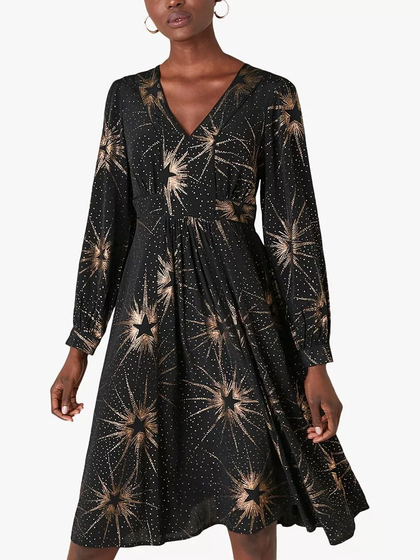 Shine bright with this star-printed midi dress from Monsoon.