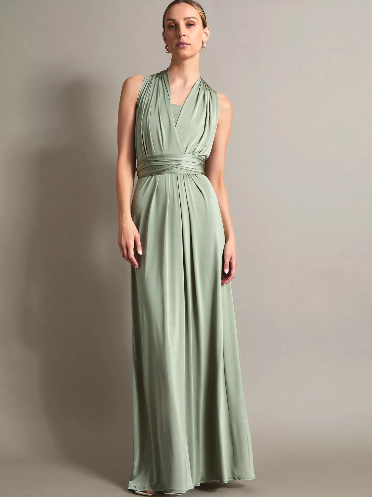 One dress, multiple styles. This smooth, silky-feel multiway dress can be tied and twisted in 15 beautiful styles, offering a different look to suit every member of the bridal party. Two long straps and a matching bandeau build the bodice, and then it's up to you whether you wear it halterneck, twisted or backless. Finished with an easy-to-alter hemline and clear instructions for all the ways to tie it. This product runs a little small, we recommend sizing up.