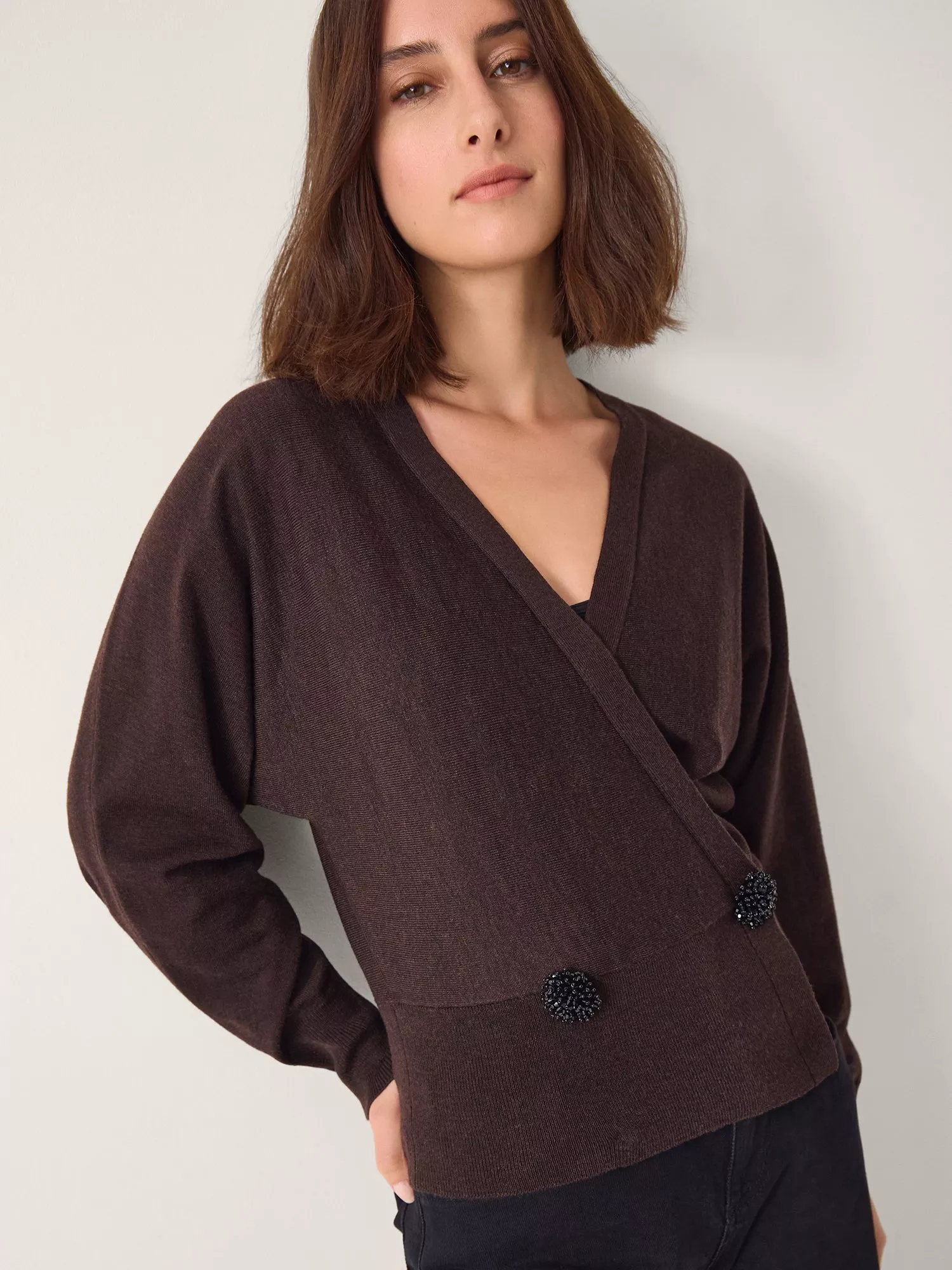 Wrapping over at the front for easy layering, this lightweight cardigan from Monsoon is made from a rich wool blend.