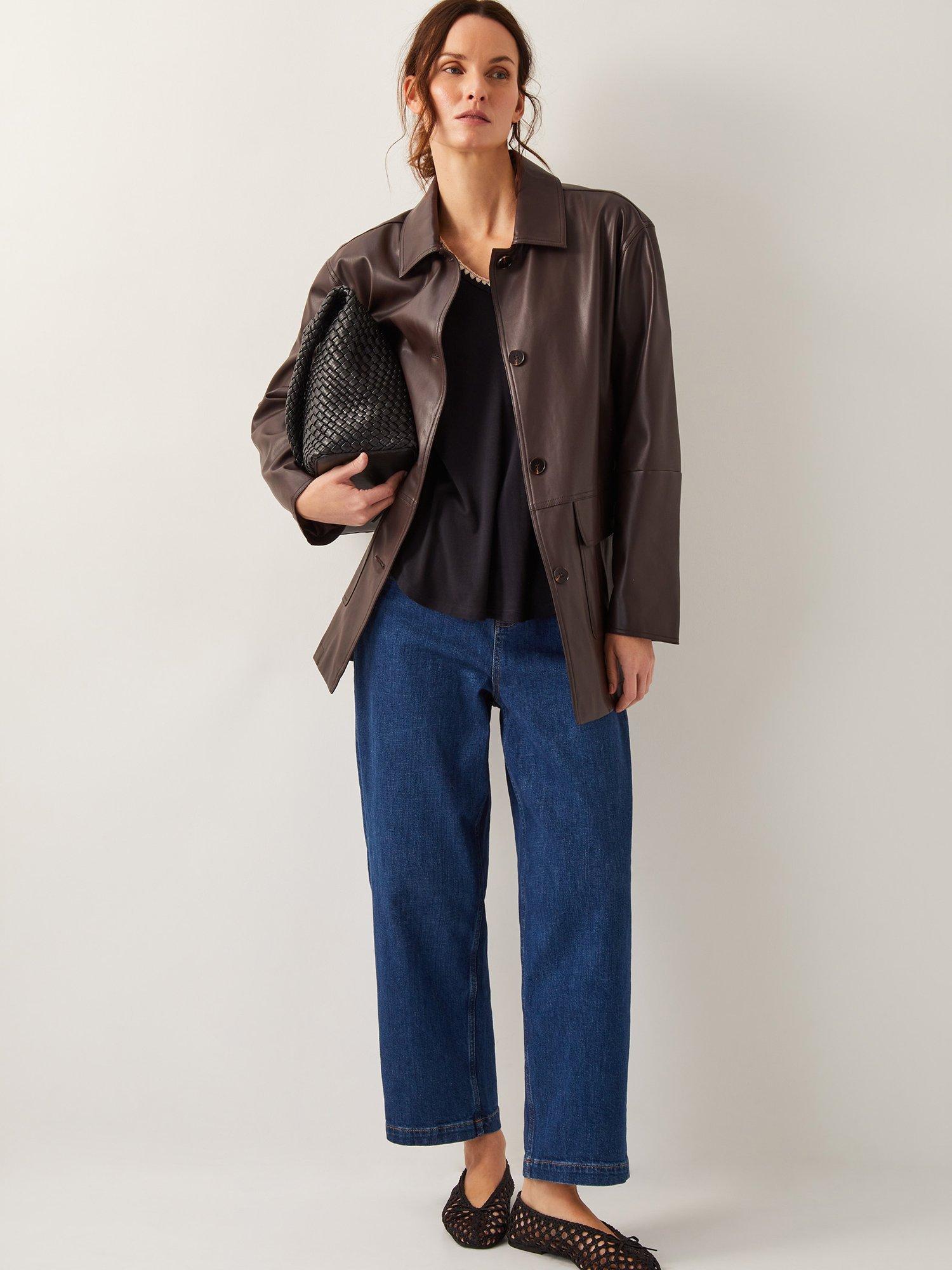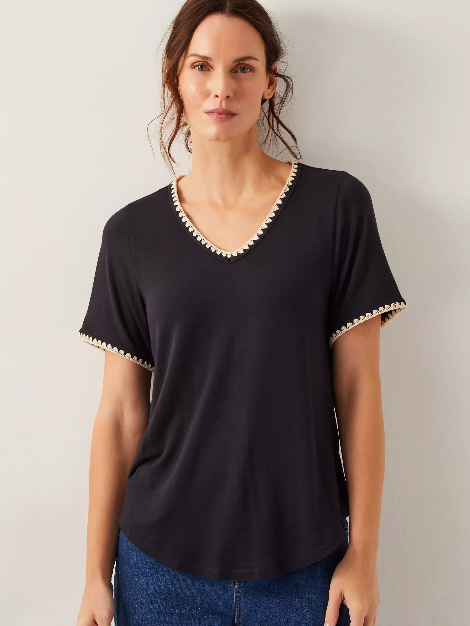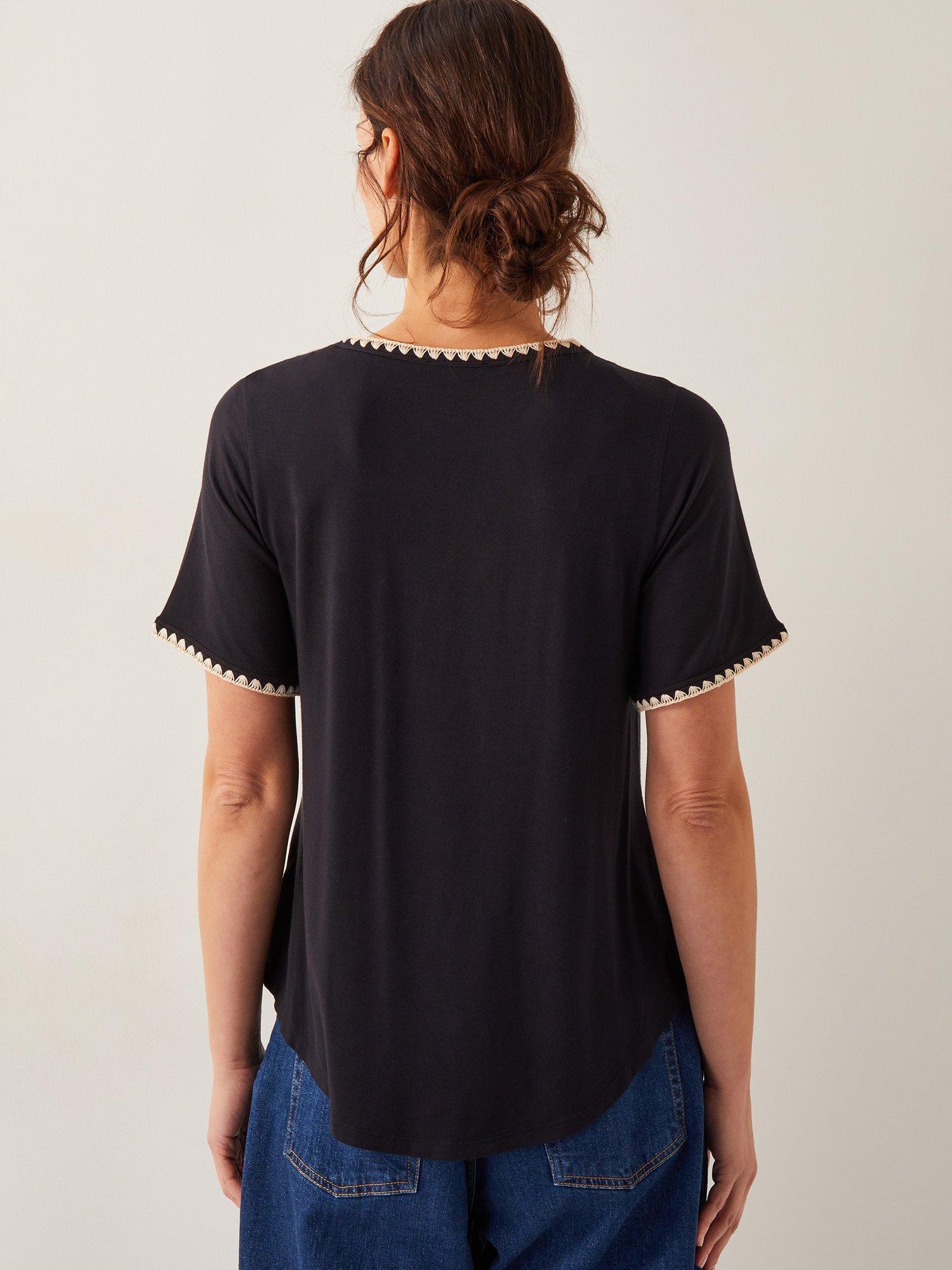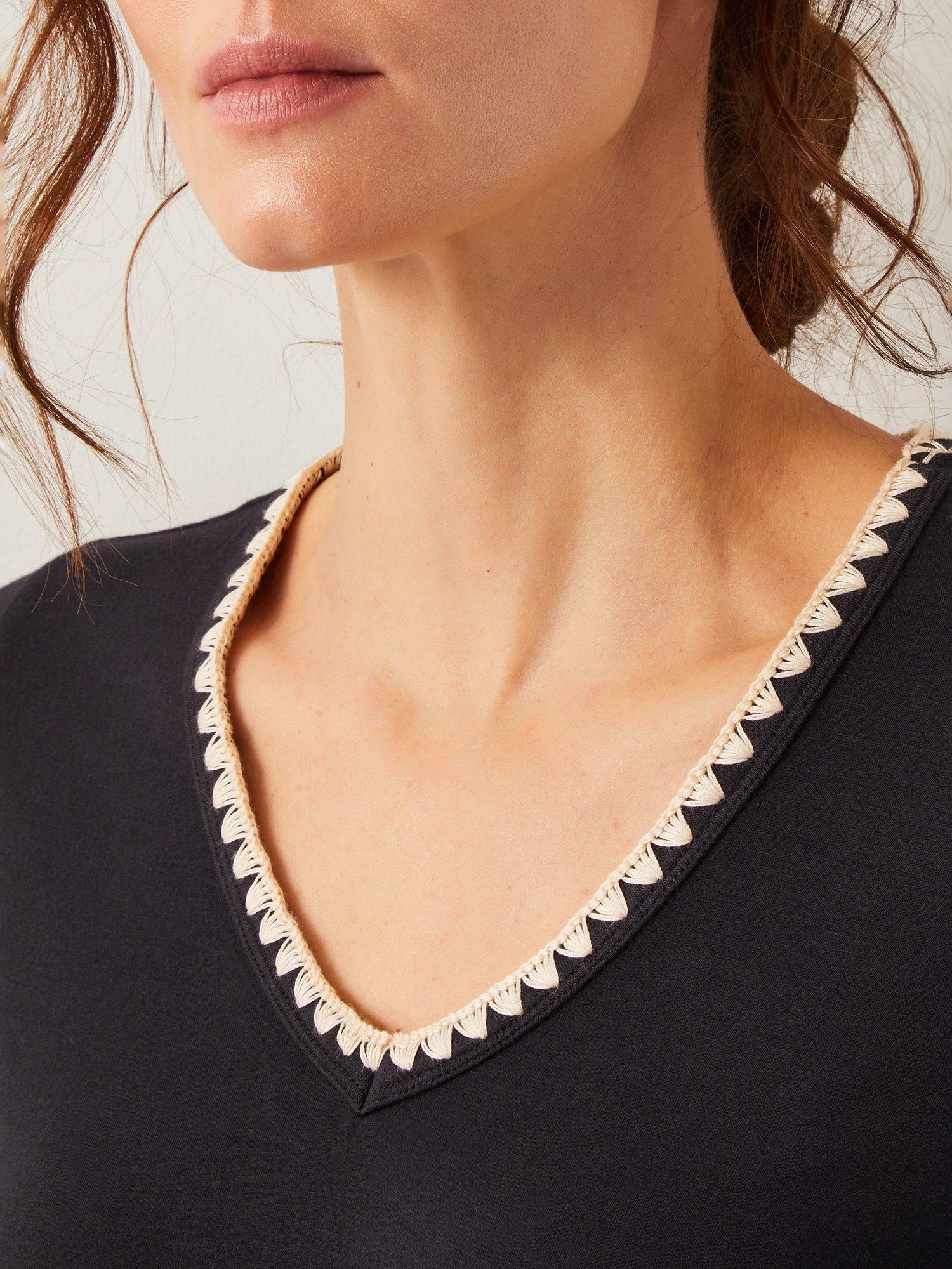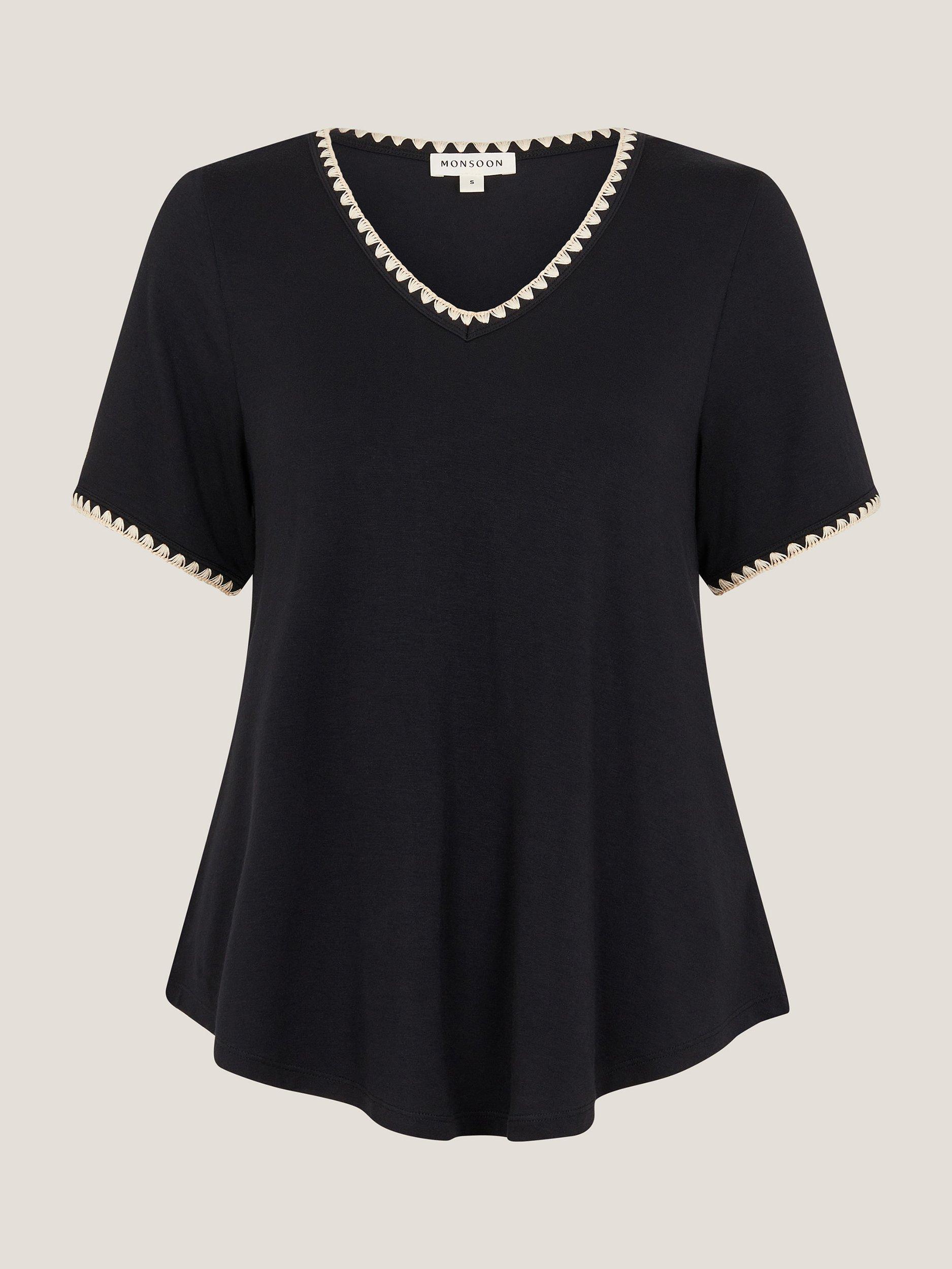 Updated basics. A smarter option for the days when you want to wear a slouchy t-shirt, this top is designed with dropped short sleeves, a V-neckline, and an embroidered trim to finish.