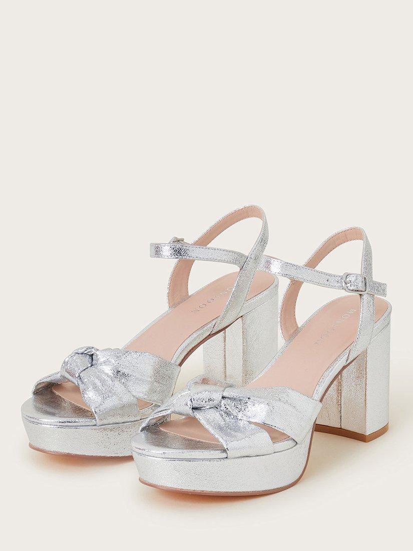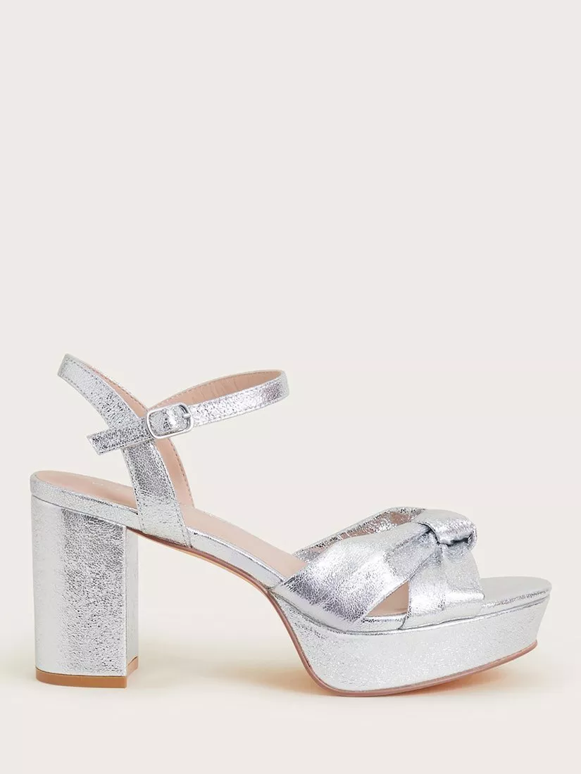 Dancing queen. Add comfortable height to your party look with these heels, designed in metallic faux leather with a twist detail over the toe. From festive work events to St Tropez beach clubs, they're a best-seller for a reason.