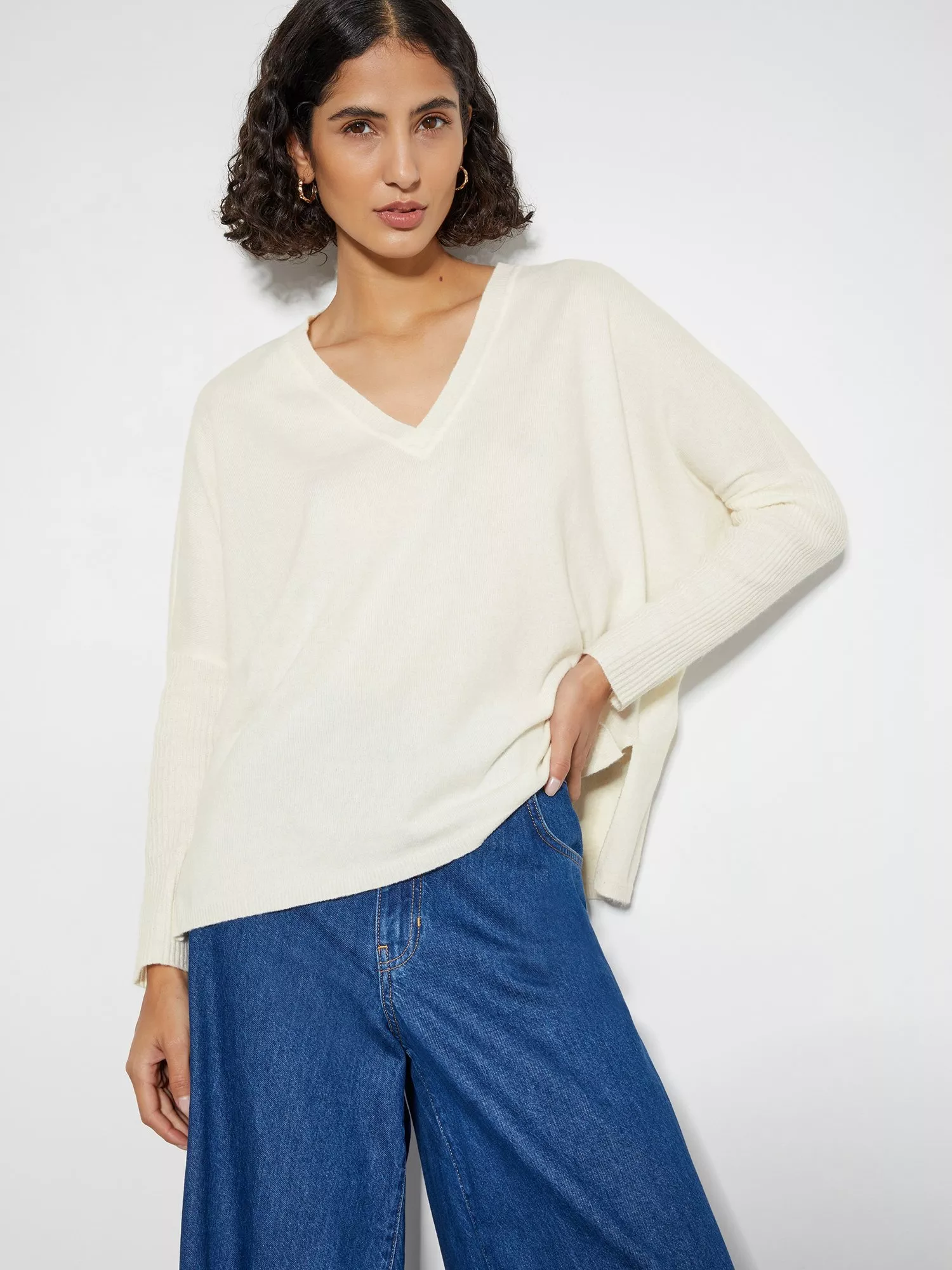 Folklore-core. With ribbed trims and a deep v-neckline, cosy has never looked so chic. Finished with a contemporary oversized fit.