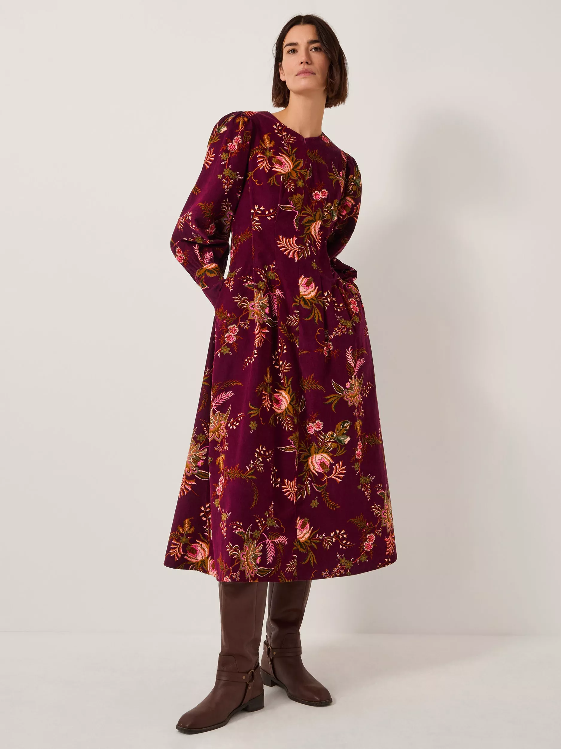Add drama to your silhouette with a fit and flare cut. This long sleeved pure cotton midi dress from Monsoon has a round neckline and a flatter-all floral print.