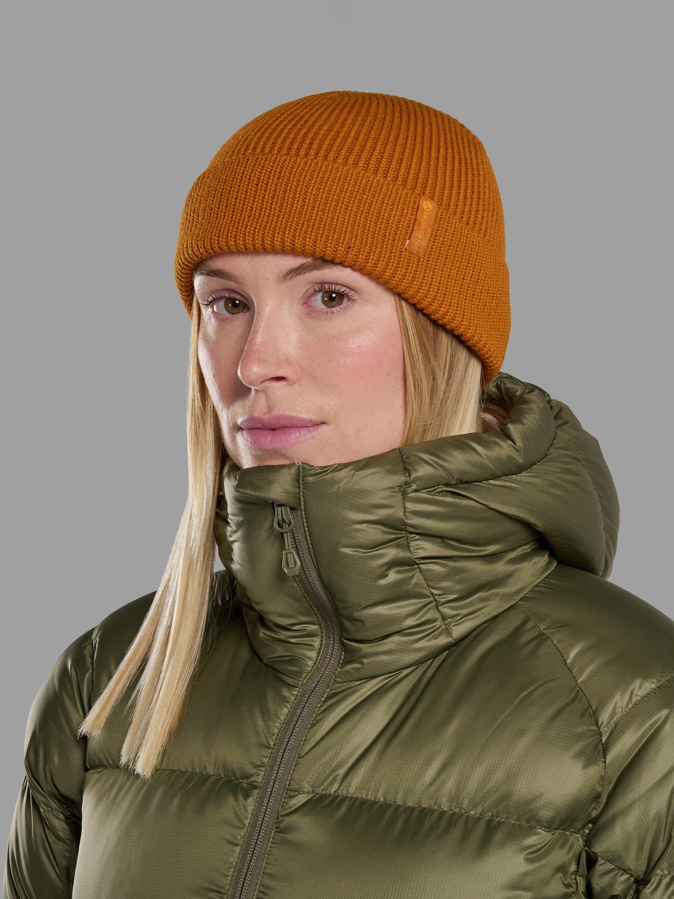 A lightweight merino wool blend Montane logo beanie with a turn up detail.