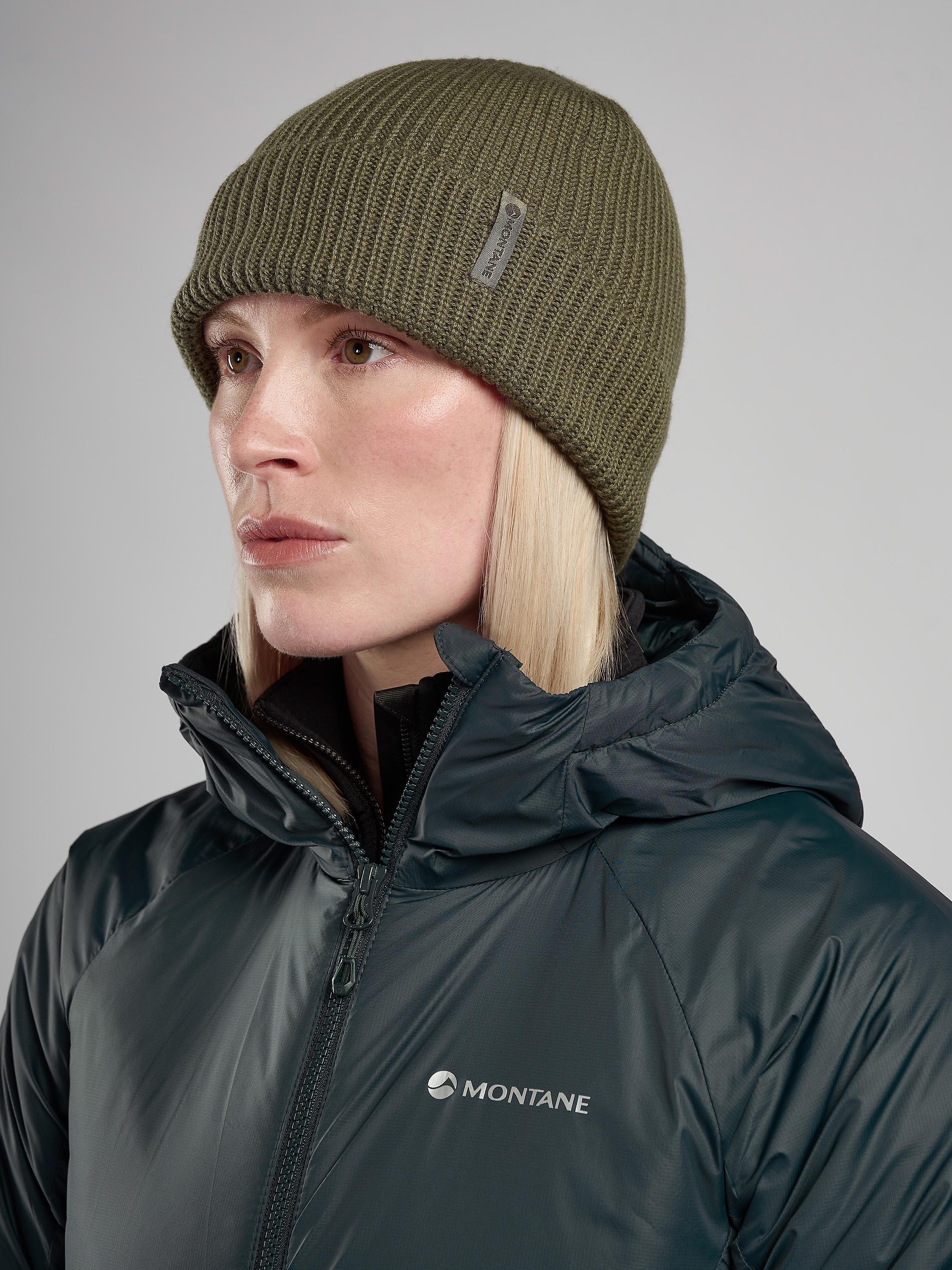 A lightweight merino wool blend Montane logo beanie with a turn up detail.