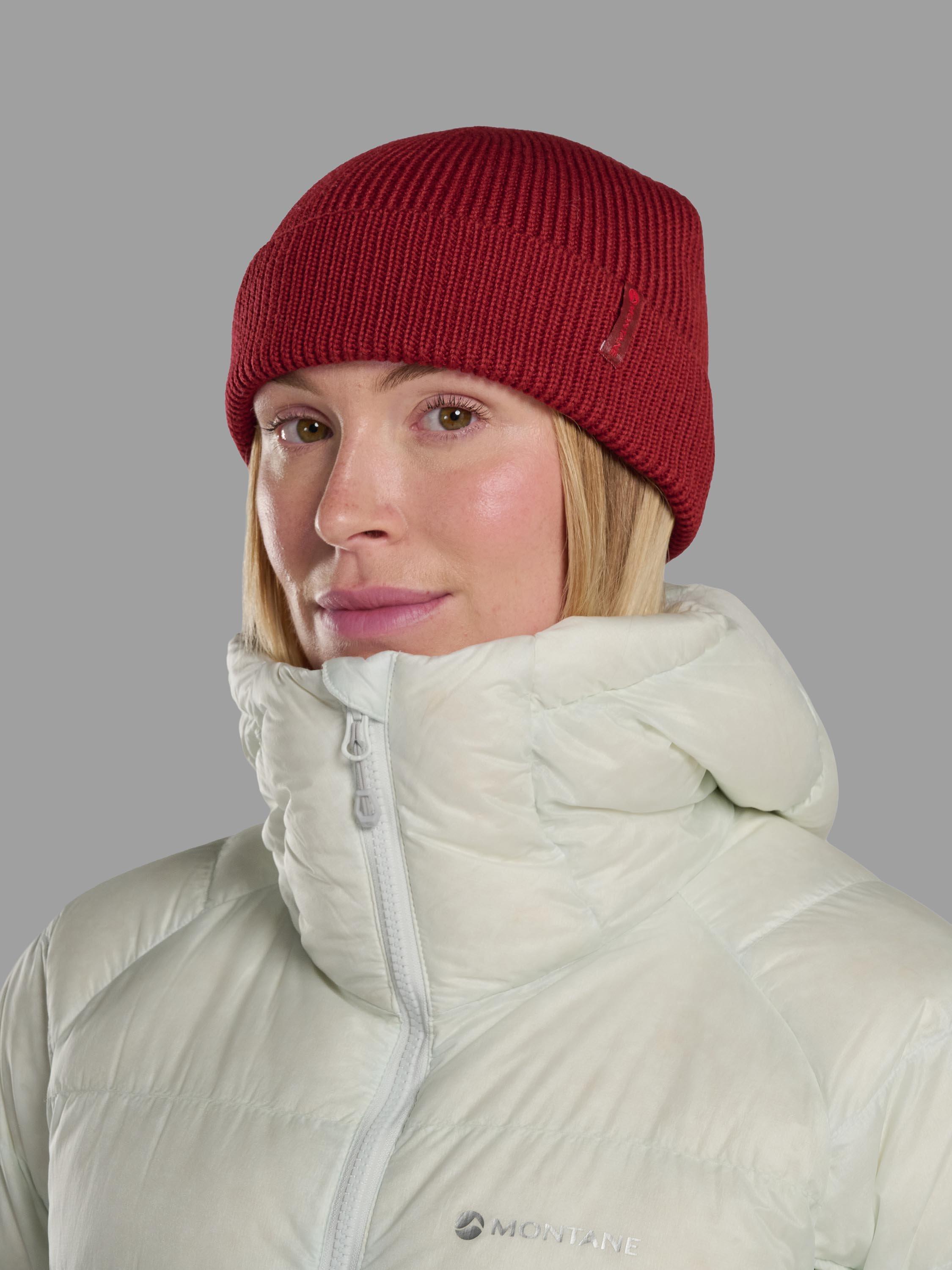 A lightweight merino wool blend Montane logo beanie with a turn up detail.