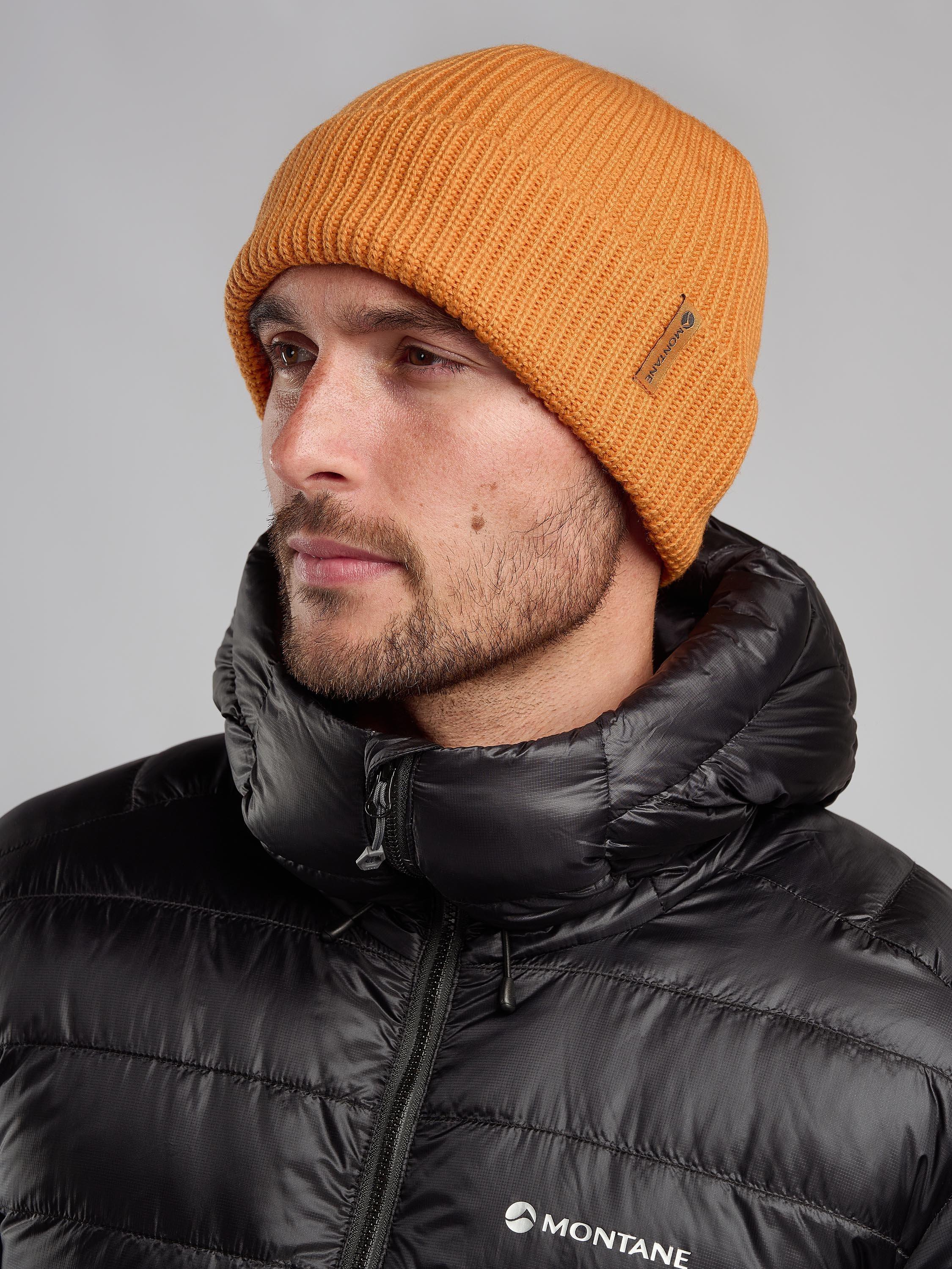 A lightweight merino wool blend Montane logo beanie with a turn up detail.
