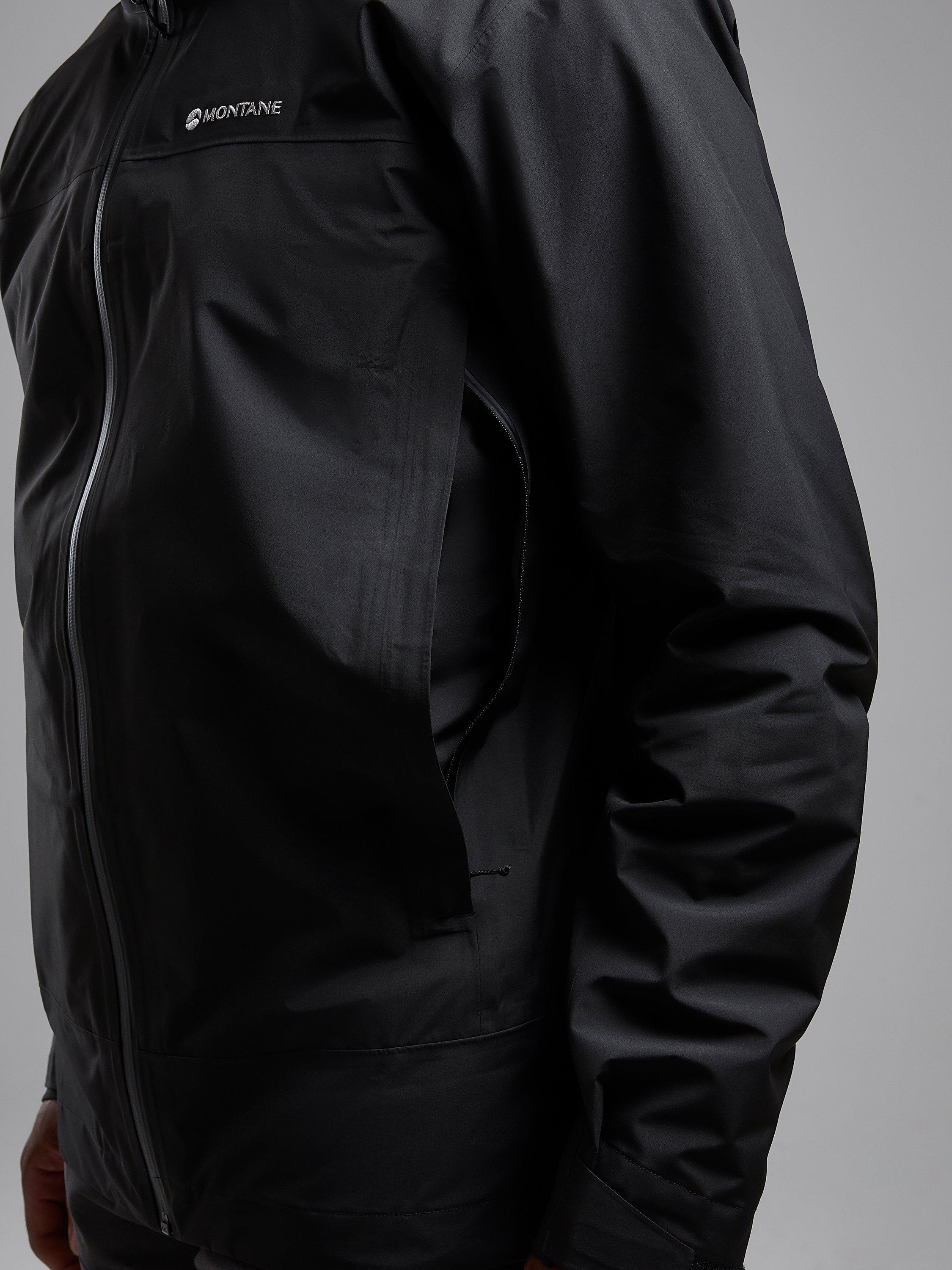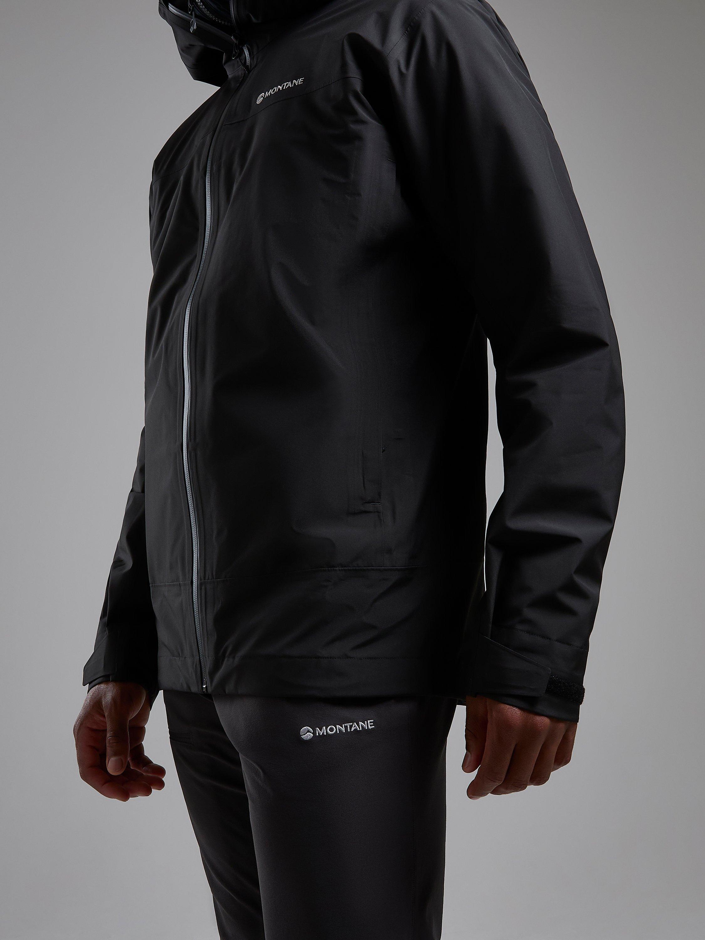 The Montane Men’s Solution Waterproof Jacket delivers top tier performance with a 100% recycled outer that has been solution dyed to save 50% water, and recycled zips and adjustments.