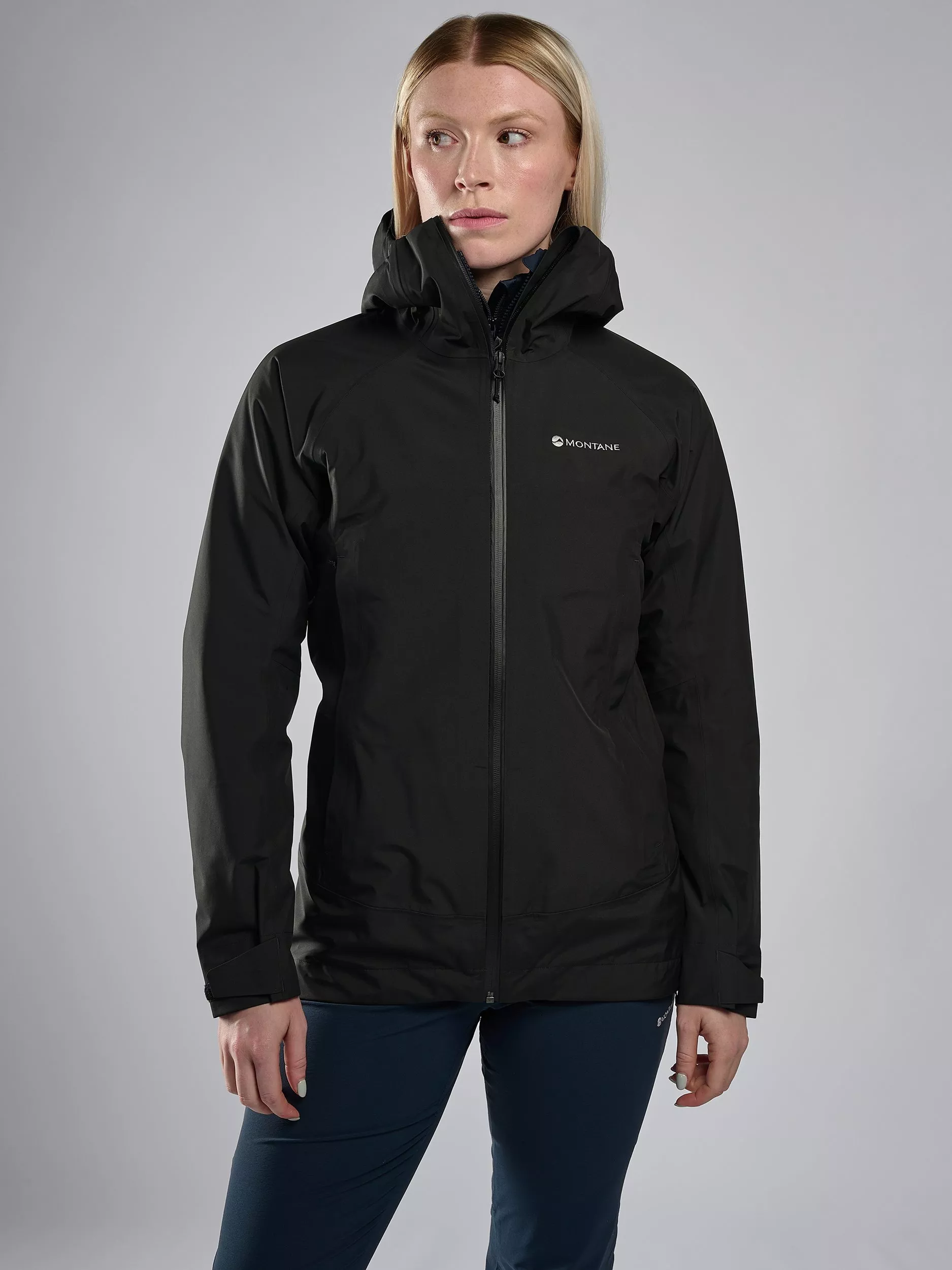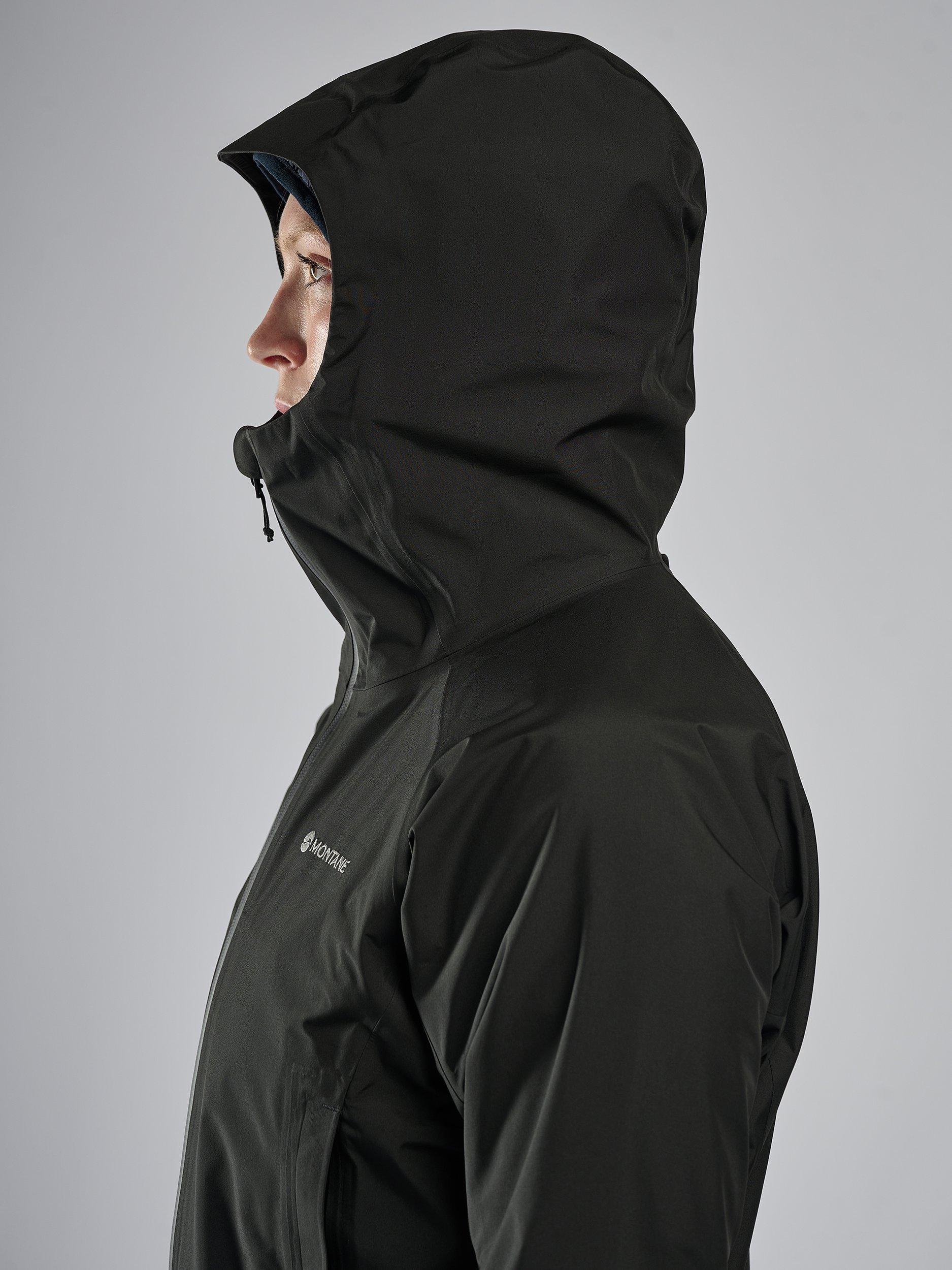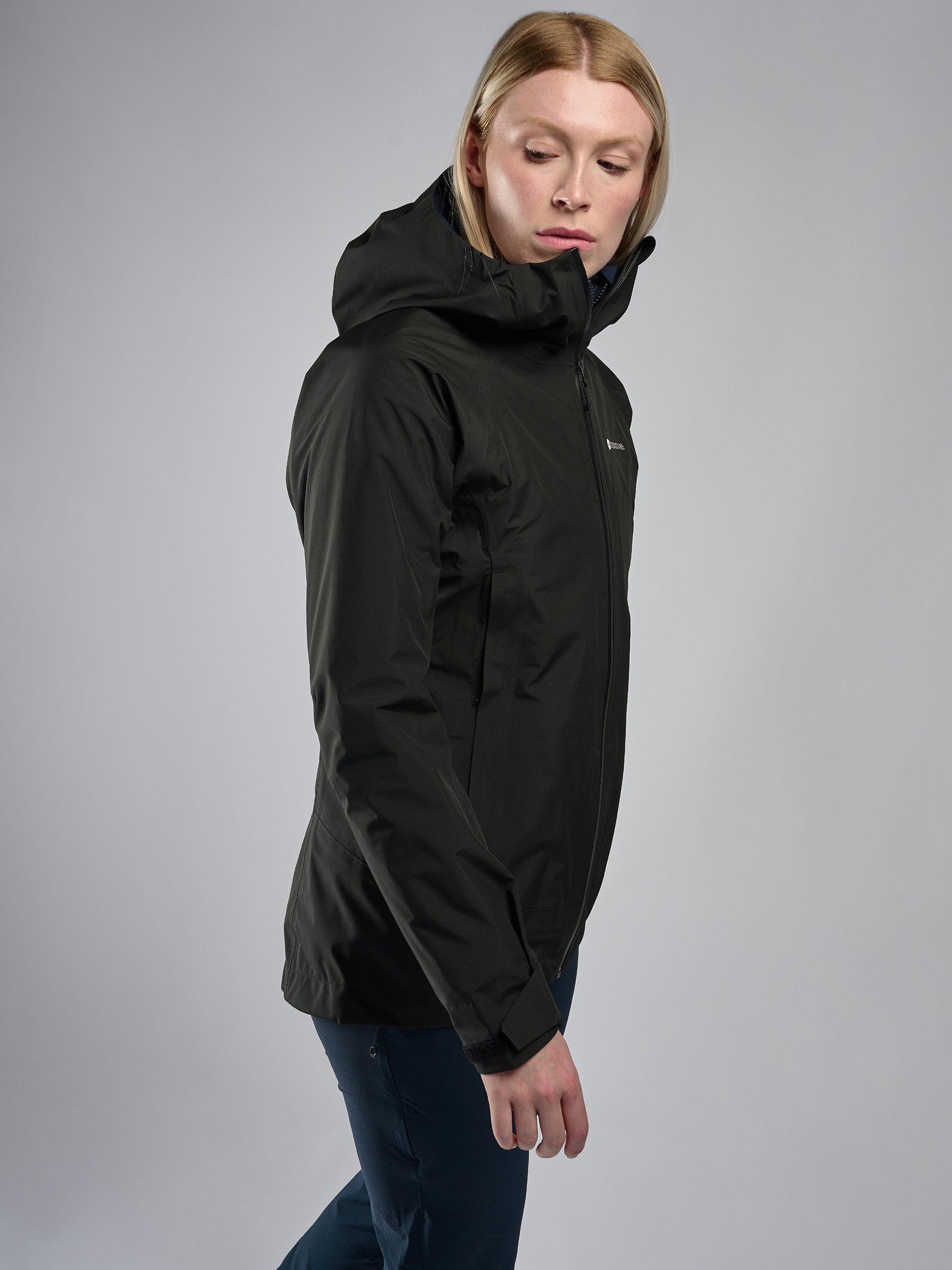 The Montane Women’s Solution Waterproof Jacket delivers top tier performance with a 100% recycled outer that has been solution dyed to save 50% water, and recycled zips and adjustments.