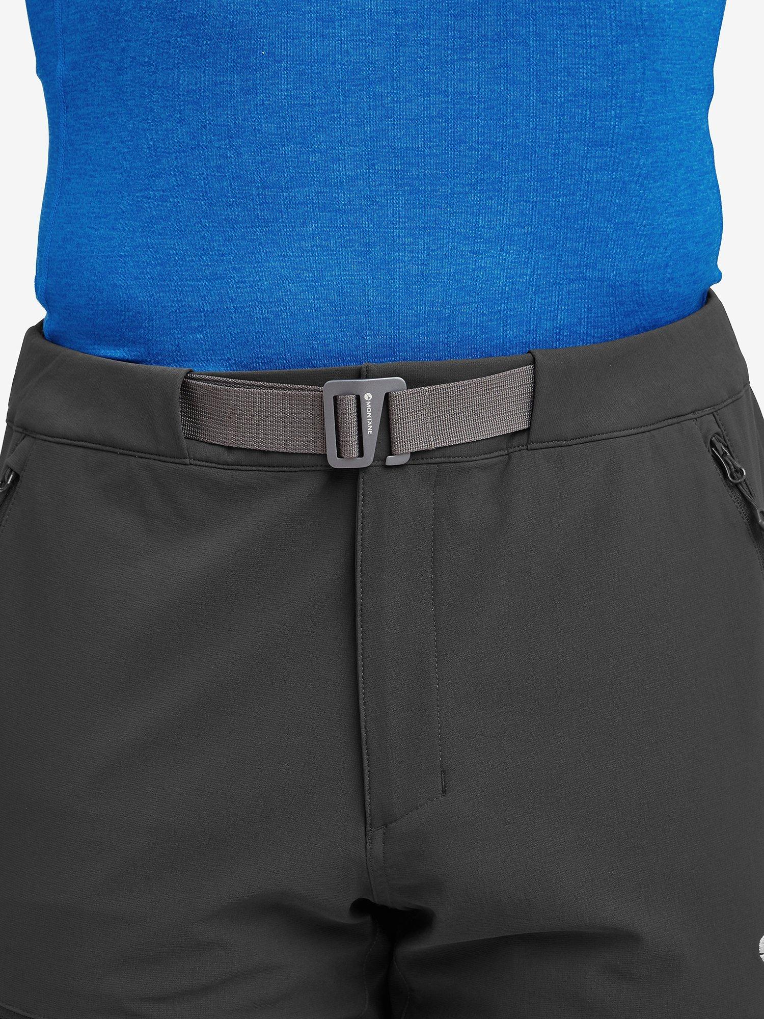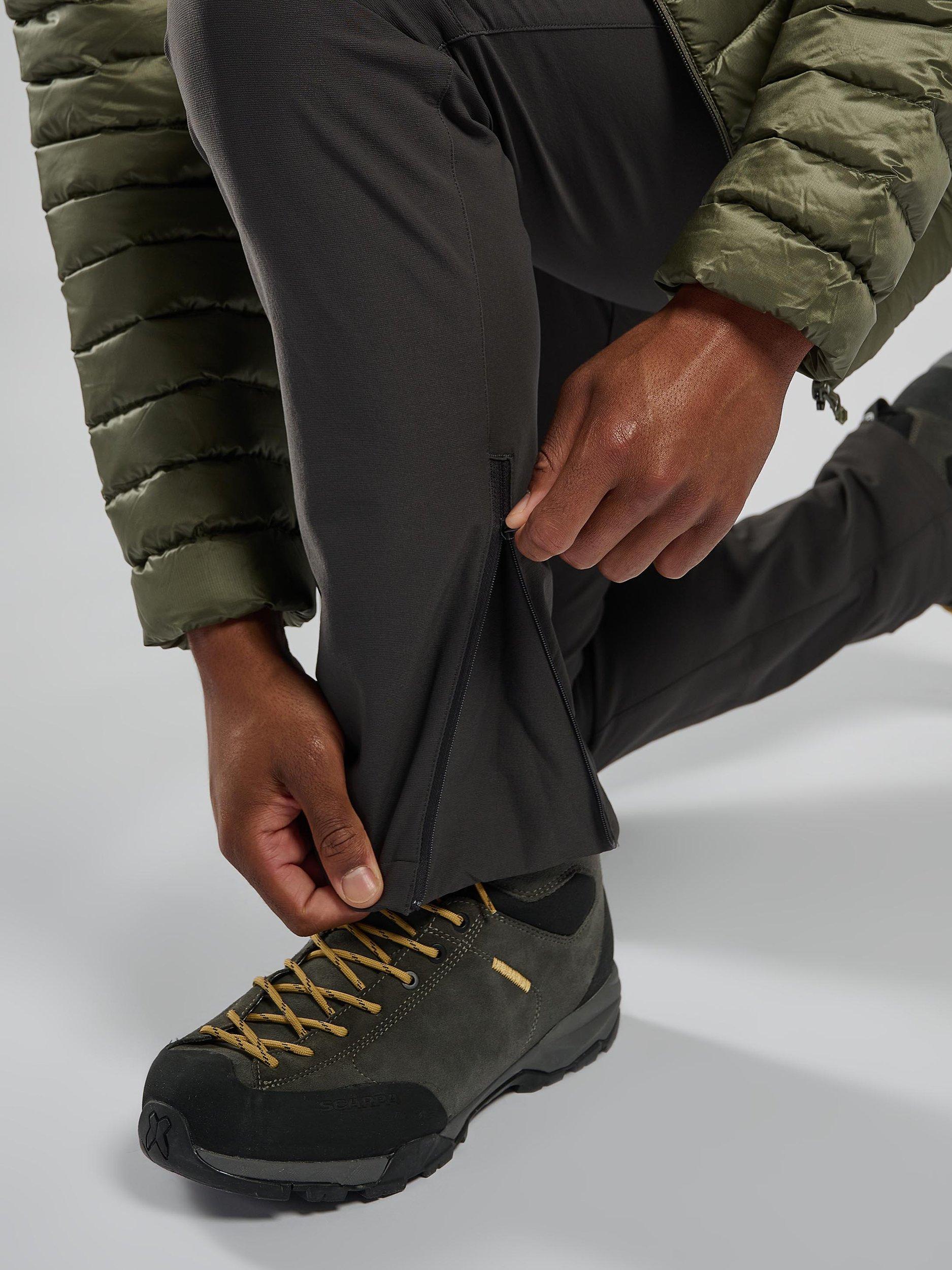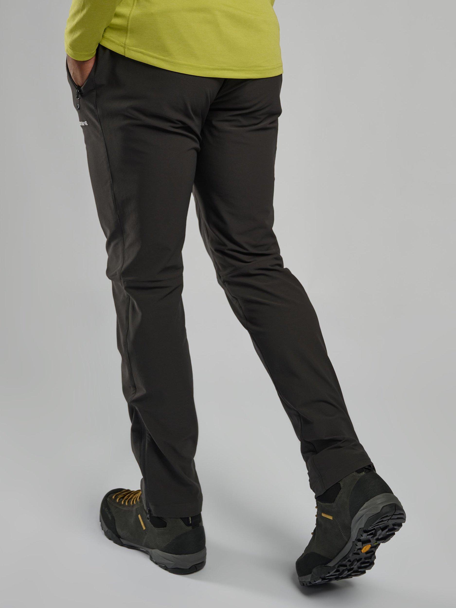 Softshell hiking trousers designed with mountain walking and backpacking in mind. Made using Granite stretch fabric throughout, they offer superior abrasion and wind resistance for wild days up high. An athletic fit provides greater freedom of movement, while an integrated webbing belt and zipped fly keep the trousers secure. With two mesh-lined hand pockets and a rear zipped pocket offering ample storage for essentials.