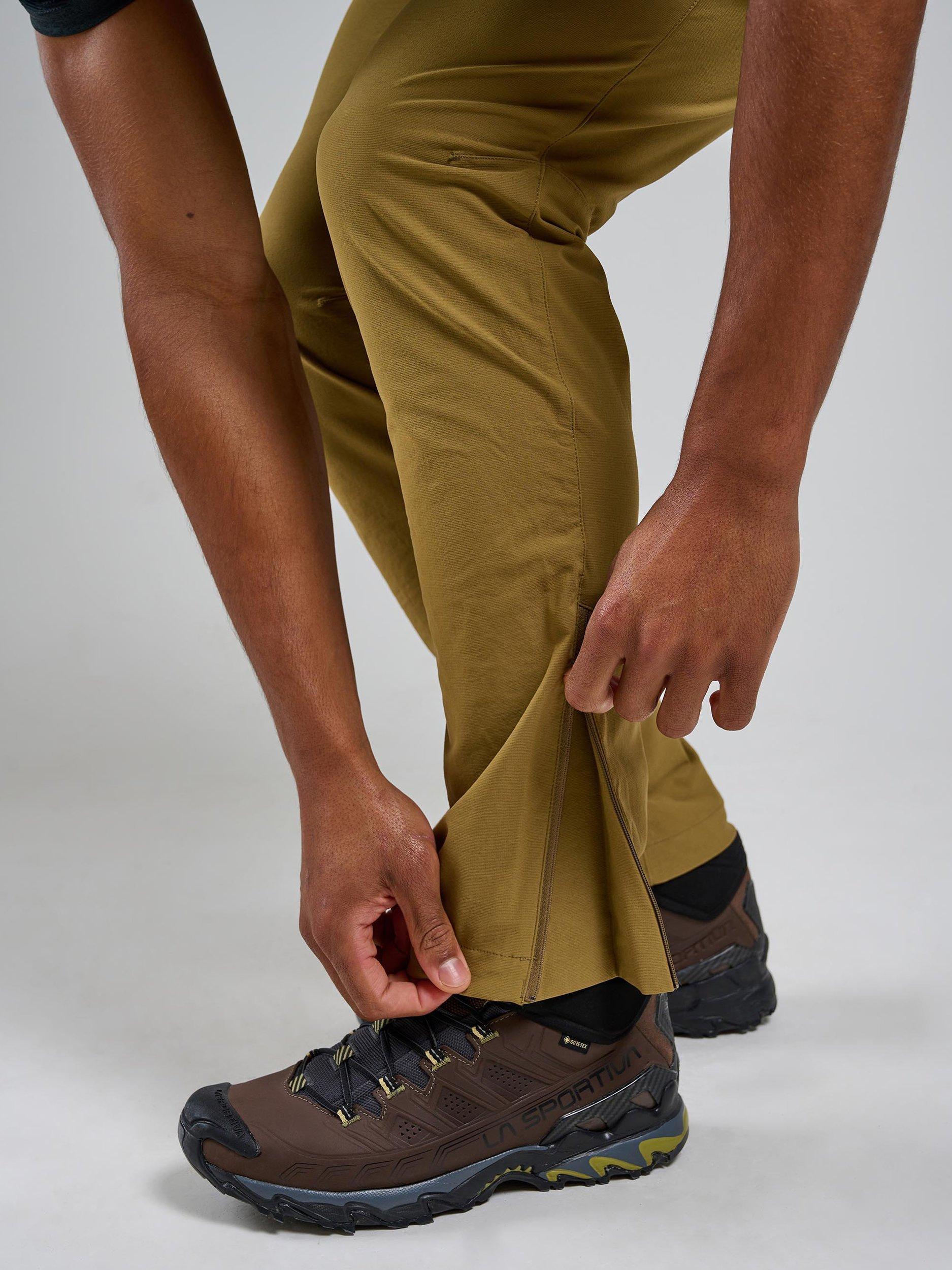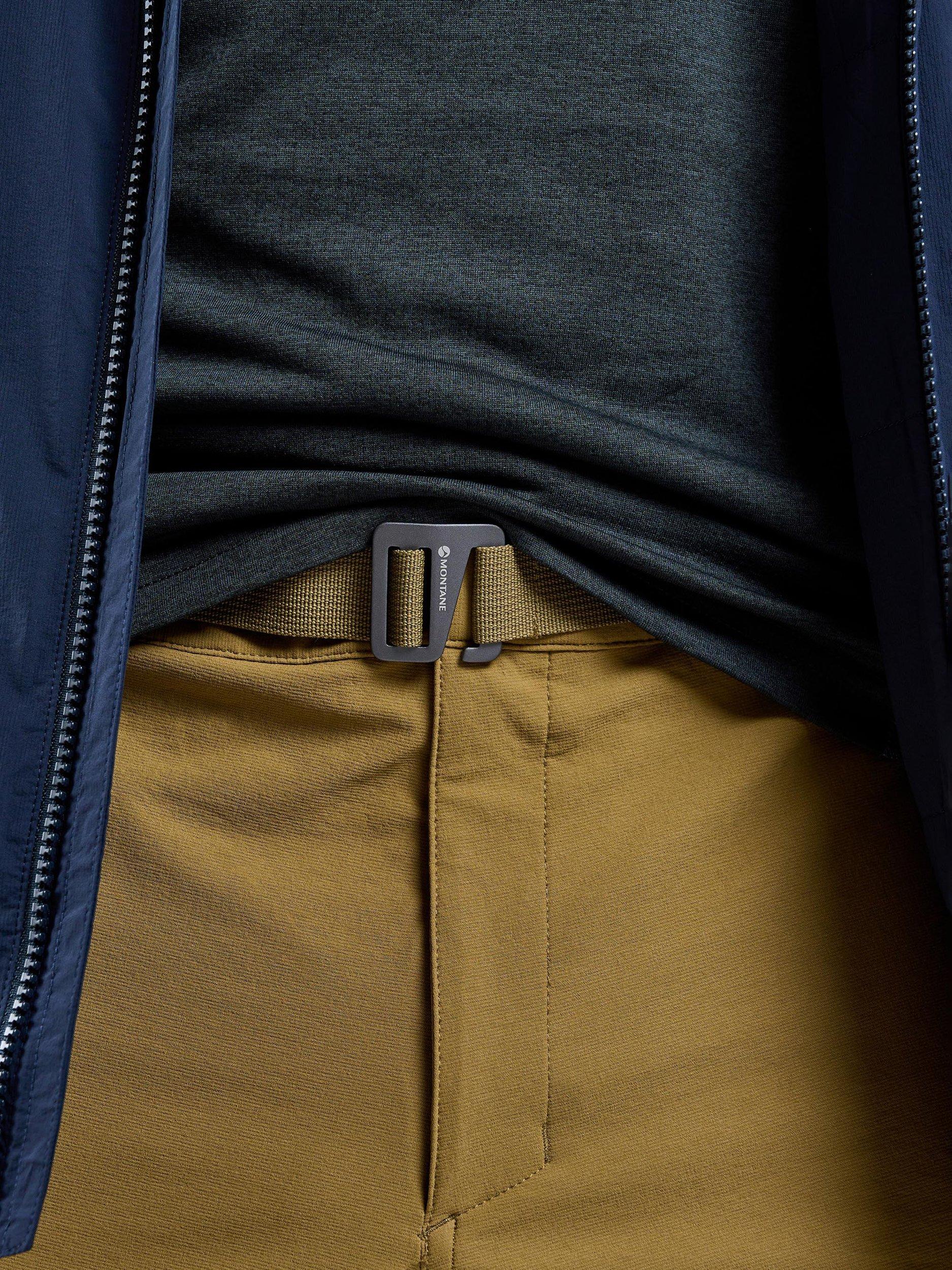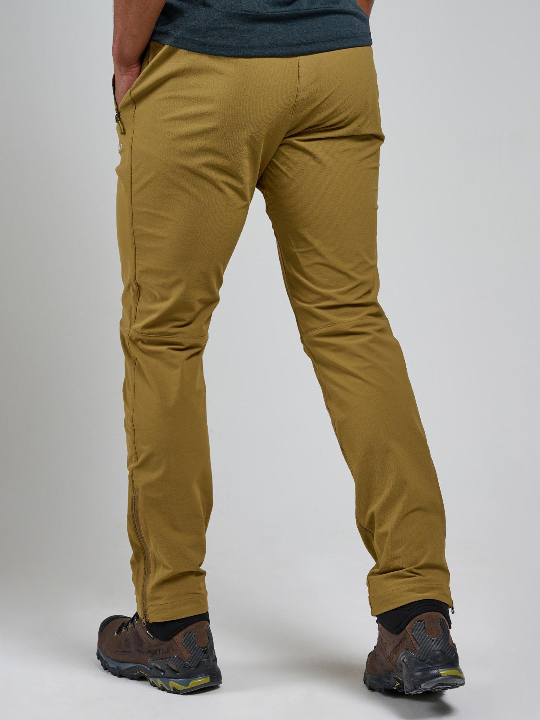 Softshell hiking trousers designed with mountain walking and backpacking in mind. Made using Granite stretch fabric throughout, they offer superior abrasion and wind resistance for wild days up high. An athletic fit provides greater freedom of movement, while an integrated webbing belt and zipped fly keep the trousers secure. With two mesh-lined hand pockets and a rear zipped pocket offering ample storage for essentials.