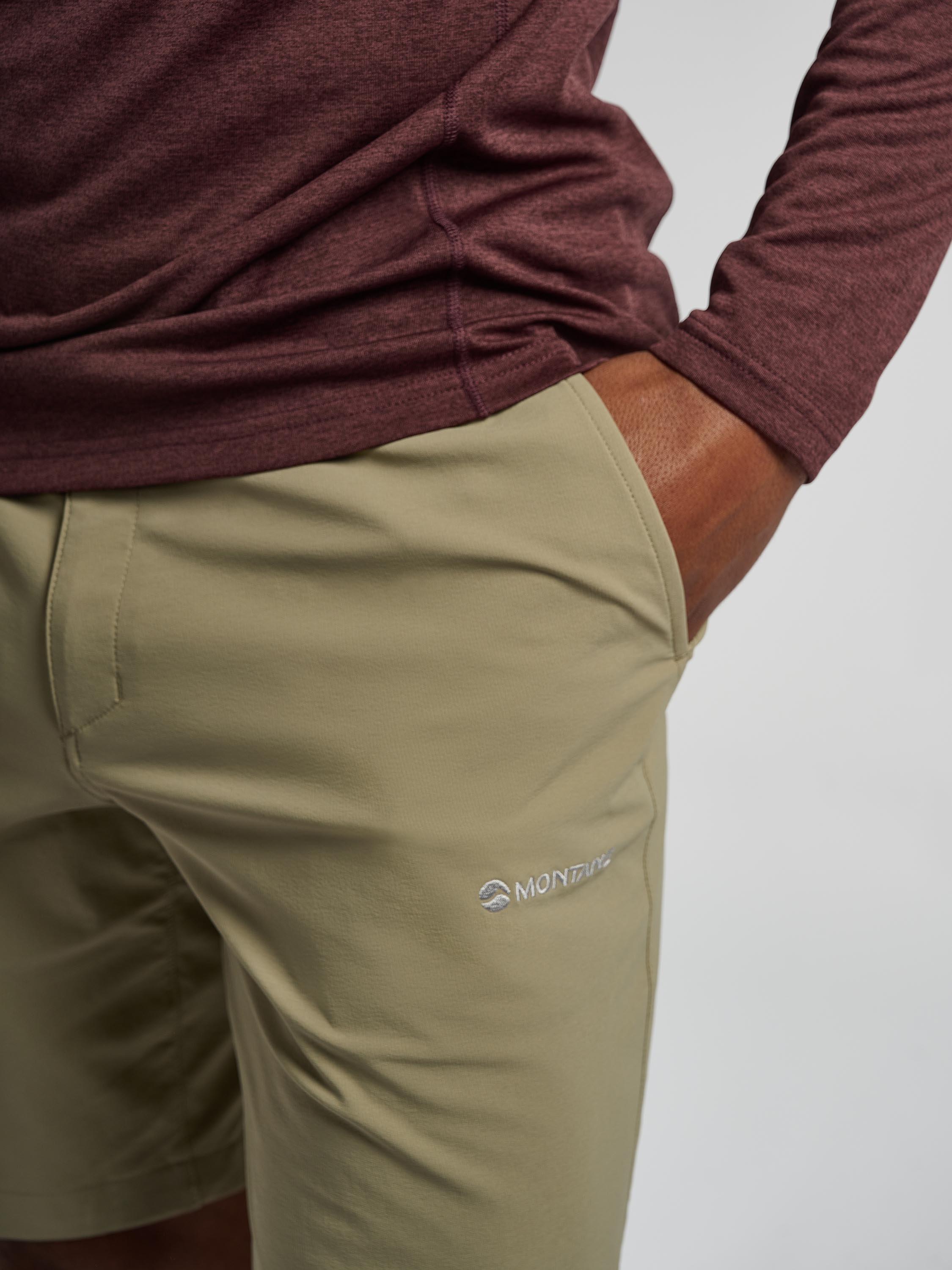 A lightweight pair of softshell hiking shorts. The Tenacity Lite Shorts are designed with fast mountain walking and backpacking in mind. Made using Granite Stretch Lite fabric throughout, these shorts offer superior abrasion and wind resistance for wild days up high. An athletic fit provides greater freedom of movement, while an integrated webbing belt and zipped fly keep the shorts secure. Two mesh-lined hand pockets and a rear zipped pocket offer ample storage for essentials.