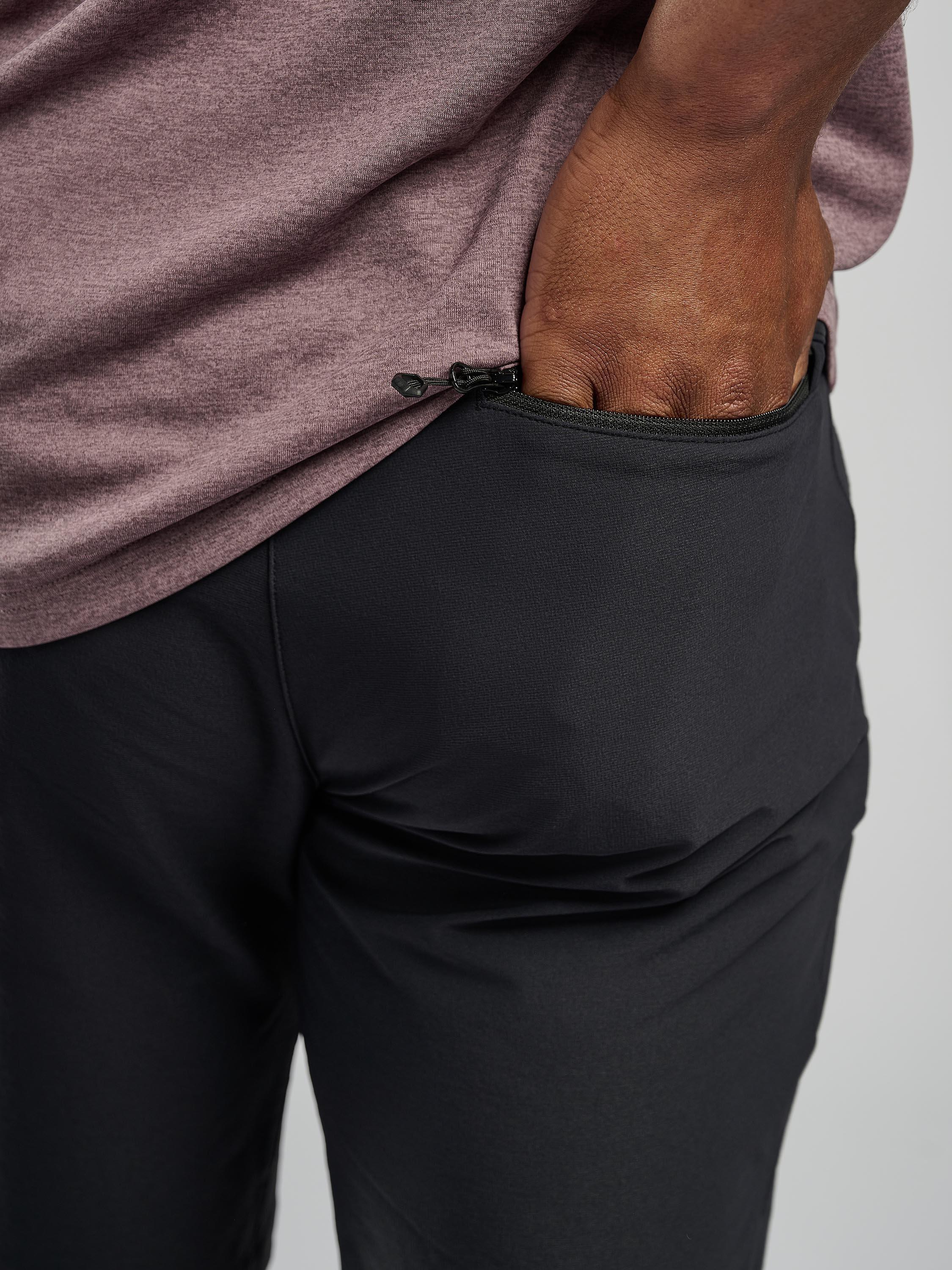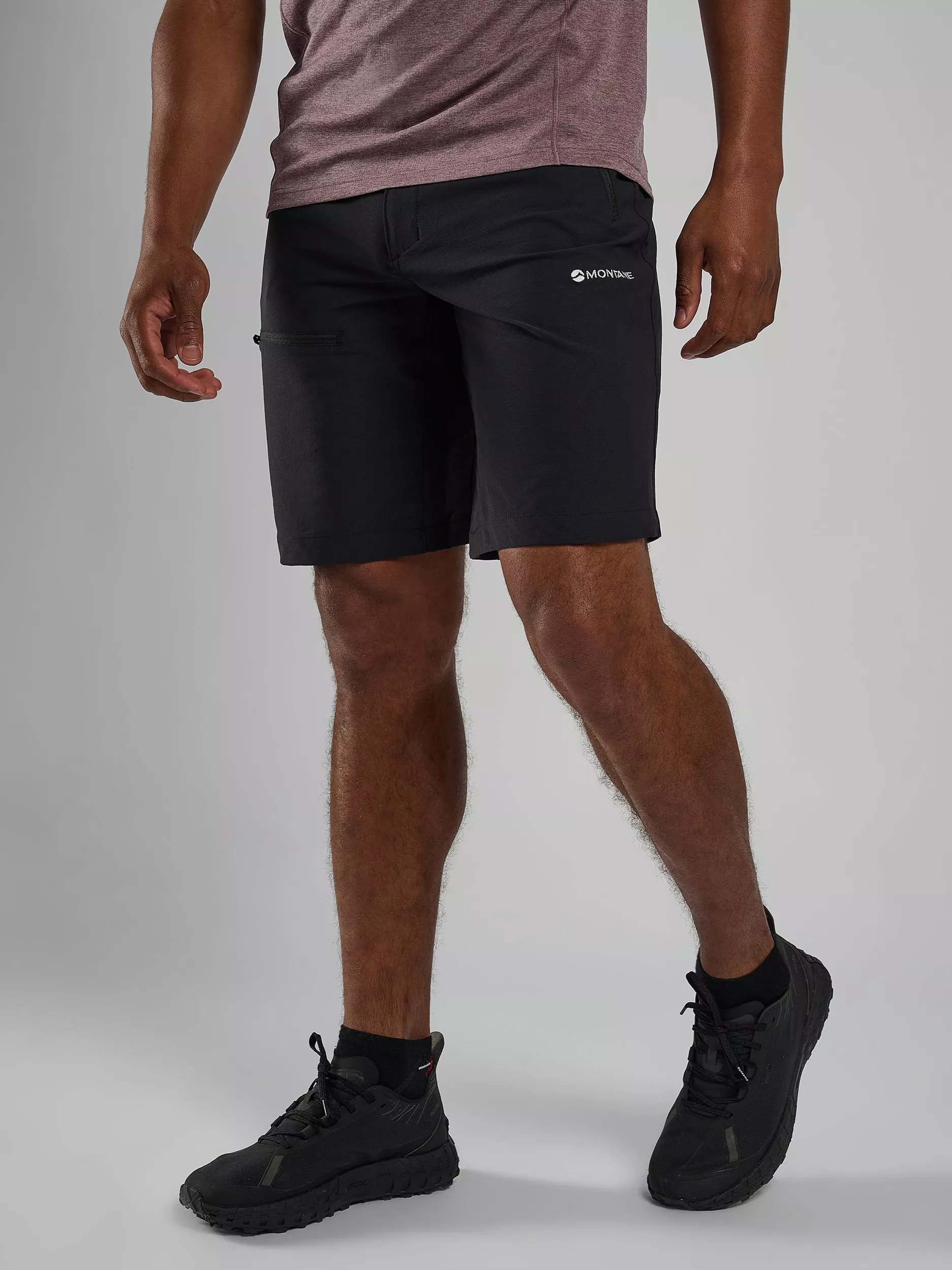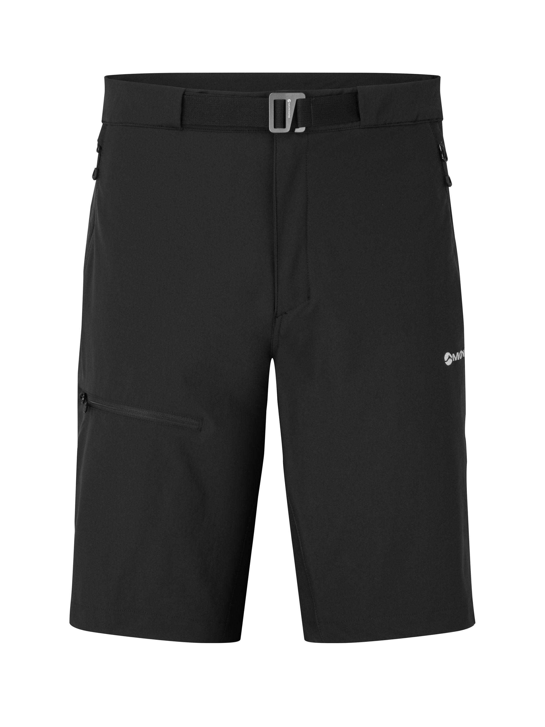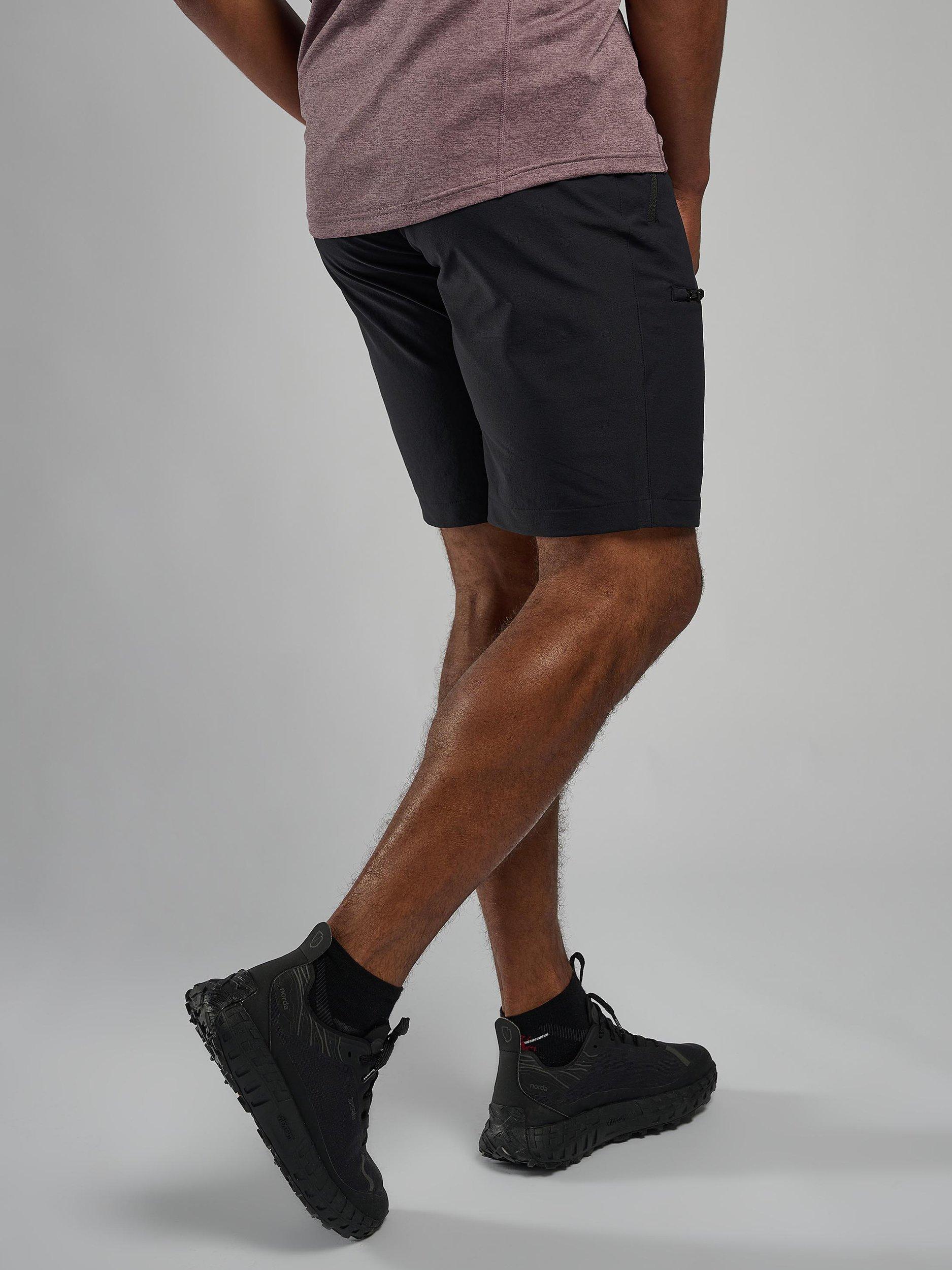 A pair of softshell hiking shorts. The Tenacity Shorts are designed with mountain walking and backpacking in mind. Made using Granite Stretch fabric throughout, these shorts offer superior abrasion and wind resistance for wild days up high. An athletic fit provides greater freedom of movement, while an integrated webbing belt and zipped fly keep the shorts secure. Two mesh-lined hand pockets and a rear zipped pocket offer ample storage for essentials.