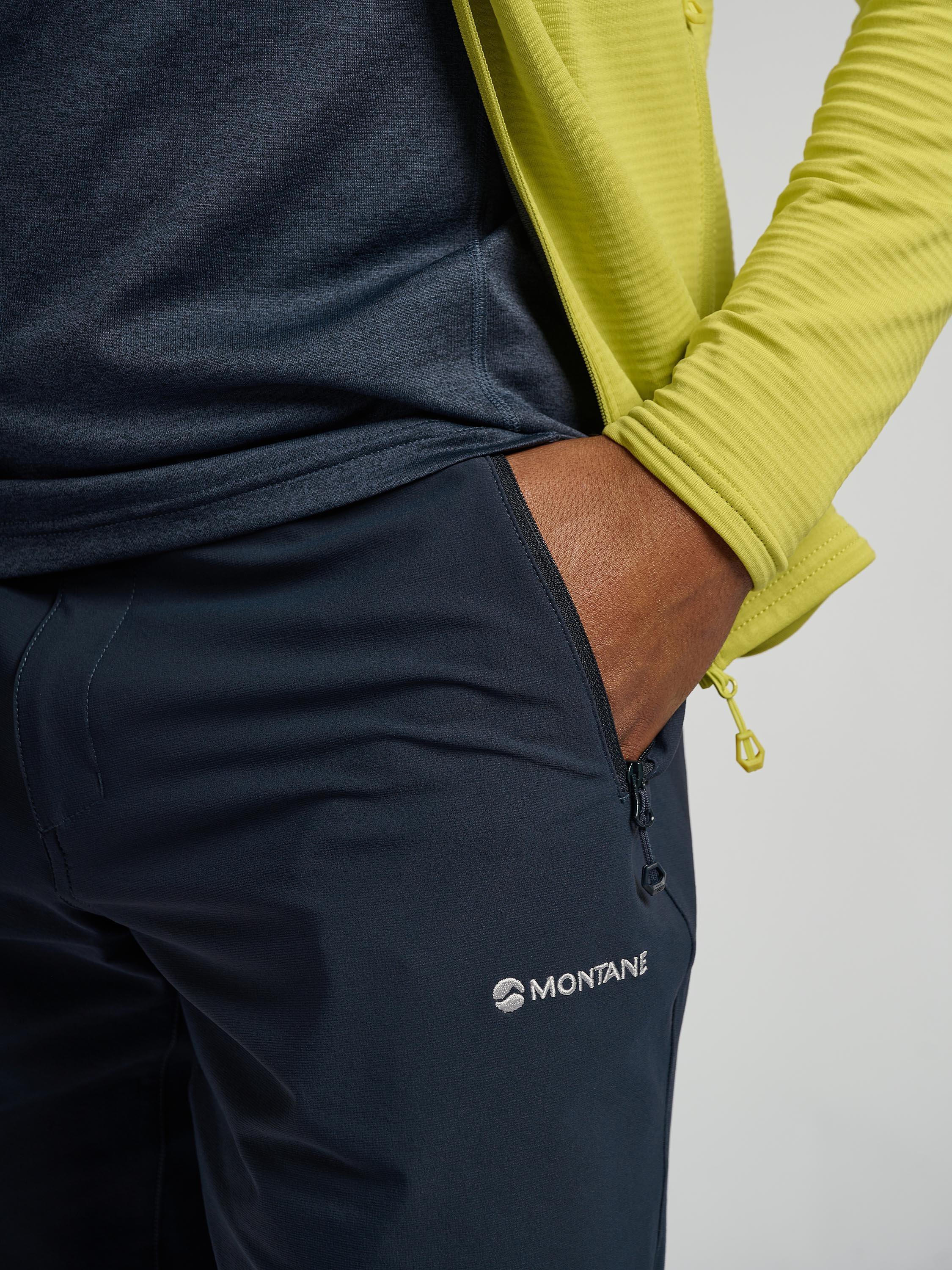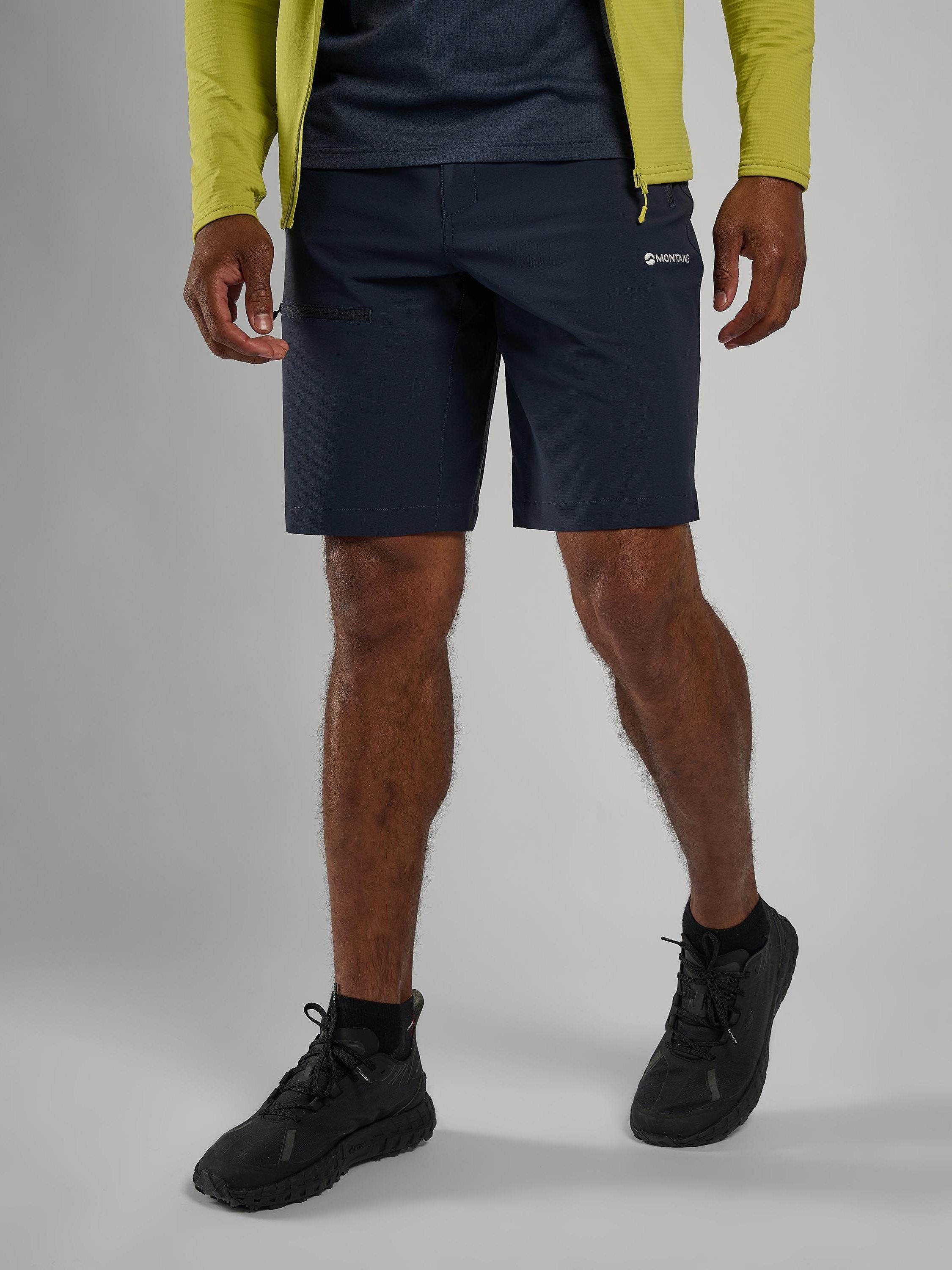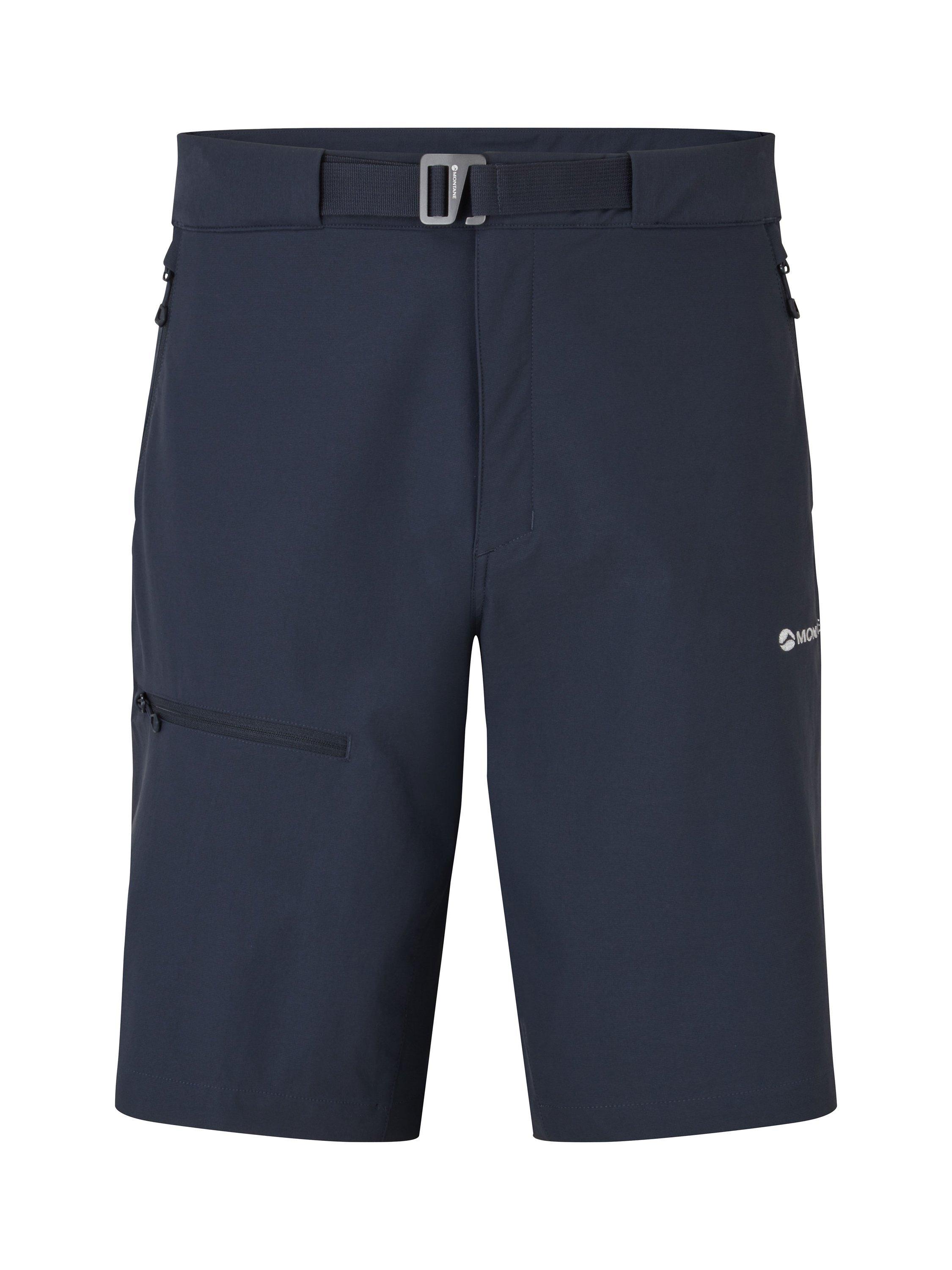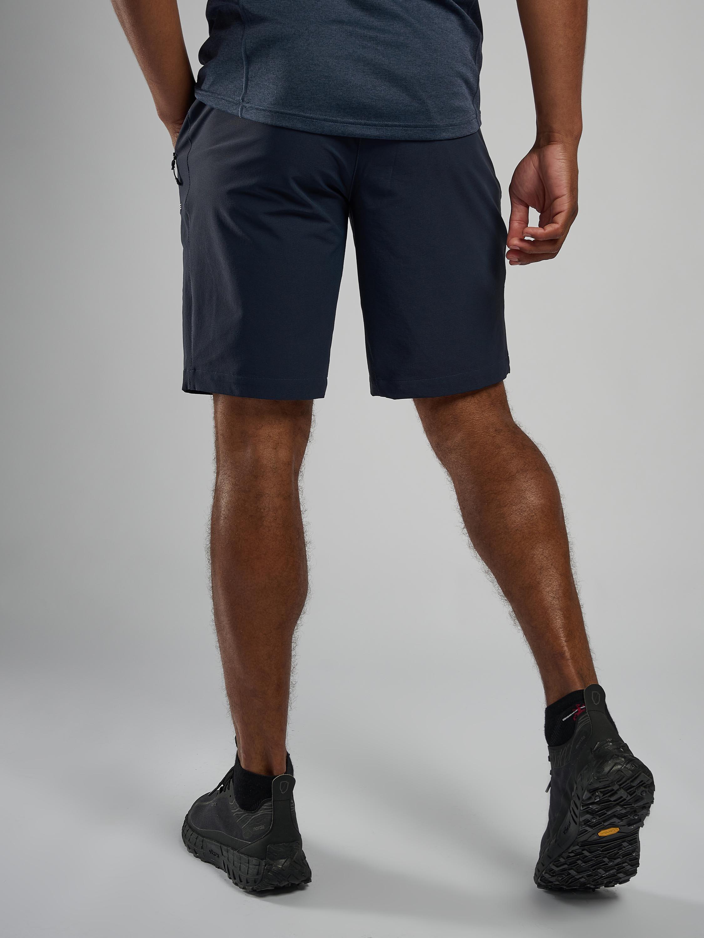 A pair of softshell hiking shorts. The Tenacity Shorts are designed with mountain walking and backpacking in mind. Made using Granite Stretch fabric throughout, these shorts offer superior abrasion and wind resistance for wild days up high. An athletic fit provides greater freedom of movement, while an integrated webbing belt and zipped fly keep the shorts secure. Two mesh-lined hand pockets and a rear zipped pocket offer ample storage for essentials.