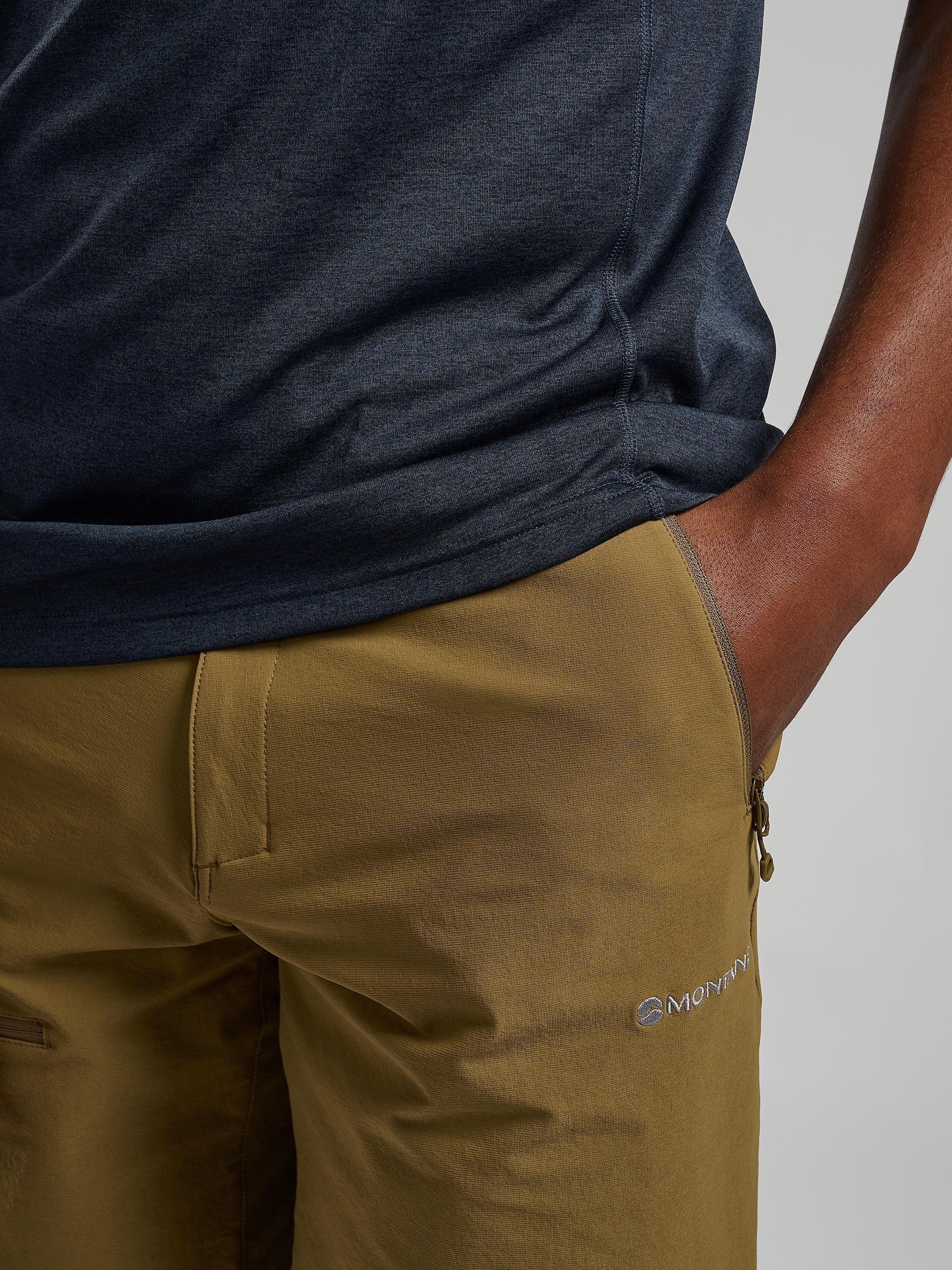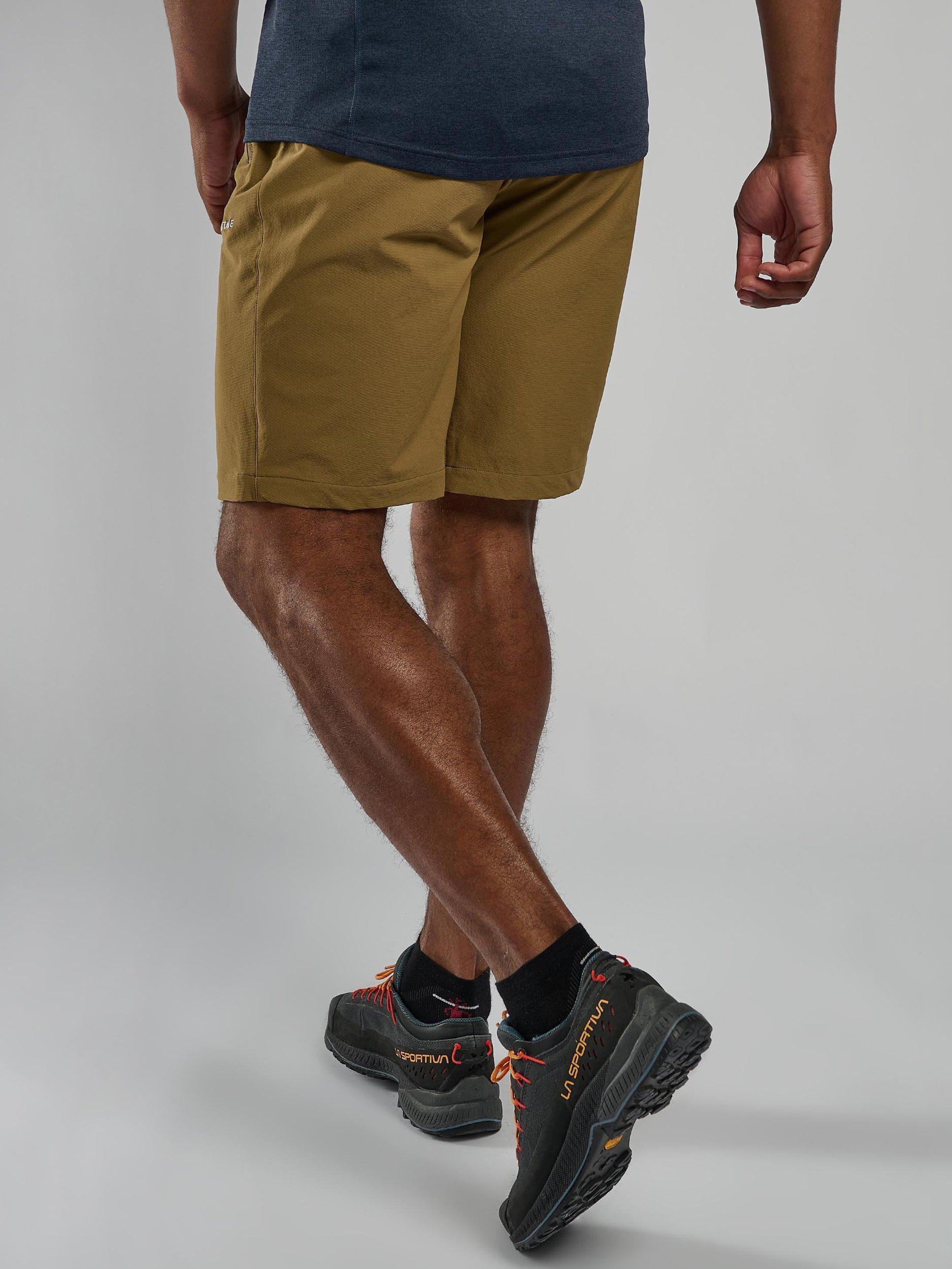 A pair of softshell hiking shorts. The Tenacity Shorts are designed with mountain walking and backpacking in mind. Made using Granite Stretch fabric throughout, these shorts offer superior abrasion and wind resistance for wild days up high. An athletic fit provides greater freedom of movement, while an integrated webbing belt and zipped fly keep the shorts secure. Two mesh-lined hand pockets and a rear zipped pocket offer ample storage for essentials.