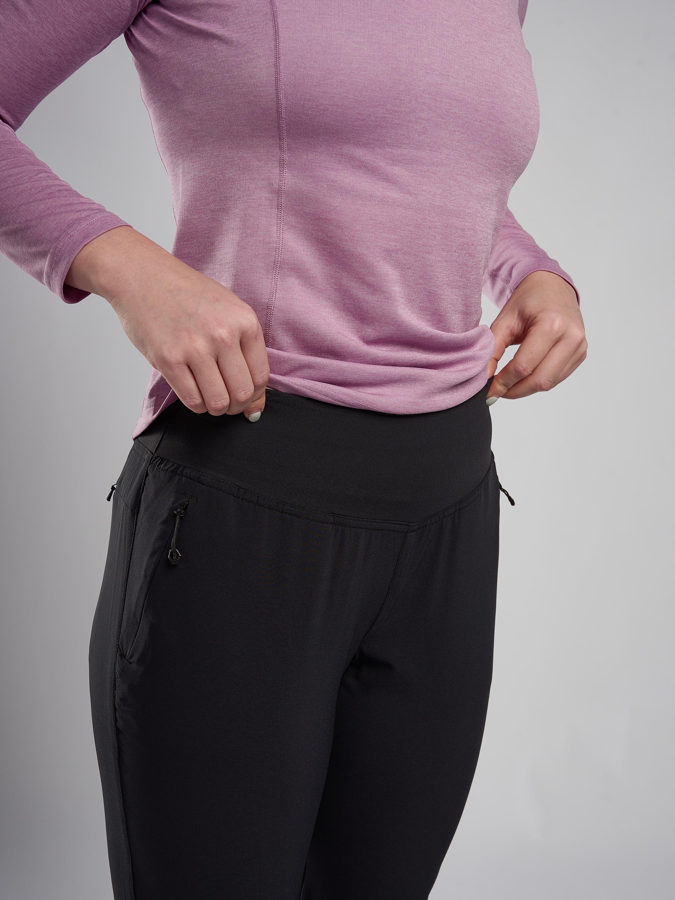 The Montane Women's Tucana Lite Stretch Pants have been designed using a lightweight four way stretch fabric with a deep stretch comfortable to wear waistband and articulated knees offering unrestricted movement with two zipped hand and rear pockets to keep essentials secure. Constructed using Granite Stretch Lite fabric which offers wind resistance. A great multi activity trouser that will get you through your hardest uphill strides.