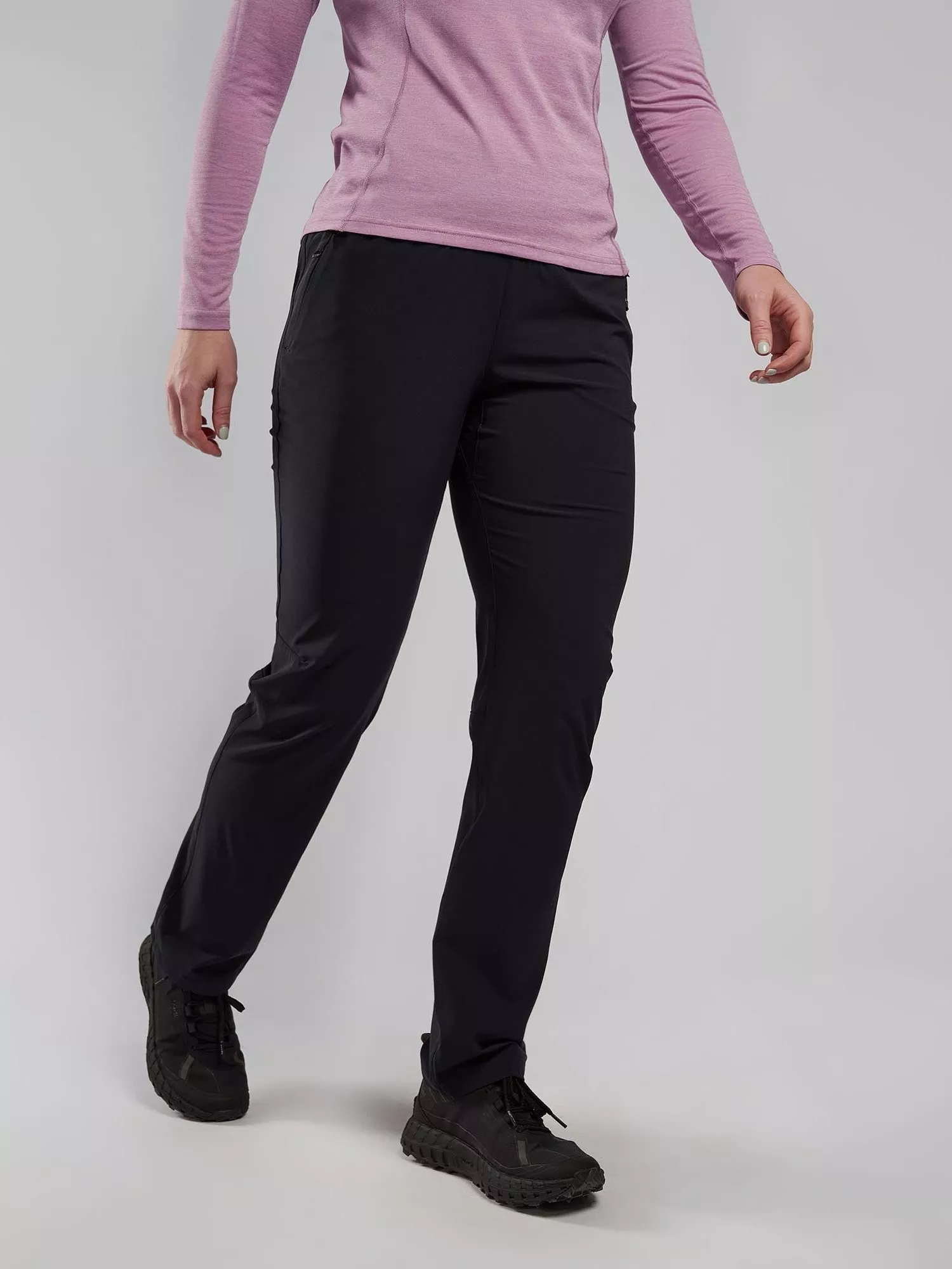 Made using Granite Stretch Lite fabric, these trousers offer supreme versatility in a durable and wind-resistant package. A trim fit provides greater freedom of movement, while two zipped hand pockets and a rear zipped pocket make room for essentials. A deep stretch waistband keeps the pants securely in place through your hardest uphill strides.