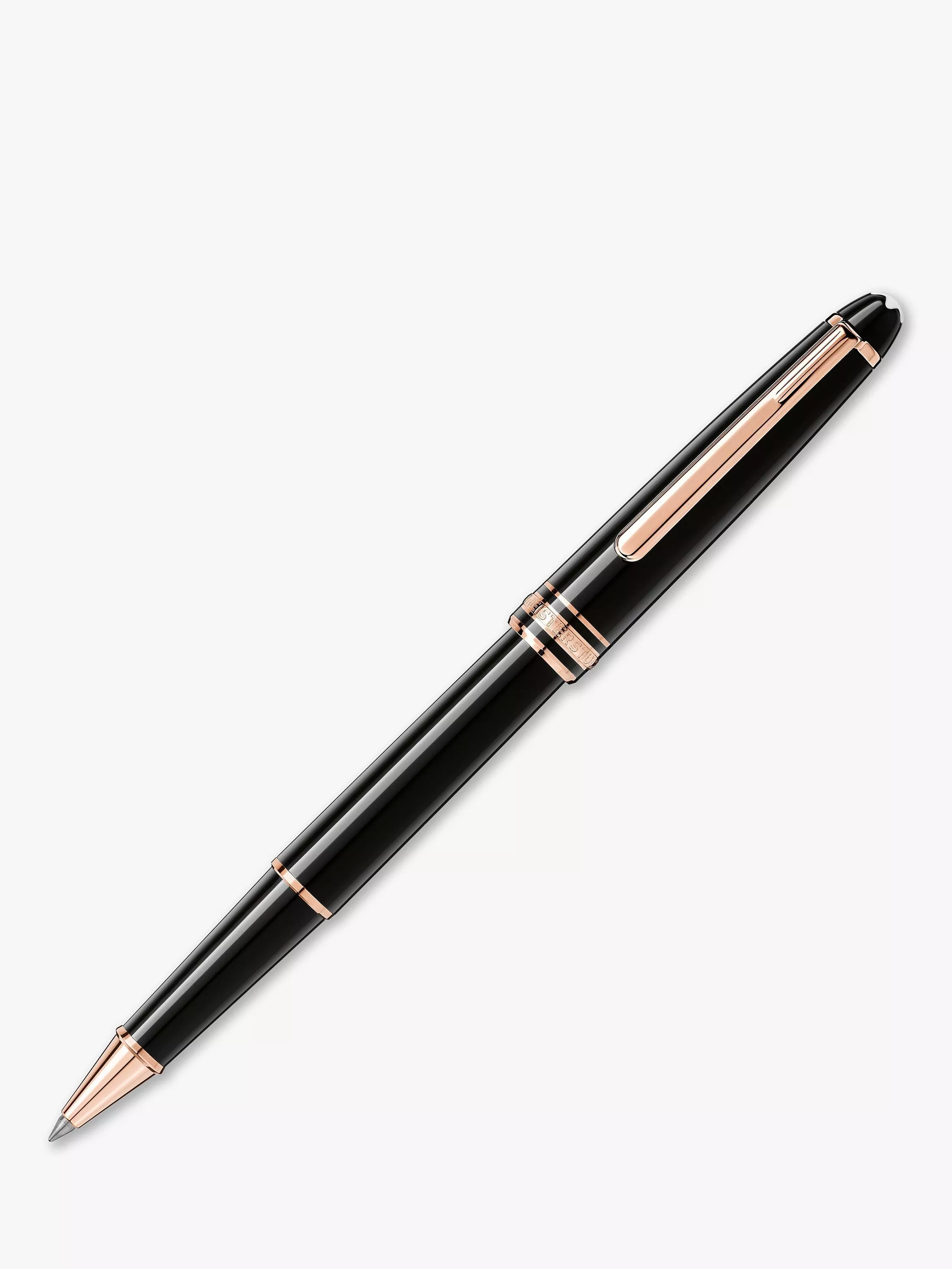 The cap and barrel are crafted in black precious resin featuring the iconic white Montblanc emblem inlaid in the cap top, while the rose gold-coated clip is finished with an individual serial number.