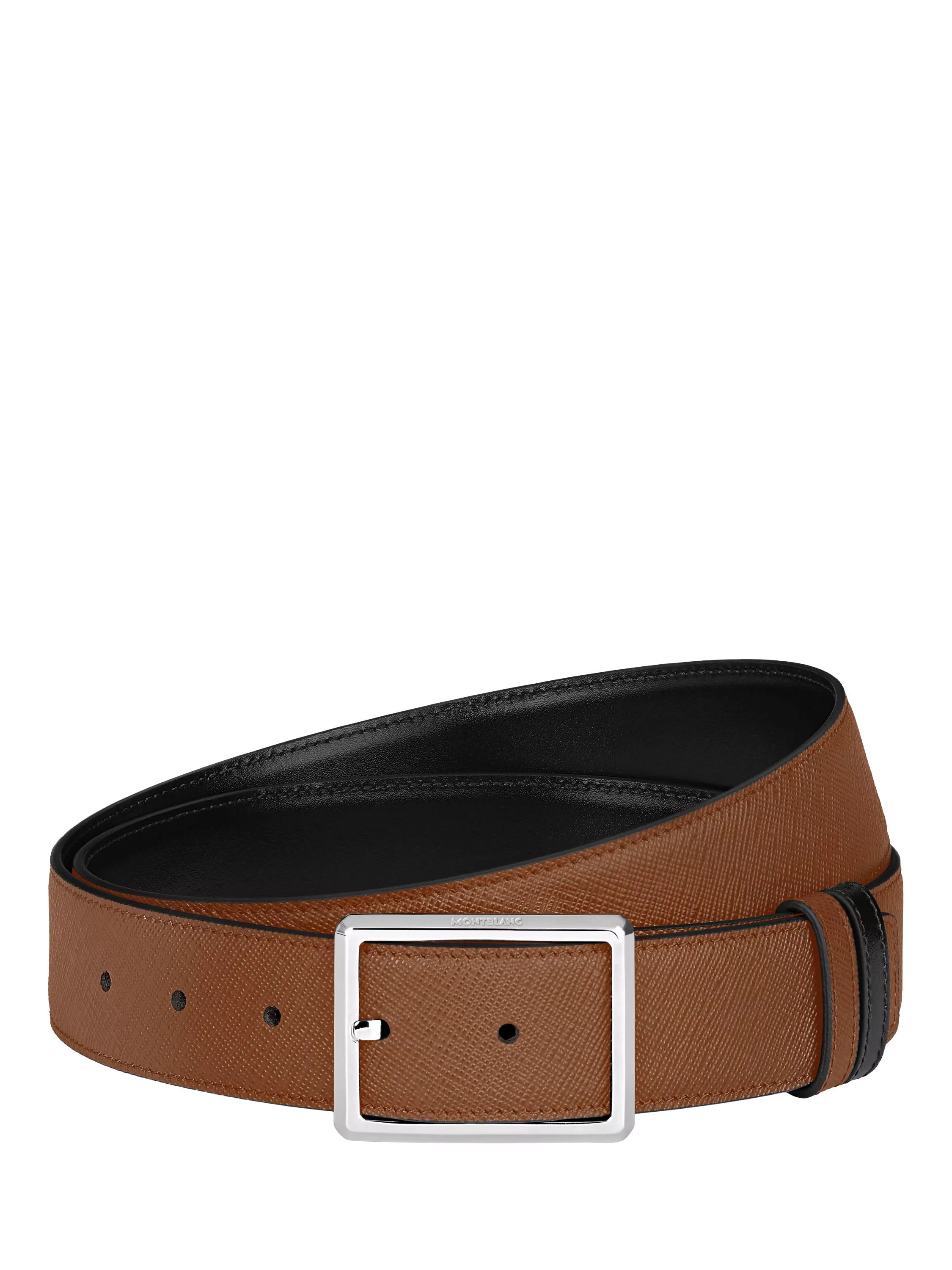 Exude timeless elegance with this 35mm reversible leather belt. Featuring a rectangular formal buckle in a shiny palladium finish, it offers versatile styling options. One side showcases sartorial embossed leather in a sophisticated shade, while the reverse features smooth Meisterstück leather for a classic, polished look.