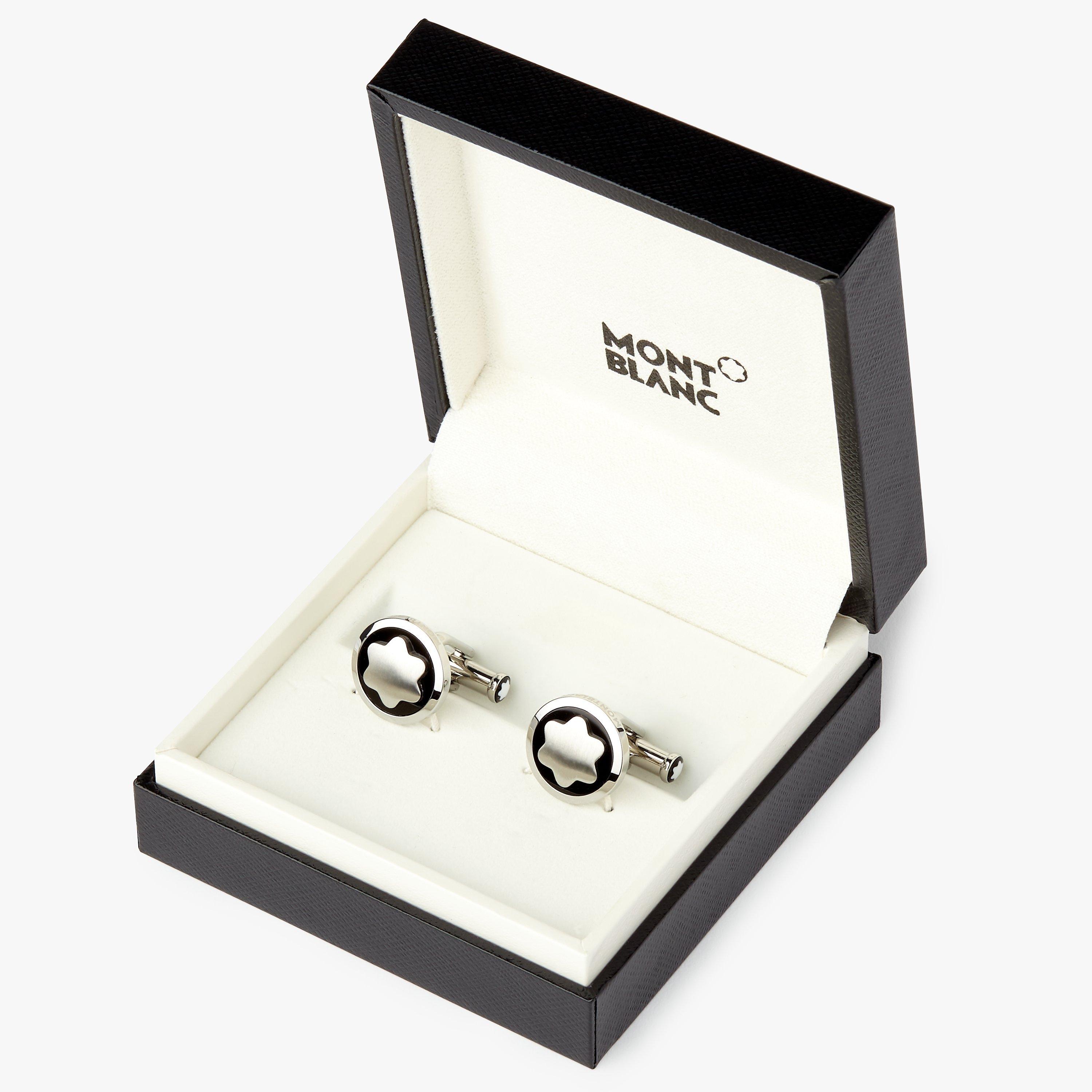 Combining Montblanc's iconic snowcap star emblem on a black onyx inlay, these round cufflinks will add some designer sophistication to your formal ensembles.