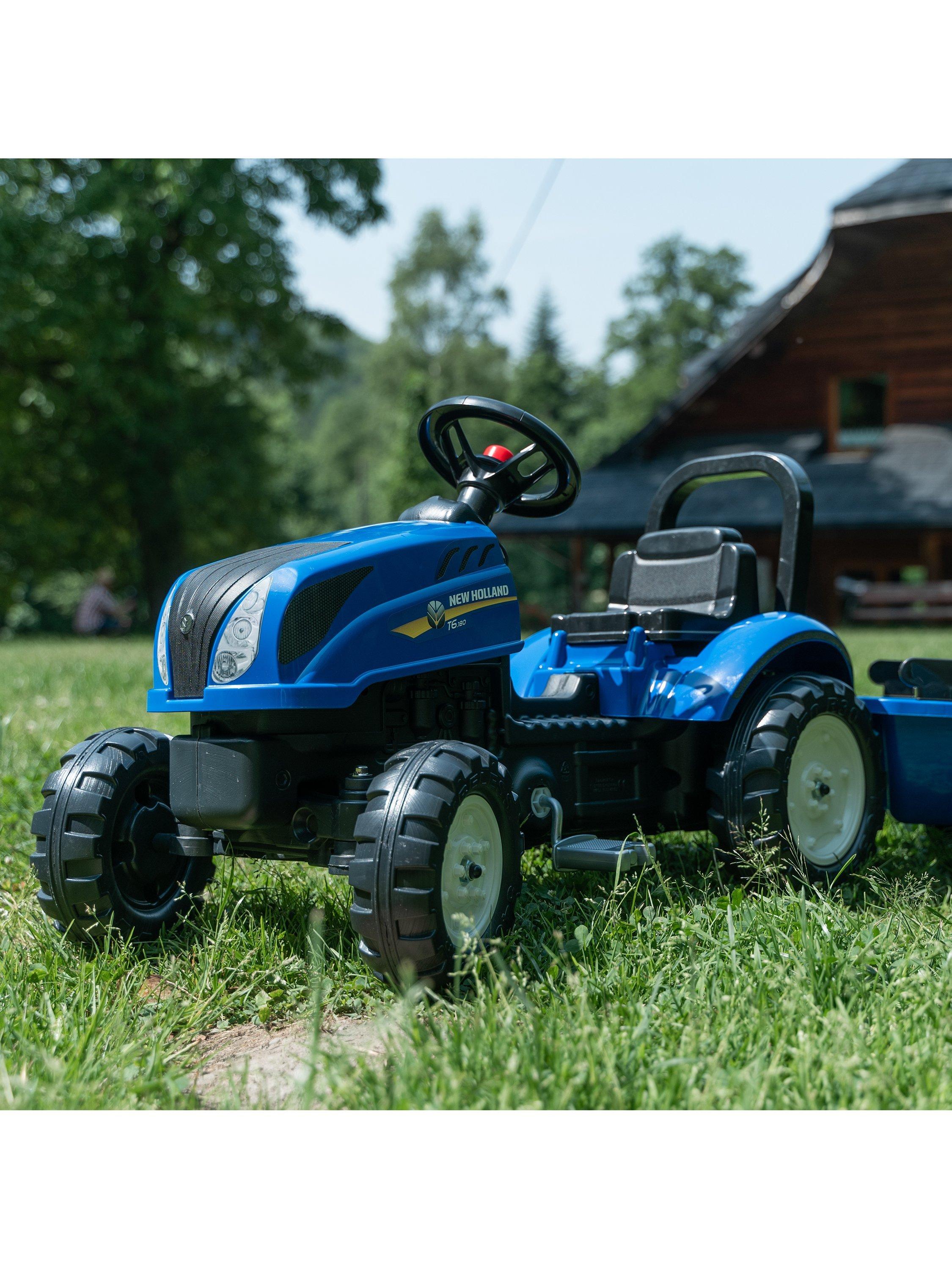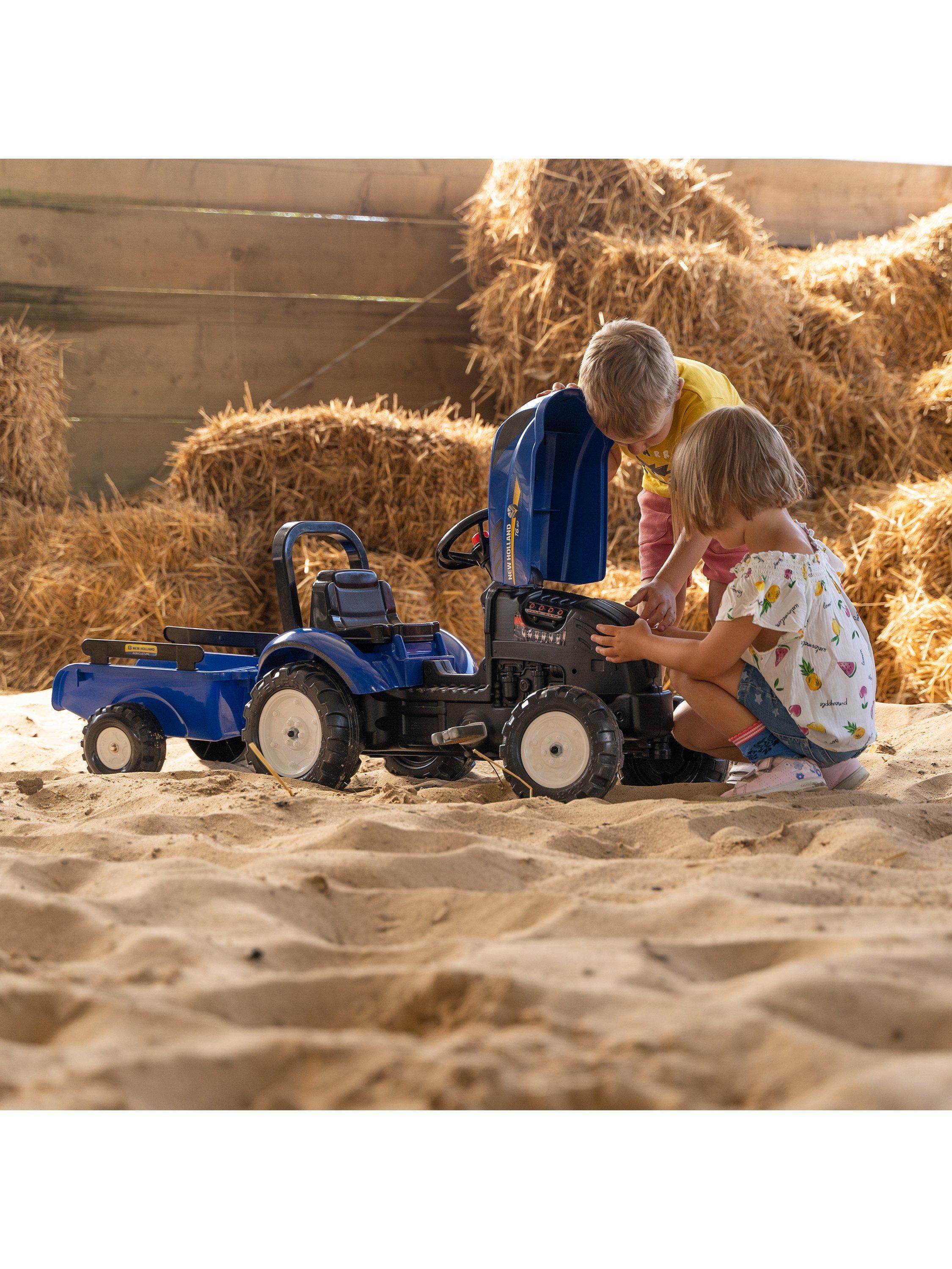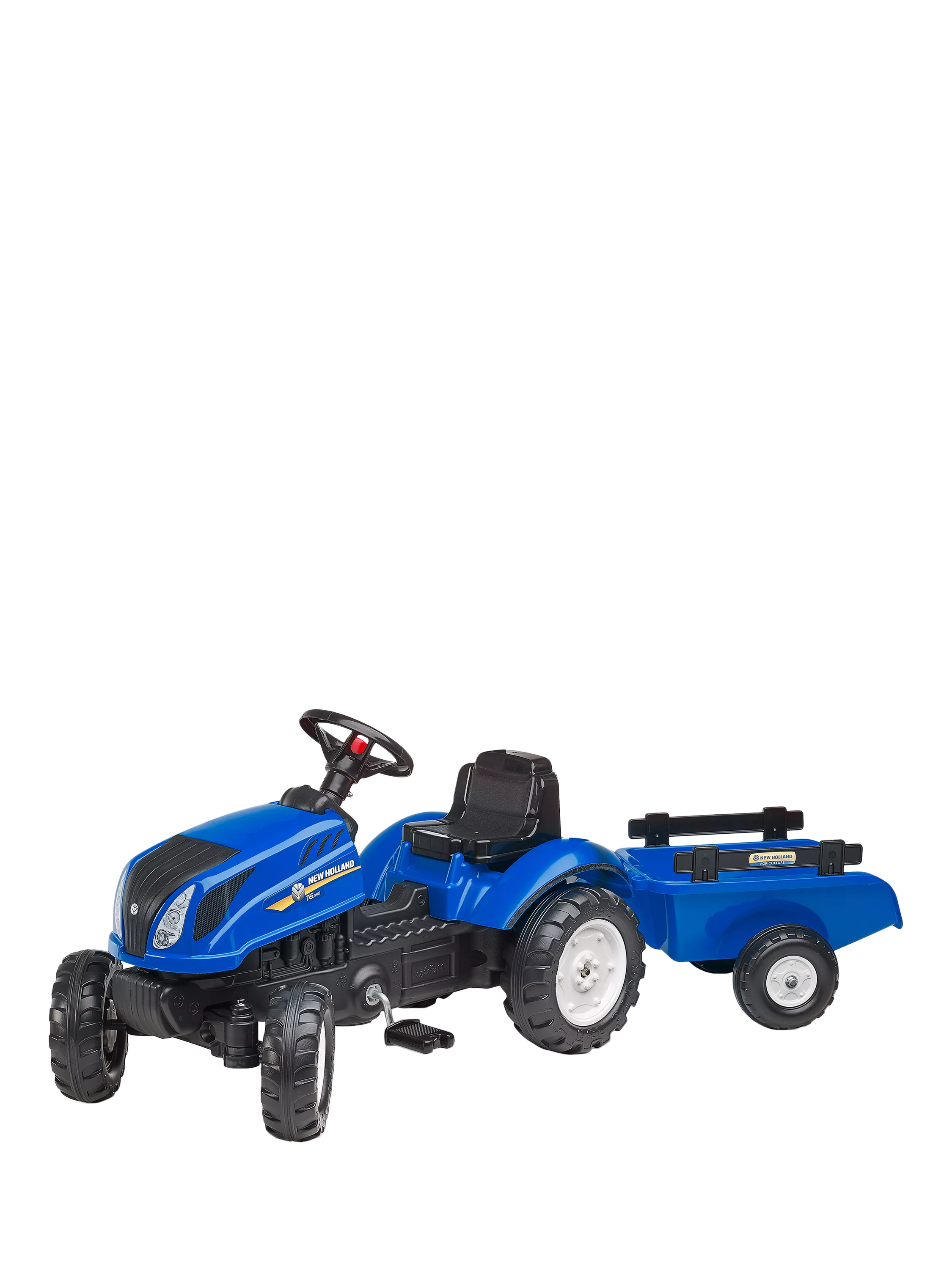 Unleash the Adventure with the New Holland Pedal Tractor and Trailer, an exhilarating ride that brings the thrill of farming to your very own garden! Crafted as a faithful pedal replica of the iconic T6 model, this dynamic duo includes a trailer with side panels, hoop, an opening bonnet and a steering wheel with a horn for an authentic and immersive experience.