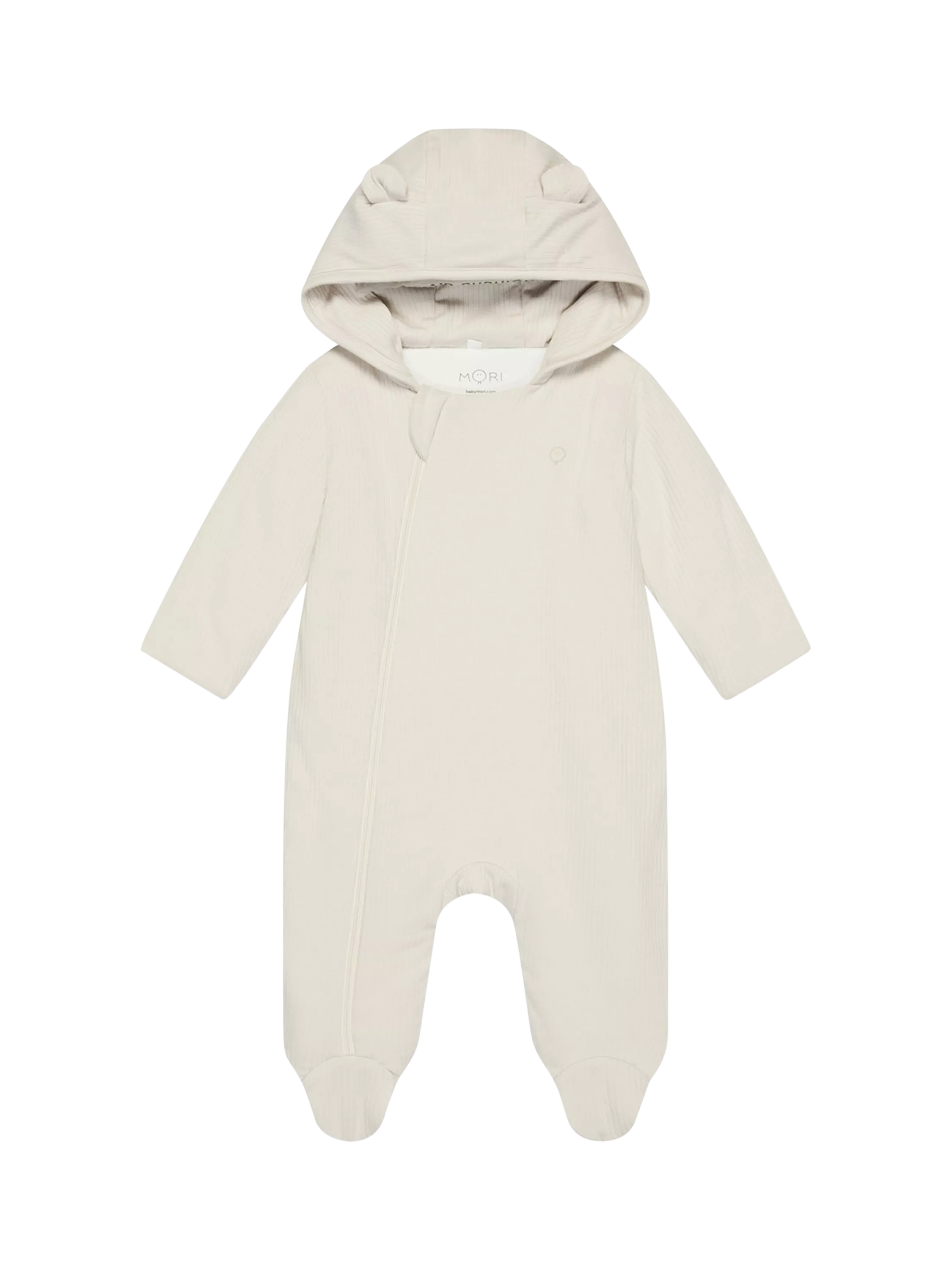 MORIBaby Cotton Blend Ribbed Pramsuit, Ecru