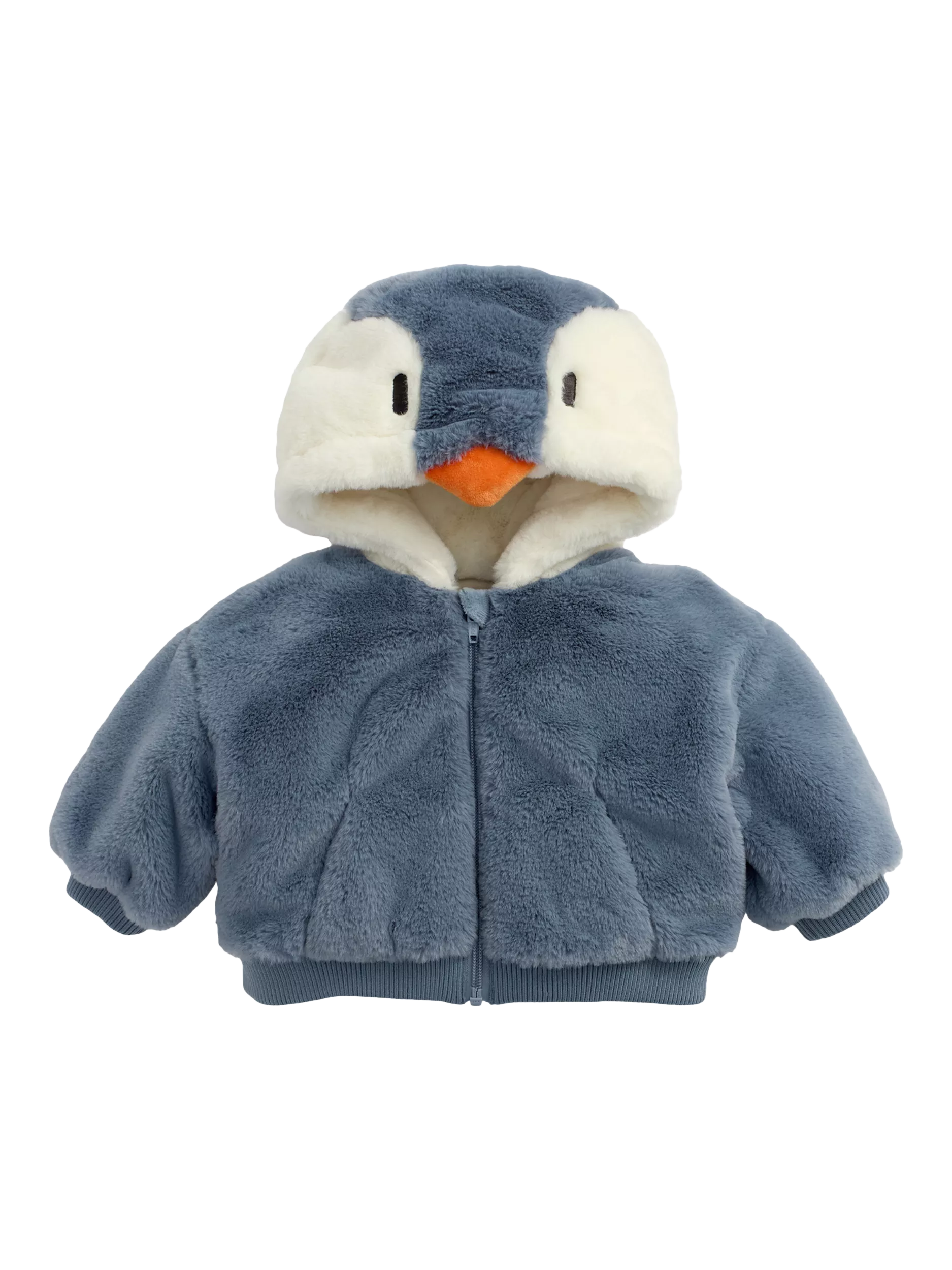 This Penguin Faux Fur Hooded Bomber Jacket is the ultimate winter warmer. It's lined with supersoft fleece and has a quick zip fastening. Novelty penguin face features on the hood make it extra cute.