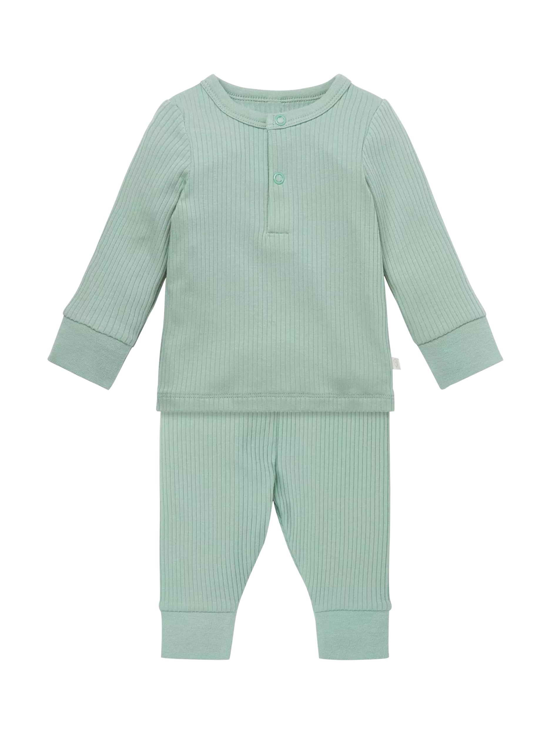 MORIBaby Ribbed Cotton Blend Long Sleeved Pyjamas, Mint