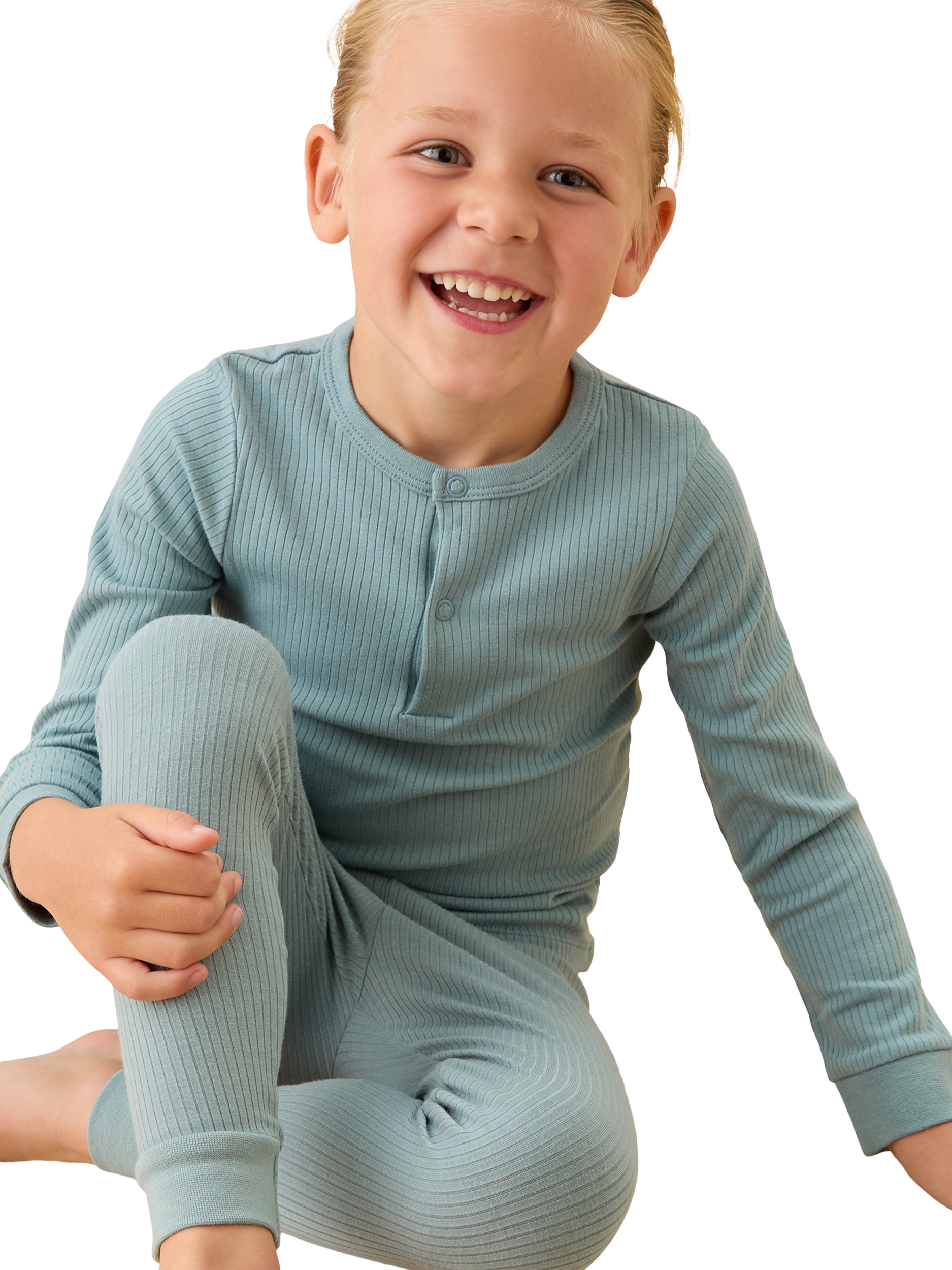 Little ones should be comfortable when they sleep, which is why these ribbed pyjamas come in the softest organic fabrics with a gentle stretch. The top features poppers on the neckline to make getting ready for bed quicker. The bottoms have an elasticated waistband and cuffs for the perfect fit.