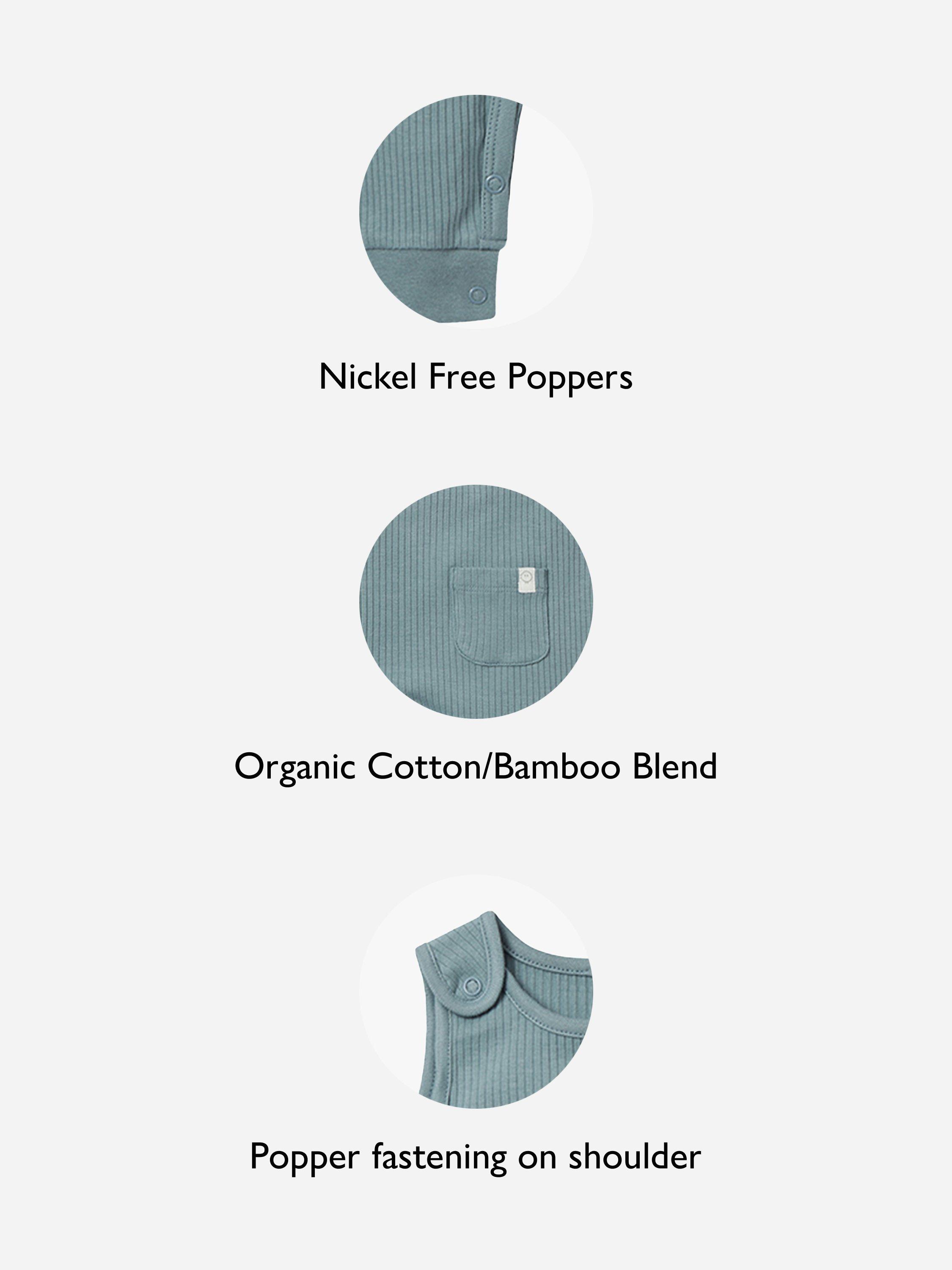 An easy all-in-one outfit, layer this romper over a t-shirt or long-sleeved top depending on the weather. It's made from our stretchy bamboo and organic cotton fabric and has fuss-free poppers on the gusset.