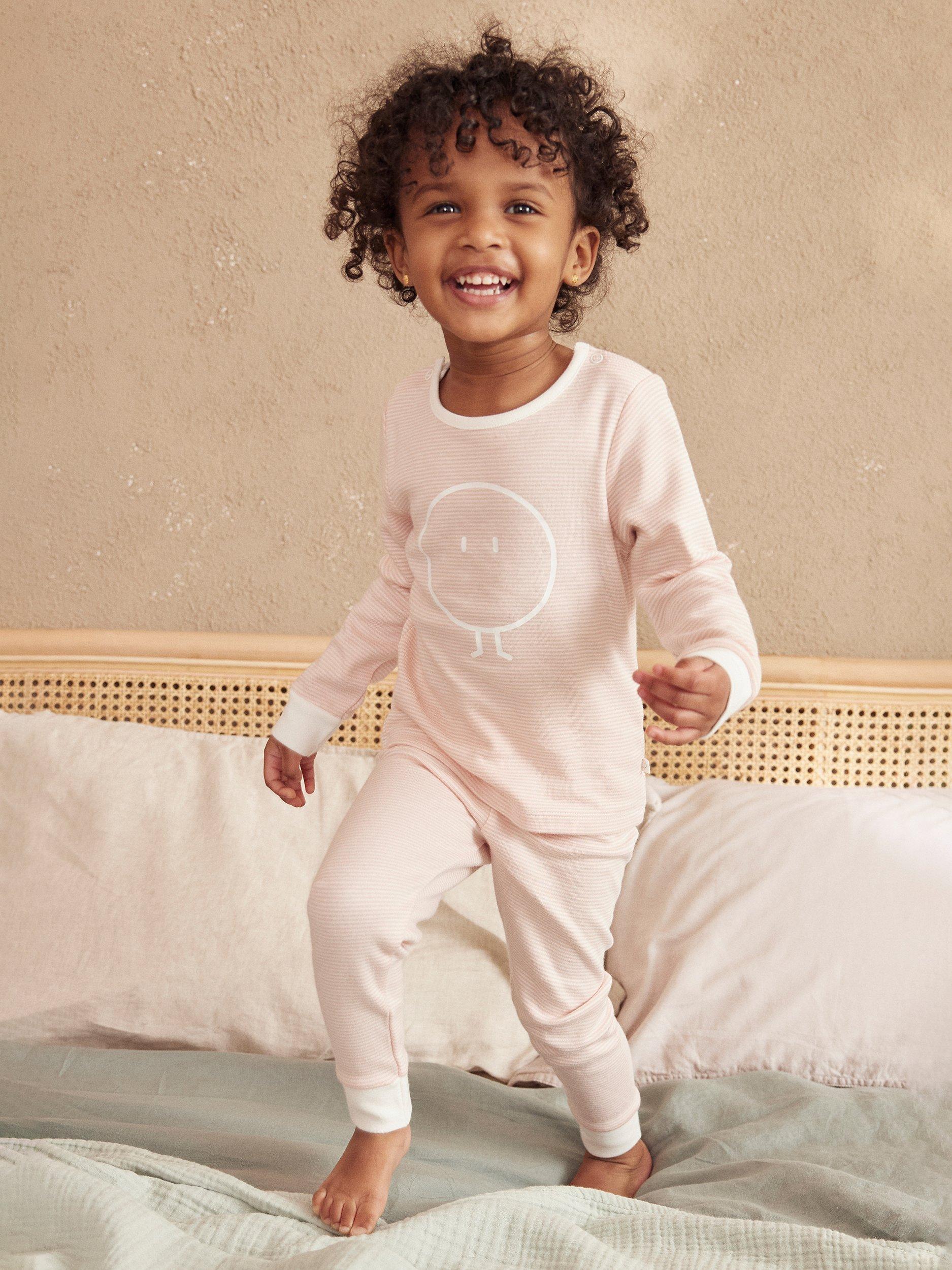 Crafted from soft and breathable fabric, baby will have a comfortable night's sleep in these pajamas whatever the weather. An elasticated waistband on the trousers ensures a great fit and the top includes a double shoulder placket.