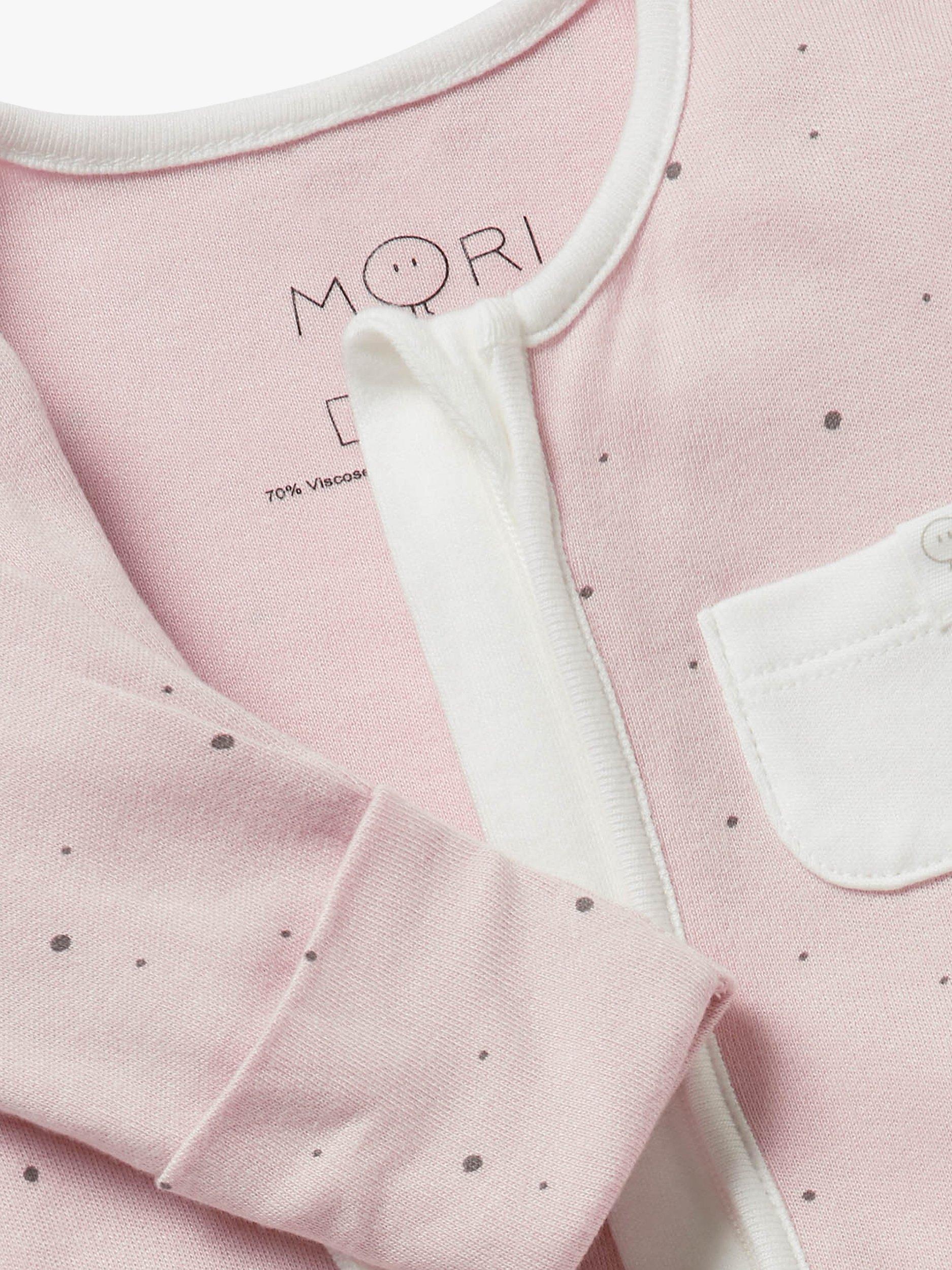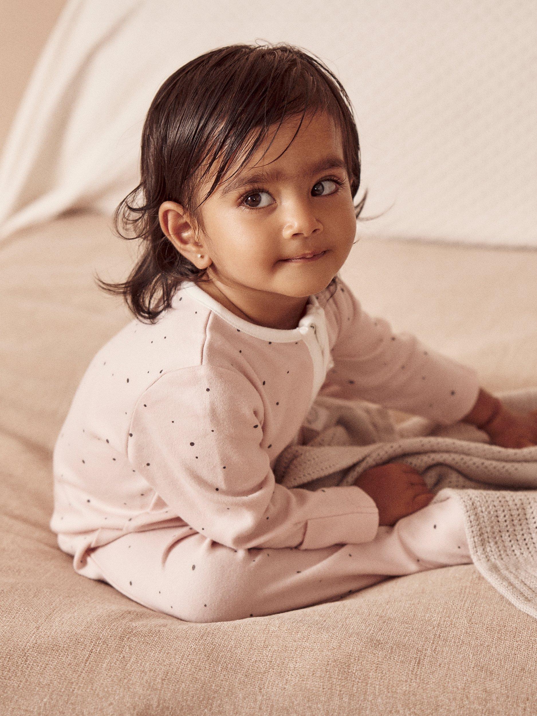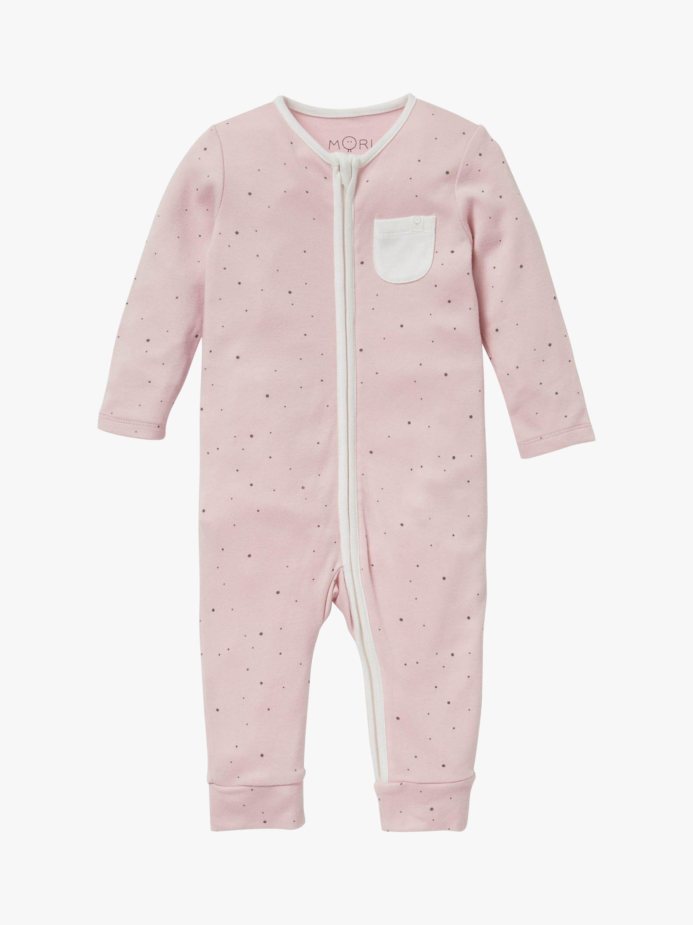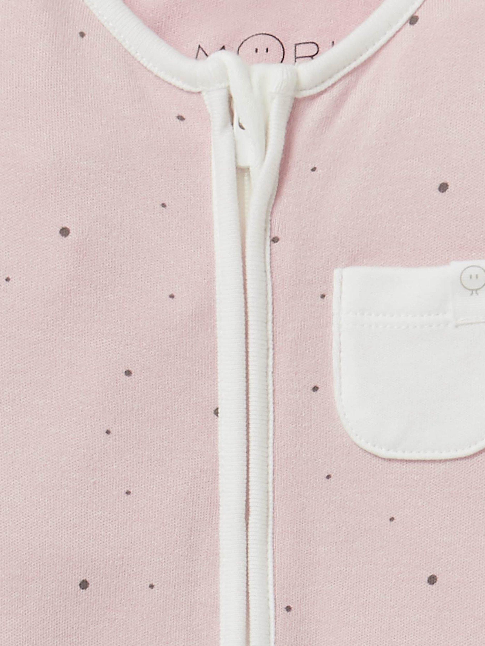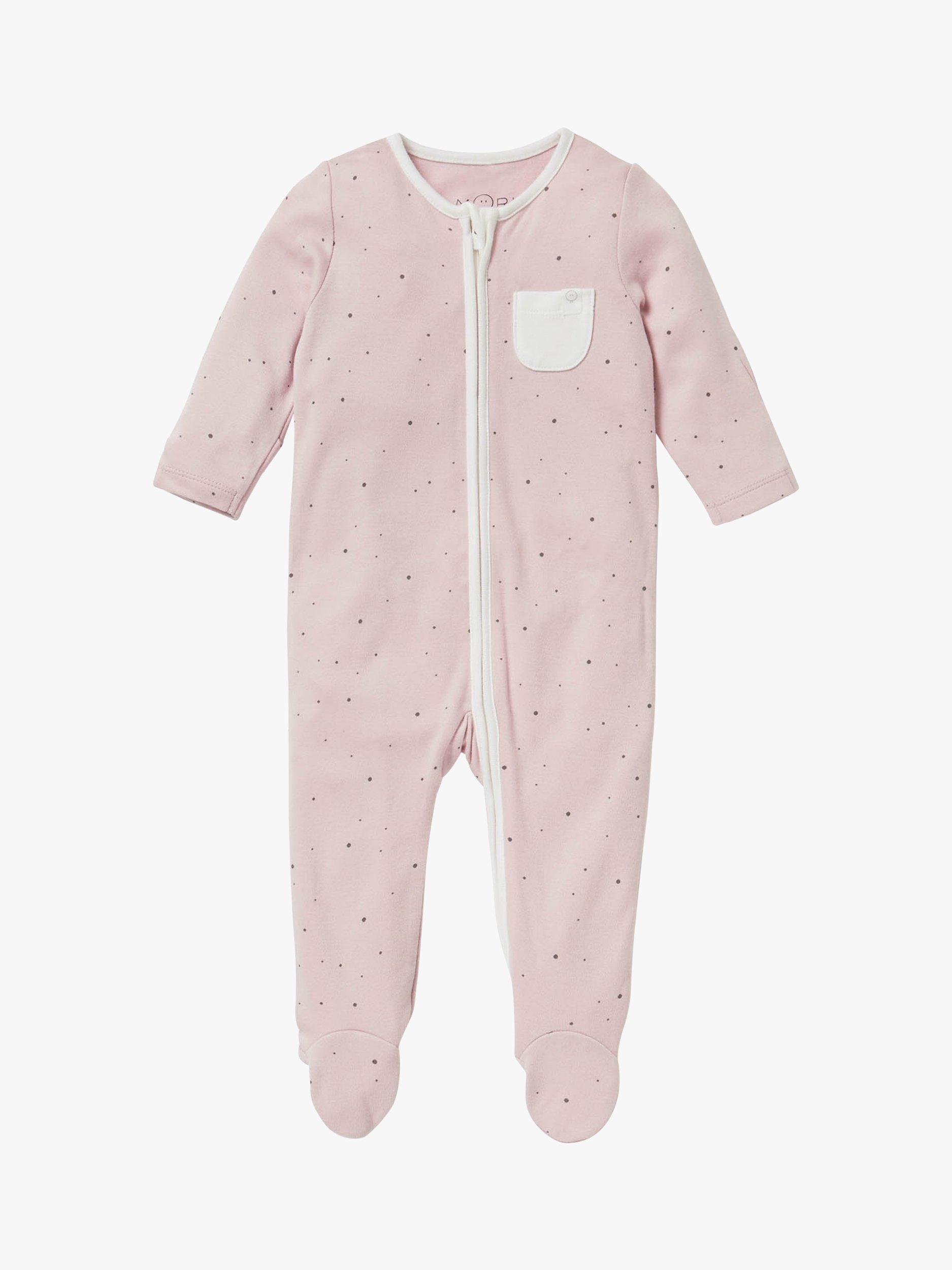 Crafted in a signature fabric that's soft and breathable, this sleepsuit features a two-way zip, with safety tab. For ages up to 9 months, enclosed feet and fold over scratch mitts are included.
