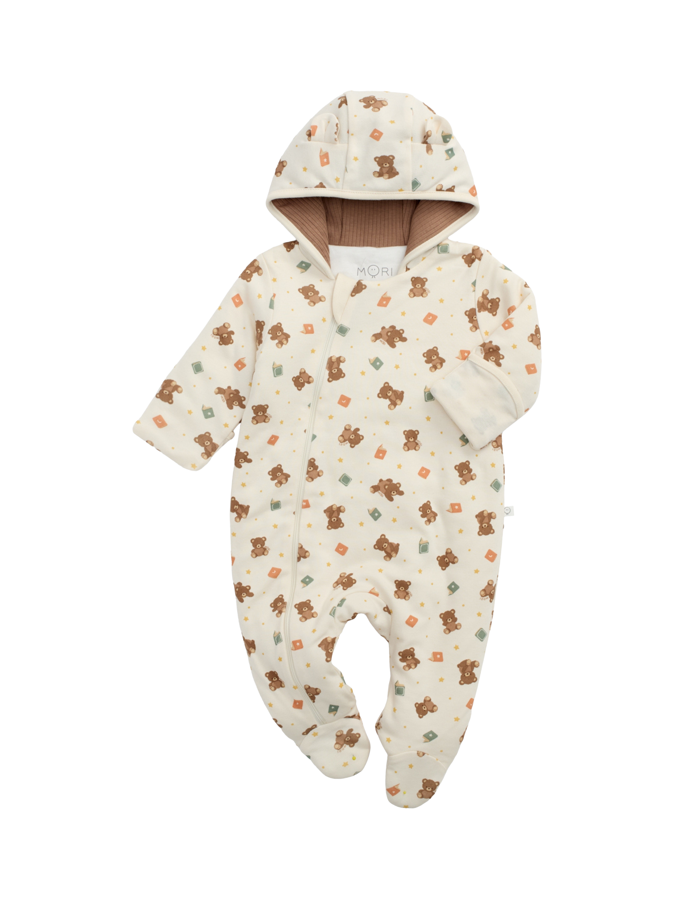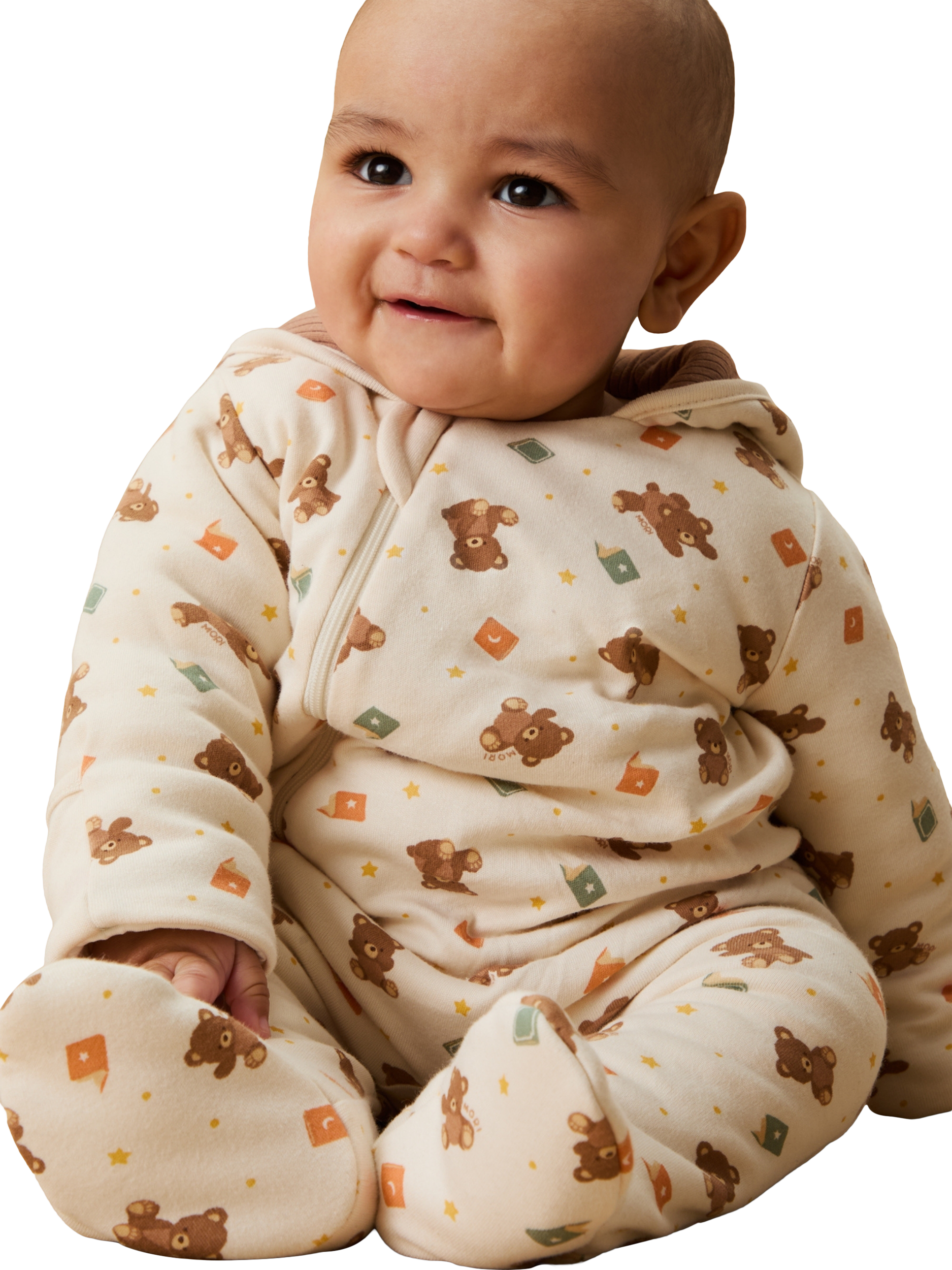 Keep baby toasty from head to tiny toes in this Teddy Bear Pramsuit. With a plush feel, cute print and ears on the hood, it’s the ideal outer layer for colder days.