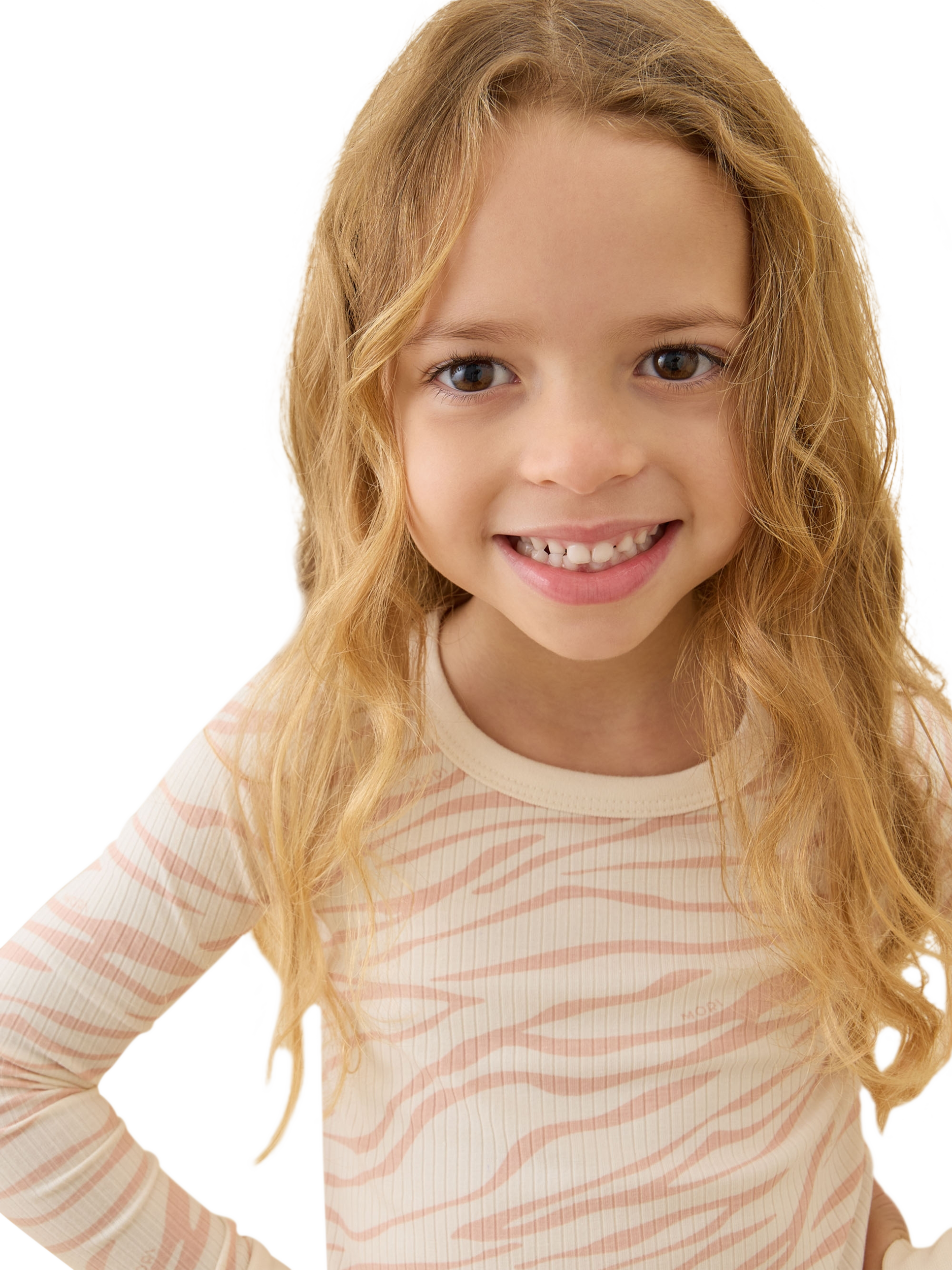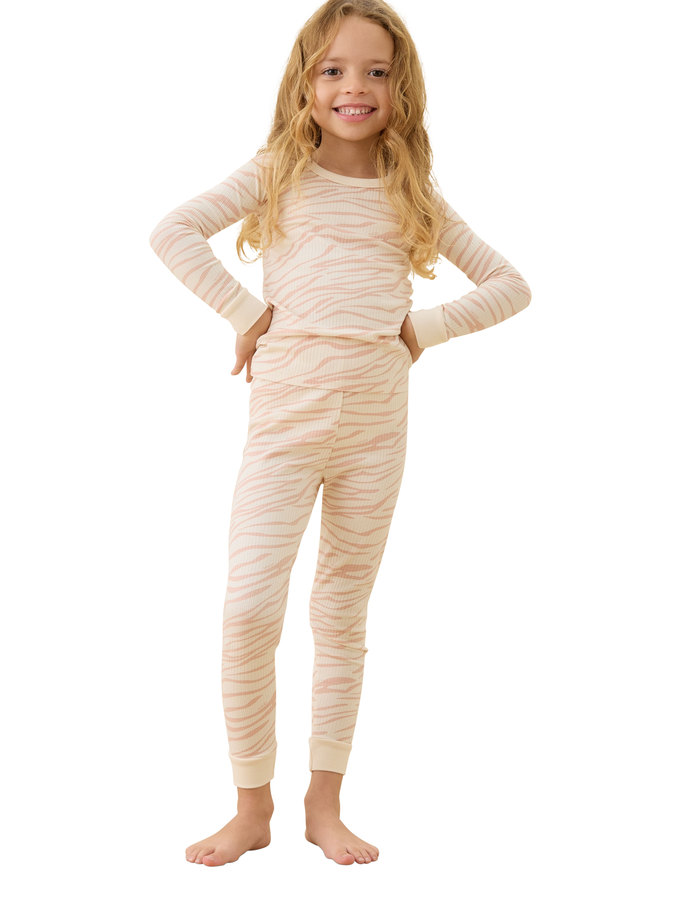 MORIKids' Sands Printed Ribbed Pyjama Set, Zebra Rose