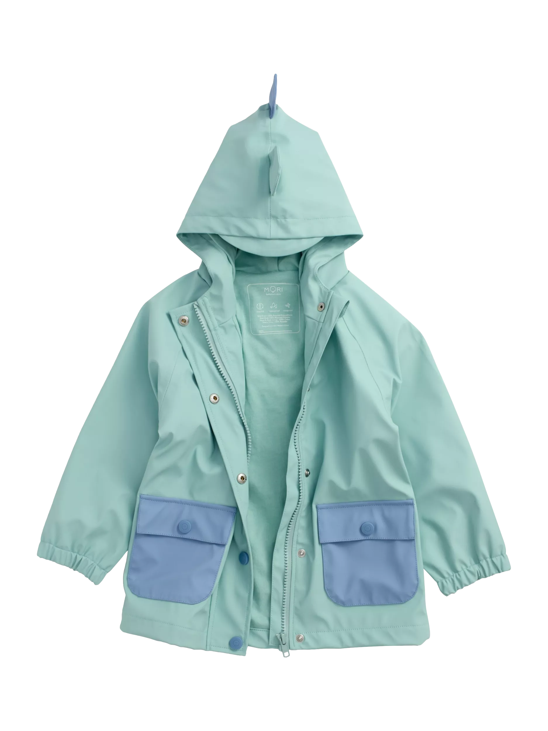 Transform rainy days with the Dino Raincoat. Crafted from waterproof fabric and featuring taped seams, it ensures your little one stays dry while they explore the world, even on the wettest of days. The hood, complete with dino details, adds an extra element of fun to every splashy puddle jump. The lining is made from micro-fleece, keeping them warm as they take on the day.