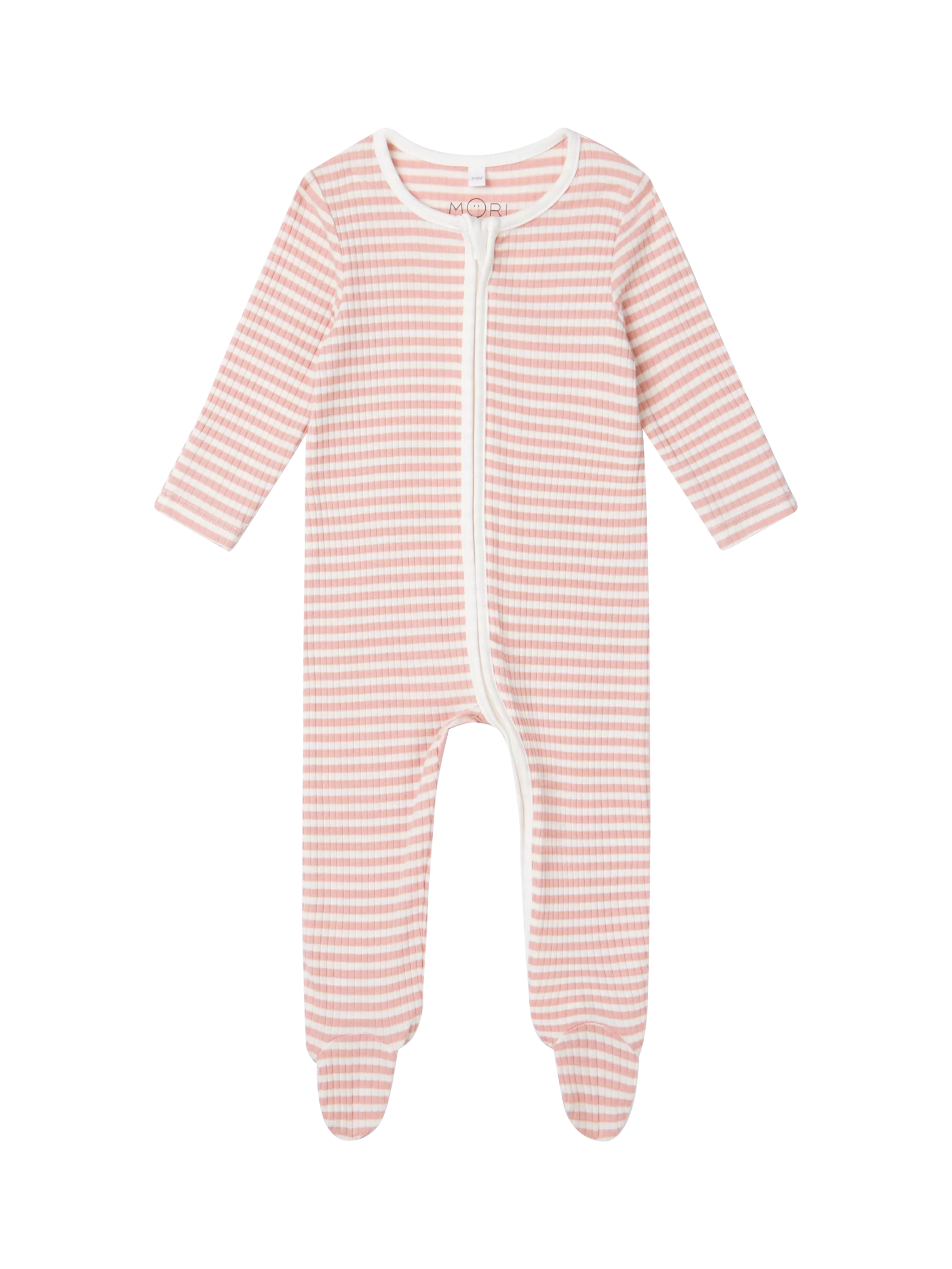 MORIRibbed Two Way Zip-Up Sleepsuit, Pink Stripe