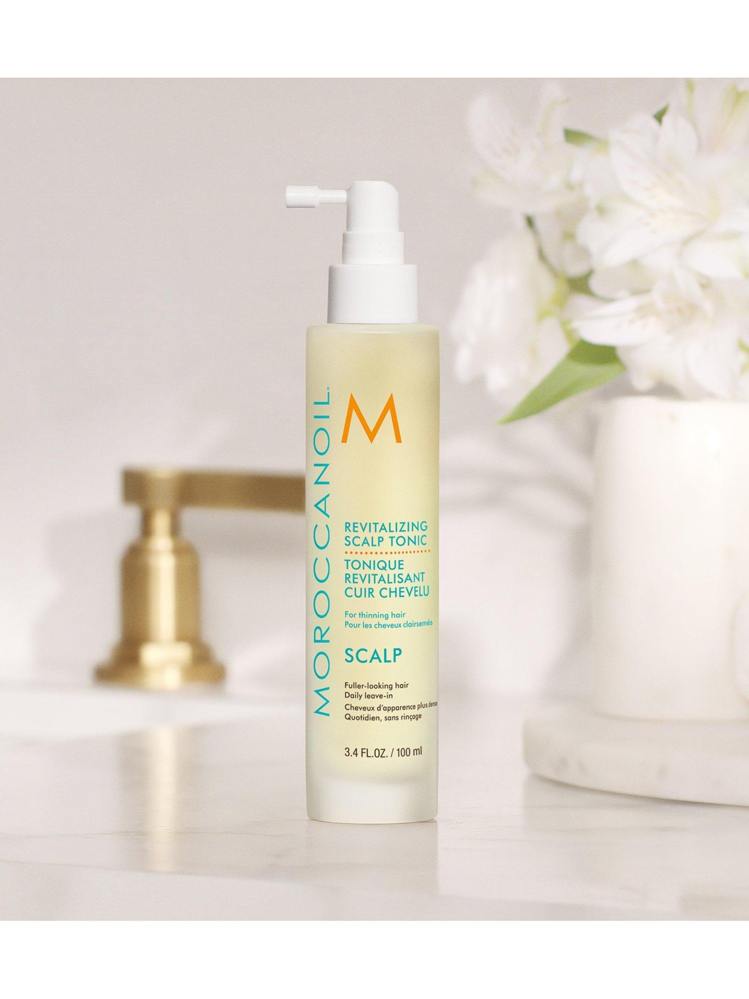 Moroccanoil Revitalizing Scalp Tonic is a fast-absorbing and lightweight daily leave-in treatment that helps to support thicker, fuller, and stronger-looking hair over time.