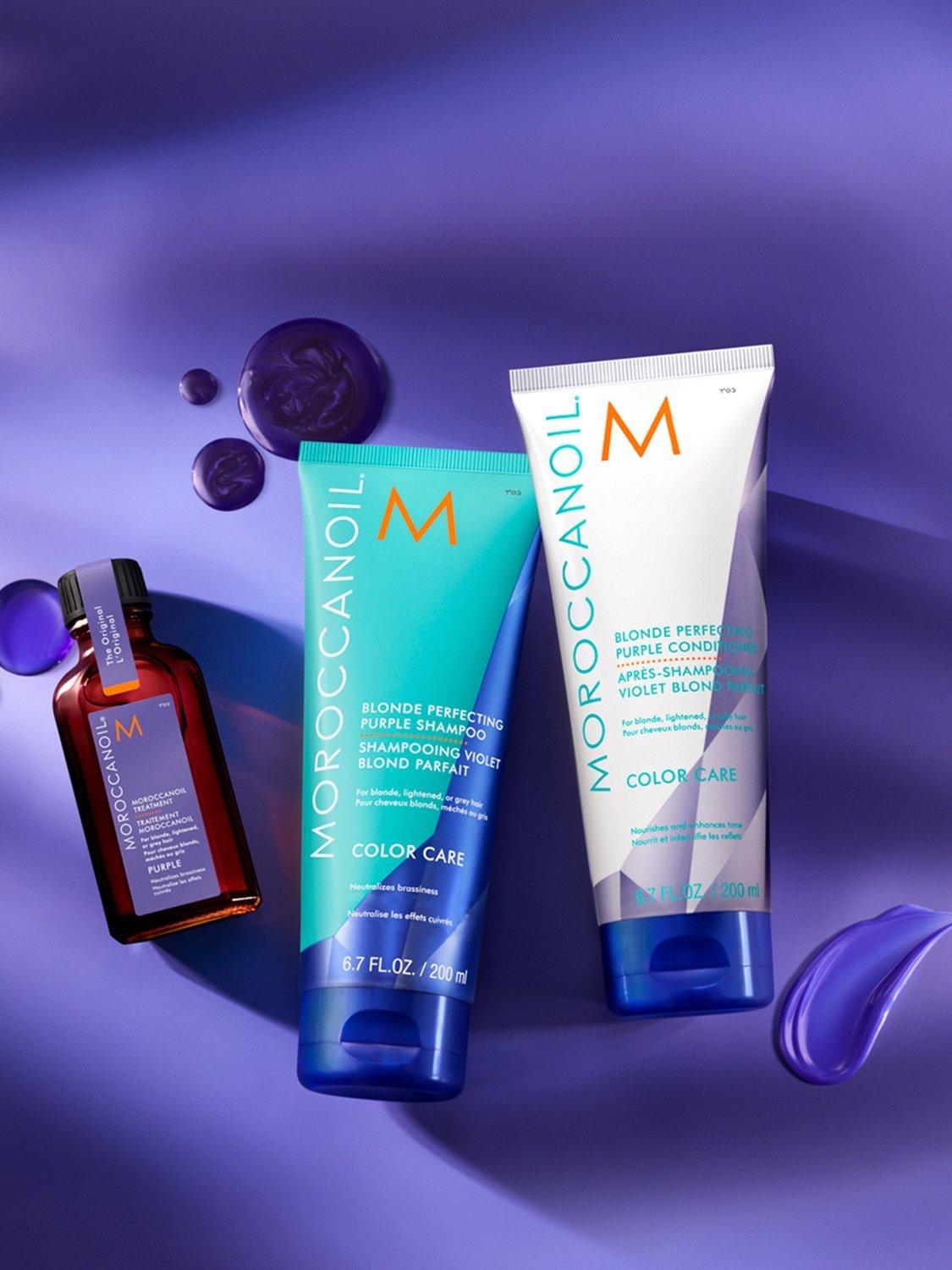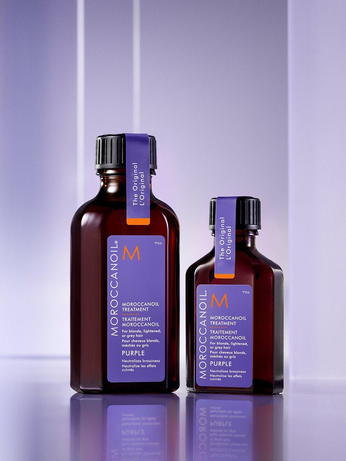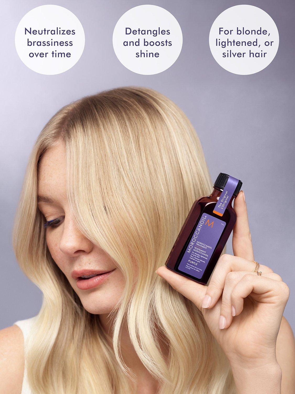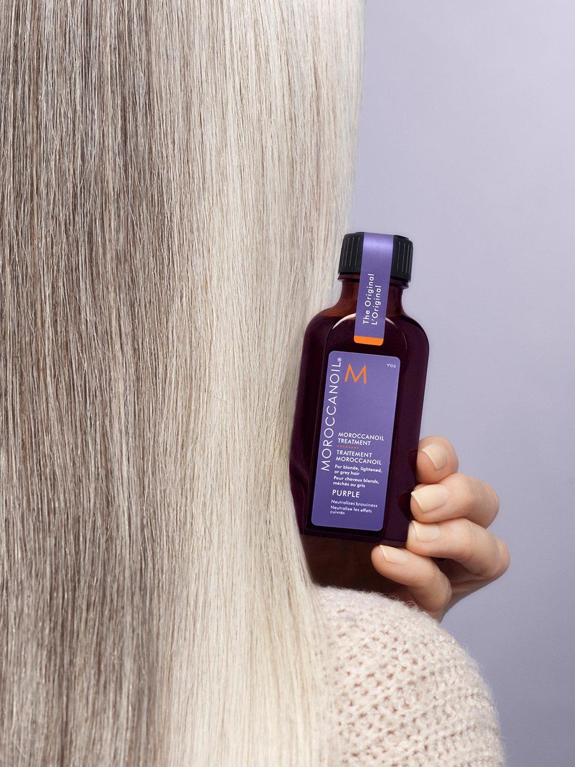The Moroccanoil Treatment that you know, and love is now enhanced with tone-correcting violet pigments. Specially formulated for the needs of blonde, highlighted, and grey hair to neutralise brassiness and counteract unwanted yellow and orange hues.