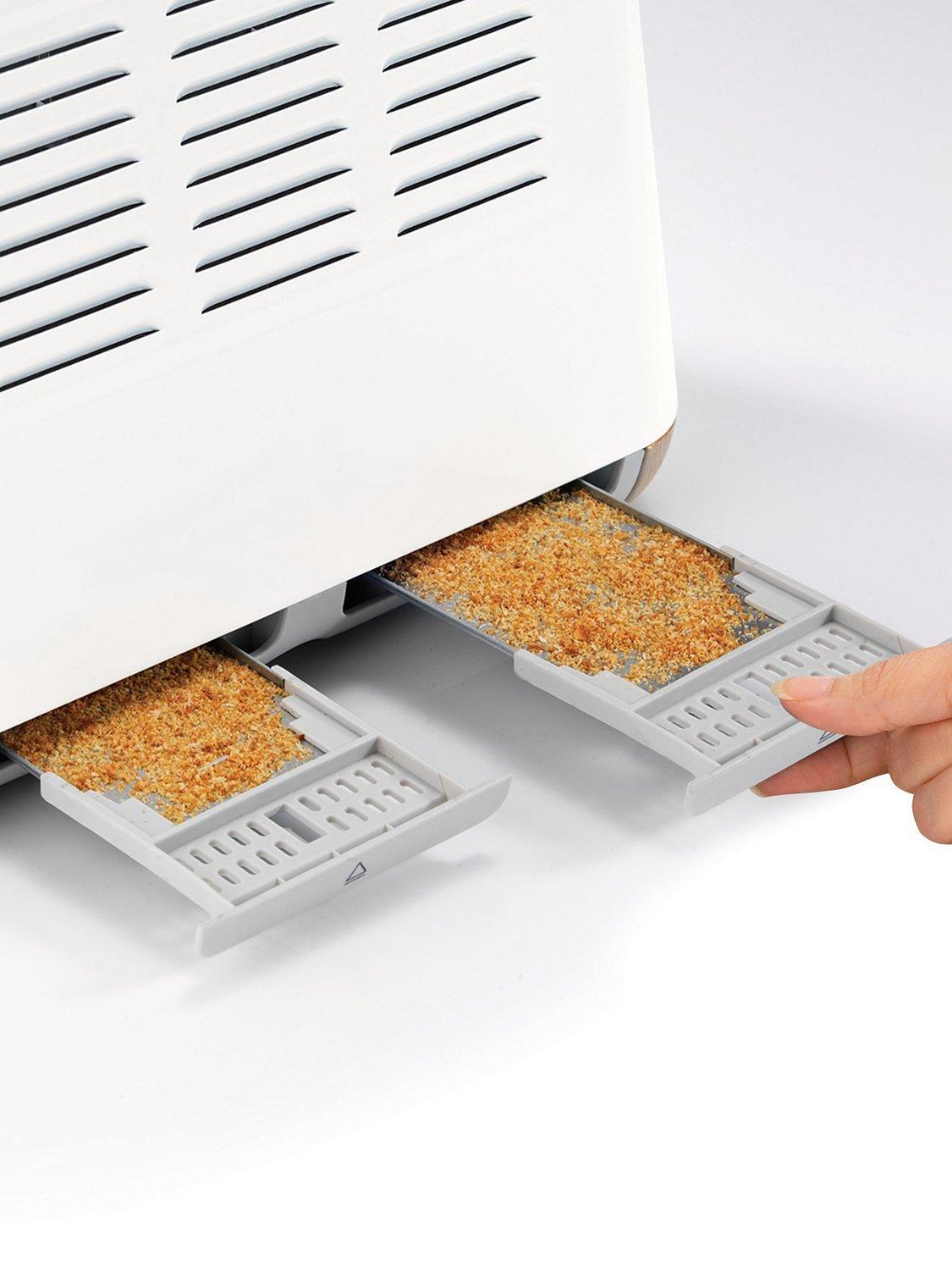 The removable crumb trays allow you to easily clean your toaster, and there is easy cord storage so that your kitchen worktop stays neat and tidy.