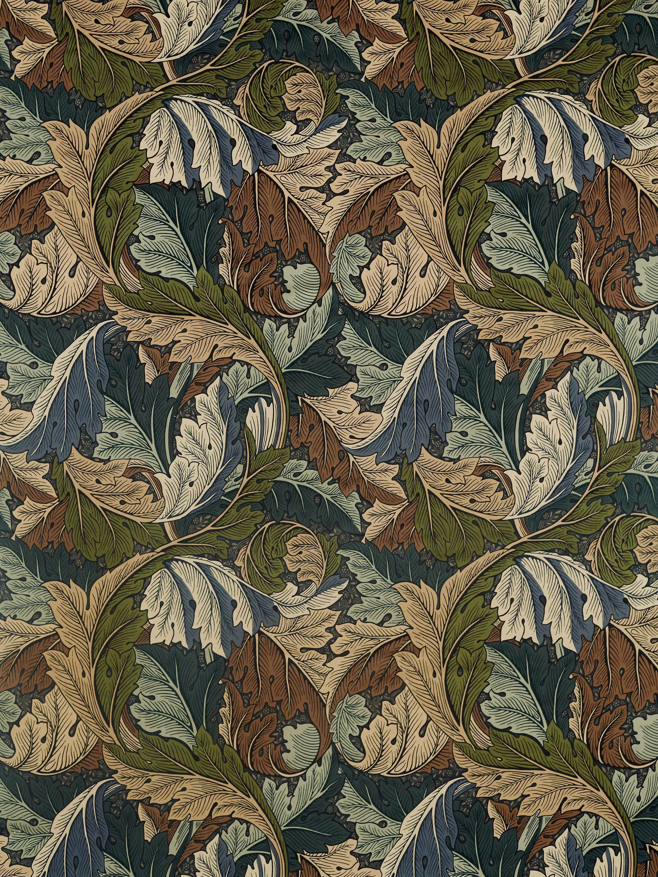 Acanthus was the first wallpaper design released by Morris & Co. It features scrolling, layered acanthus foliage which creates a three-dimensions effect. Here it's recreated as a luxurious velvet fabric.
