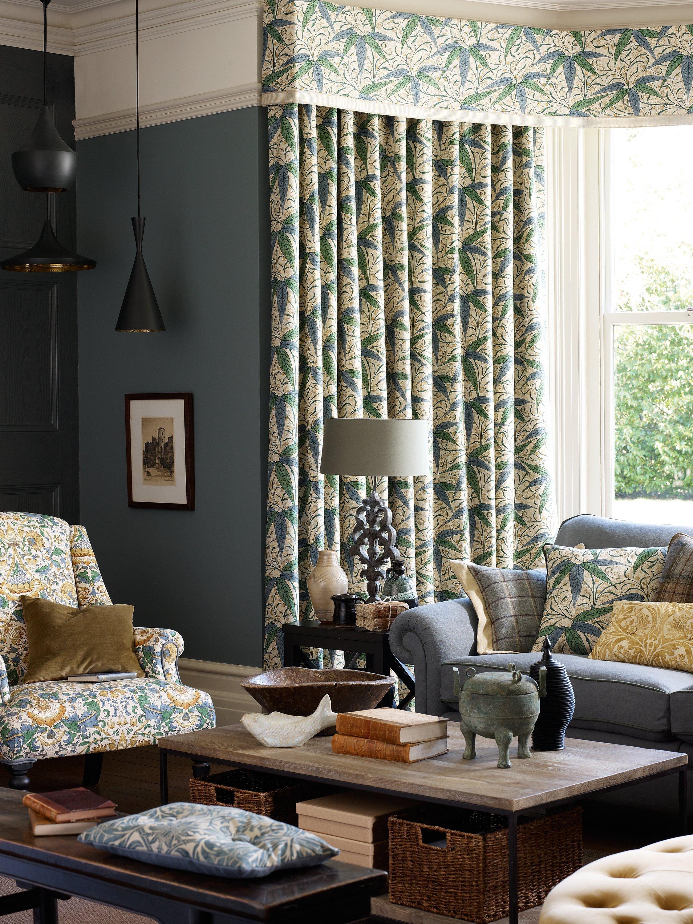 An adaptation of a hand-painted watercolour housed in the Victoria & Albert Museum, Bamboo is a viscose-linen blend fabric from Morris & Co.
